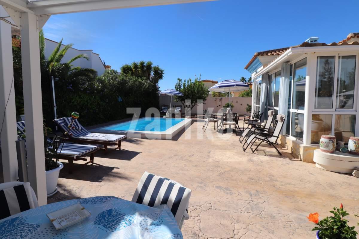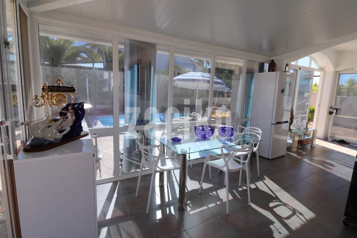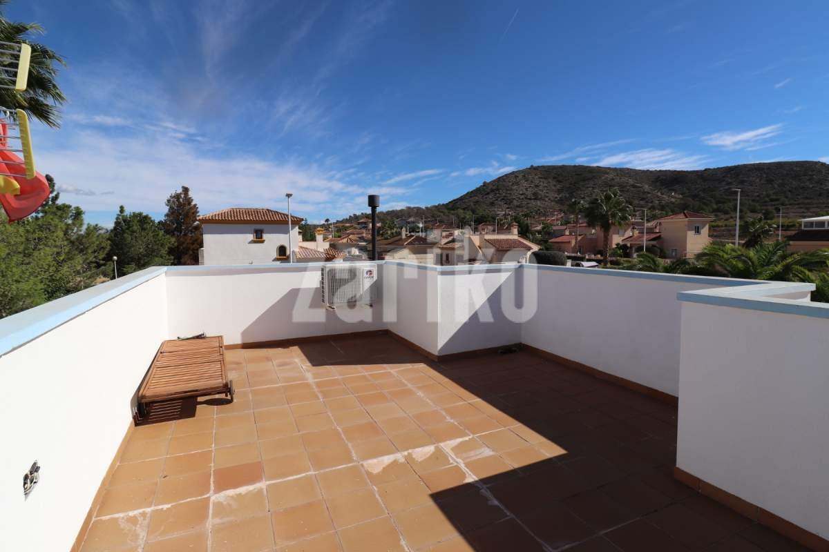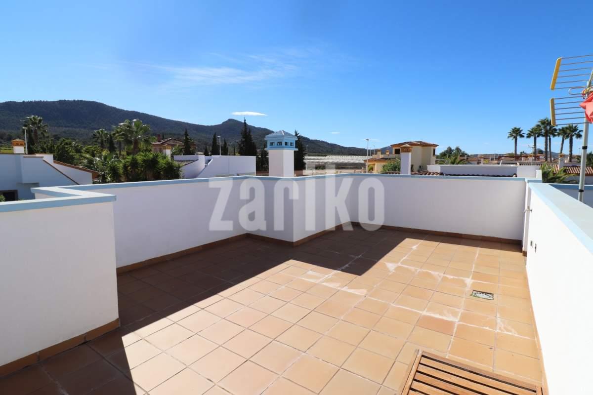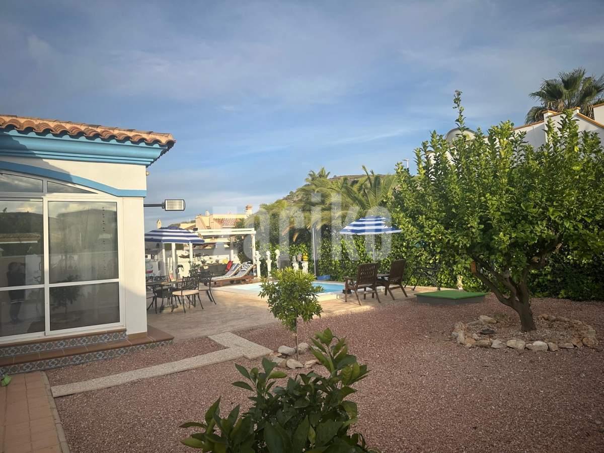 This beautiful villa in perfect condition is located in a very quiet residential area between the two villages of Hondon, with all amenities nearby. It comprises a spacious veranda overlooking the pool and garden, a living room with open-plan kitchen, two bedrooms and two bathrooms. A solarium offers superb views of the surrounding mountains. The garden has been carefully landscaped and features a swimming pool, several shaded terraces, a summer kitchen, parking for 2 cars, a garden shed and numerous flowers and fruit trees. The house will be sold fully furnished except for the television, garden furniture and water dispenser. 35 minutes from Alicante airport and the beaches.