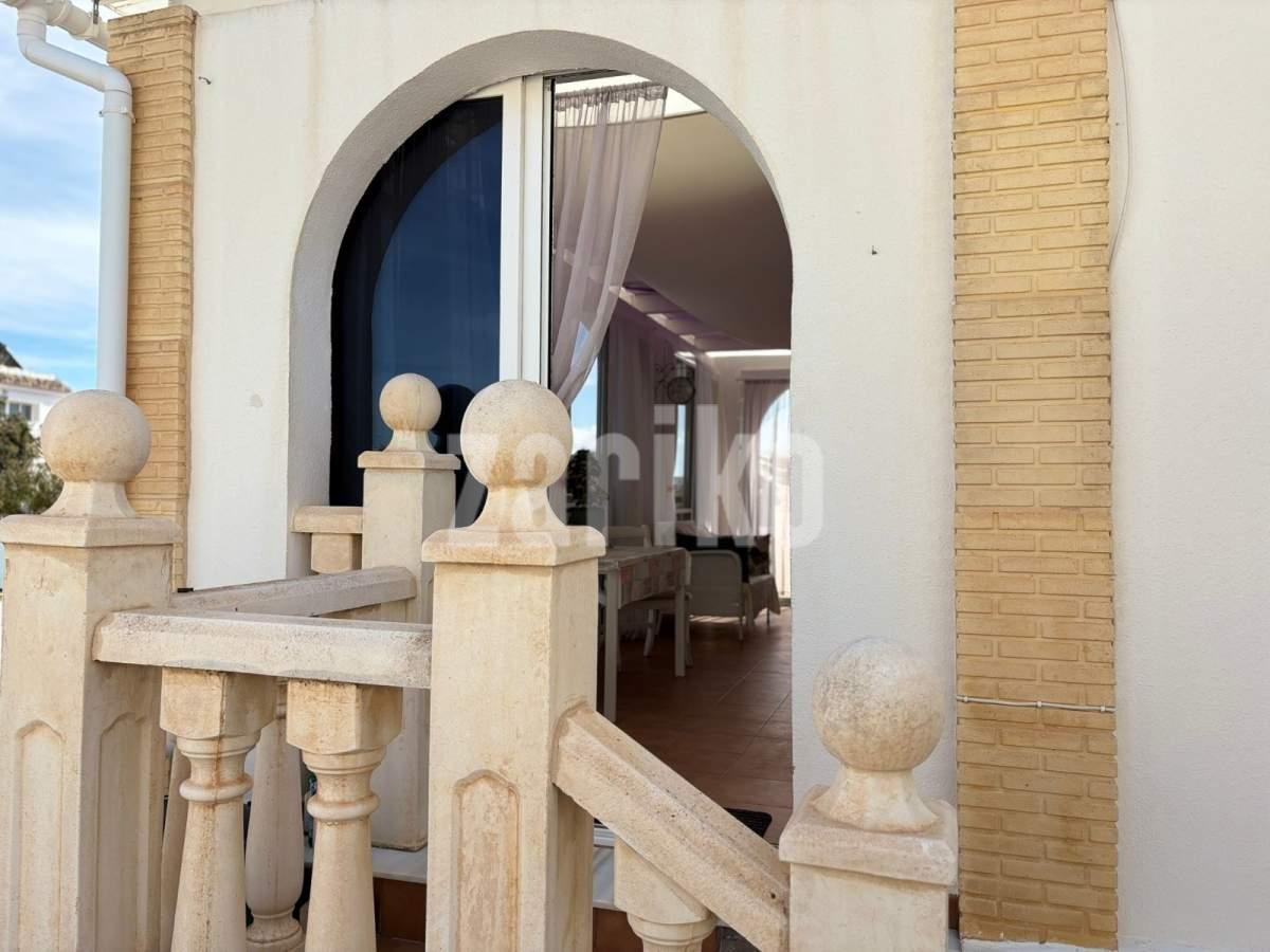 Descubra este impresionante chalet independiente en la tranquila zona residencial de Sierra Golf (Avileses), ideal como primera o segunda residencia. Esta propiedad de 152 m² combina amplitud, abundante luz natural y un diseño funcional. Diseño de interiores y espacios La casa cuenta con tres habitaciones dobles, todas con armarios empotrados, que ofrecen un espacio habitable cómodo y amplio. La habitación principal tiene baño privado y acceso directo a la terraza. Hay 3 baños completamente equipados, elegantemente diseñados y acabados con materiales de la más alta calidad. La vivienda se encuentra en una sola planta e incluye 2 dormitorios, 2 baños, una sala de estar y una cocina independiente. La cocina independiente, totalmente equipada con electrodomésticos modernos, ofrece un espacio de trabajo práctico y acogedor, ideal para quienes disfrutan cocinando. El amplio y luminoso salón-comedor cuenta con una estufa de leña que proporciona calidez y confort en invierno. A continuación, puedes bajar al sótano, que tiene una entrada independiente. Allí encontrarás un amplio trastero y otro apartamento con su propia sala de estar, cocina, dormitorio y baño. Zonas al aire libre y recreación El exterior es una de las características principales de esta casa. Disfrute de un amplio jardín privado con un hermoso diseño paisajístico, exuberantes zonas verdes y rincones ideales para relajarse. El punto central es la piscina privada, perfecta para refrescarse en verano, rodeada de un amplio espacio para tumbonas y un comedor al aire libre. La terraza cubierta es perfecta para comidas familiares o veladas tranquilas, mientras que la terraza de la azotea ofrece vistas impresionantes y total privacidad. Hay aparcamiento disponible en el establecimiento. Características y comodidad La casa está completamente amueblada y equipada con aire acondicionado, ventiladores, estufa de leña, electrodomésticos y todo lo necesario para entrar a vivir de inmediato. Su óptima orientación oeste garantiza luz natural durante todo el día. Ubicación perfecta En un lugar tranquilo pero de fácil acceso: A 25 minutos de las playas del Mar Menor A 25 minutos del aeropuerto A 12 minutos de instalaciones recreativas, restaurantes y tiendas A 8 minutos de famosos campos de golf Una villa encantadora y funcional con un carácter único, que combina el confort moderno con el estilo mediterráneo. Perfecta para quienes buscan un hogar donde disfrutar del sol, la tranquilidad y el estilo de vida del sureste de España.