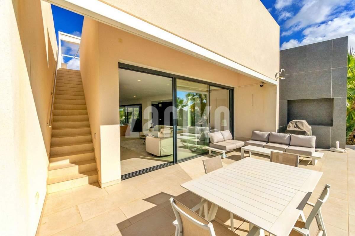 Villa de 3 Dormitorios en Madroño – Las Colinas Golf & Country Club Experimente el lujo, la privacidad y las impresionantes vistas al campo de golf en esta impresionante villa independiente orientada al suroeste, ubicada en una parcela de 951 m² en el prestigioso Las Colinas Golf & Country Club. Diseñada para una vida interior-exterior sin fisuras, esta casa ofrece elegancia moderna y comodidades de primer nivel. Planta Principal: Con una cocina de planta abierta con electrodomésticos de alta gama, amplio espacio de almacenamiento y una espaciosa área de trabajo. El espacio de estar, luminoso y espacioso, se extiende sin esfuerzo hasta el hermoso jardín y la piscina privada climatizada, creando el entorno perfecto para la relajación y el entretenimiento. La villa ofrece tres dormitorios, todos con acceso directo al jardín, incluyendo una suite principal con baño en suite. La calefacción por suelo radiante en los baños garantiza la comodidad durante todo el año. Terraza en la Azotea: Un oasis privado de 60 m² con pérgola, zona de descanso y vistas panorámicas al campo de golf galardonado y al bosque circundante, ideal para las tardes de puesta de sol y las reuniones al aire libre. Planta Inferior: Un sótano/garaje enorme de 96 m², perfecto para estacionamiento seguro, un gimnasio en casa o almacenamiento adicional. Esta villa está equipada con un sistema de domótica, que permite un control sin esfuerzo de la iluminación, la temperatura y la seguridad. Diseñada tanto para el lujo como para la funcionalidad, es el refugio perfecto para aquellos que buscan un estilo de vida sofisticado en una comunidad exclusiva. Las Colinas Golf & Country Club ¡Un Mundo Aparte! Las Colinas Golf & Country Club es uno de los resorts más prestigiosos de la Costa Blanca. Es un exclusivo y singular resort de golf de 330 hectáreas con numerosas instalaciones deportivas, incluyendo golf, pádel, senderismo, fitness, yoga y mucho más. Es un mundo aparte donde podrá disfrutar de un estilo de vida mediterráneo saludable. Con un clima excepcional y servicios de primera clase, el resort ha sido reconocido como "Mejor Resort de Villas de España y Europa" por los World Travel Awards en los últimos años. Enclavado entre las colinas de la Dehesa de Campoamor, en la costa mediterránea al sur de Alicante, Las Colinas Golf & Country Club es un espacio natural único que se ha conservado cuidadosamente y donde se han integrado casas exclusivas en el entorno, donde podrá relajarse y disfrutar del paisaje. Este resort, con excelentes restaurantes y la playa Wow by Las Colinas, tiene una reputación internacional y es conocido y buscado por celebridades. ¡Encuentre la casa de sus sueños hoy mismo echando un vistazo a las casas más bellas y exclusivas que tenemos para ofrecer!