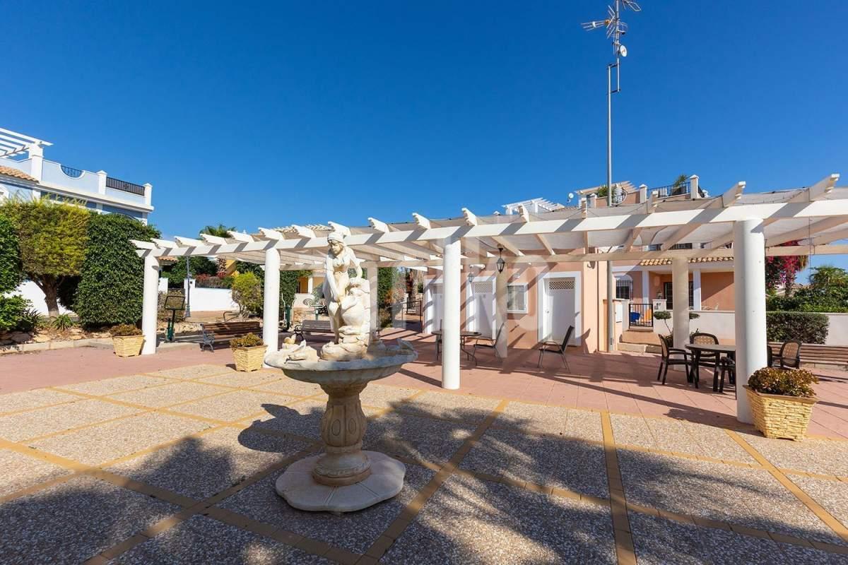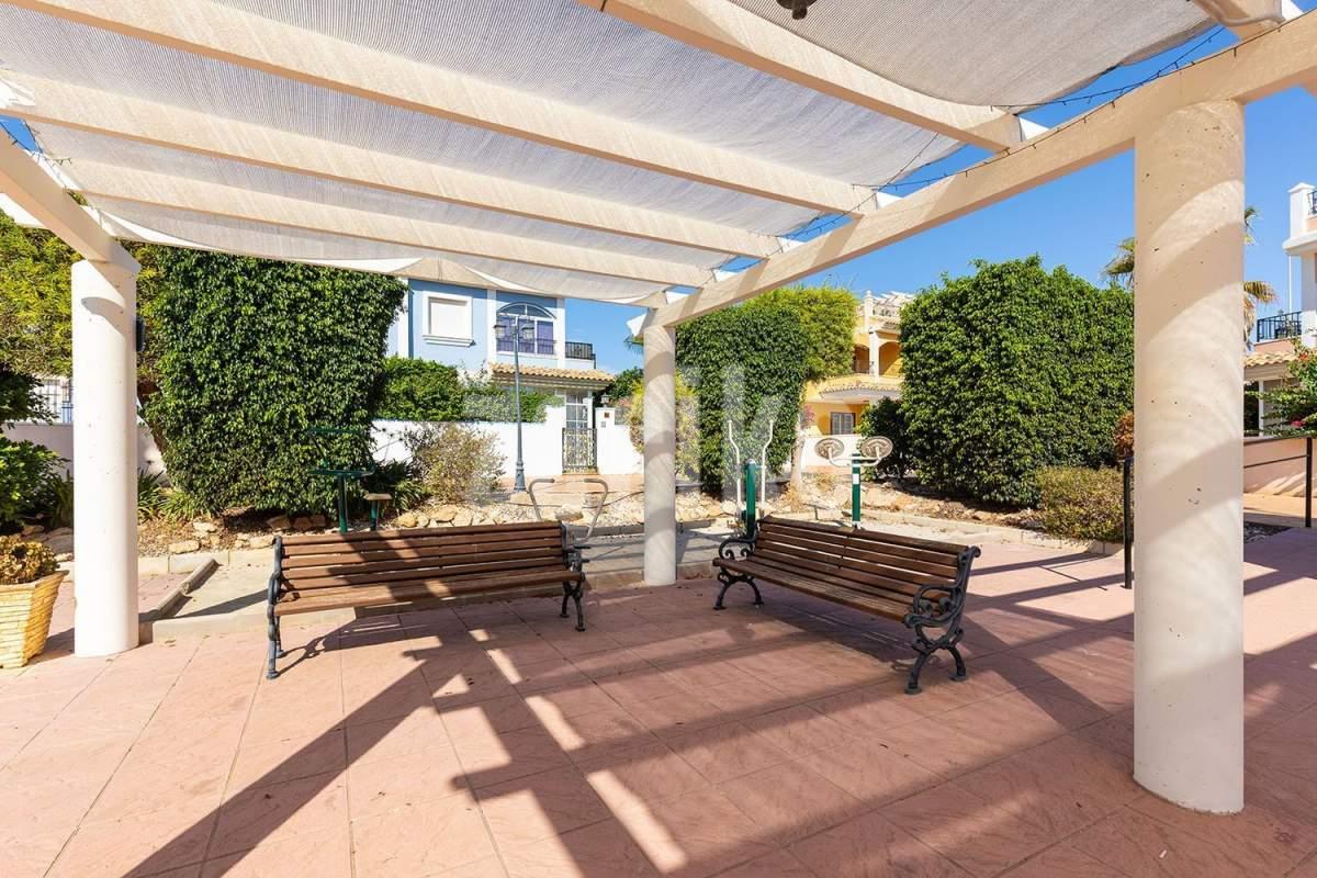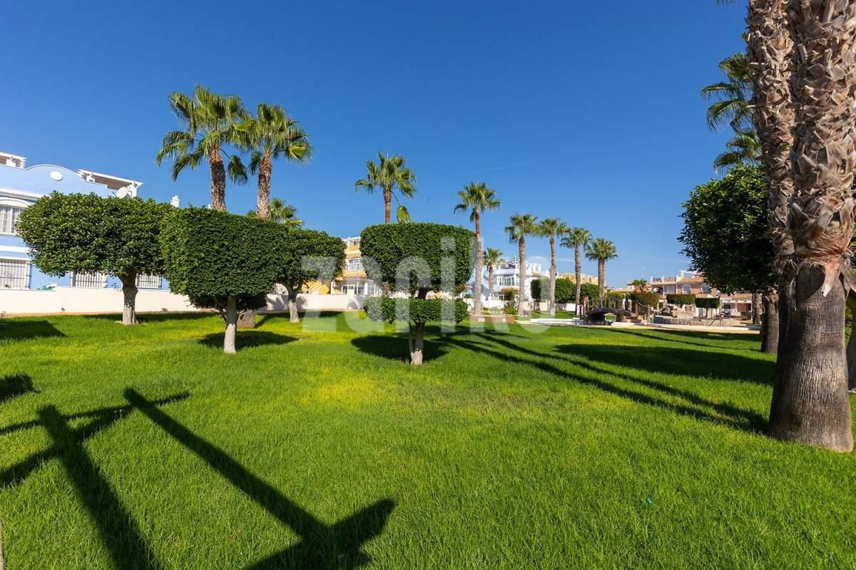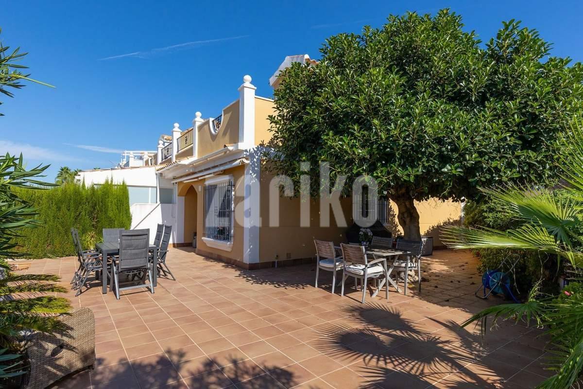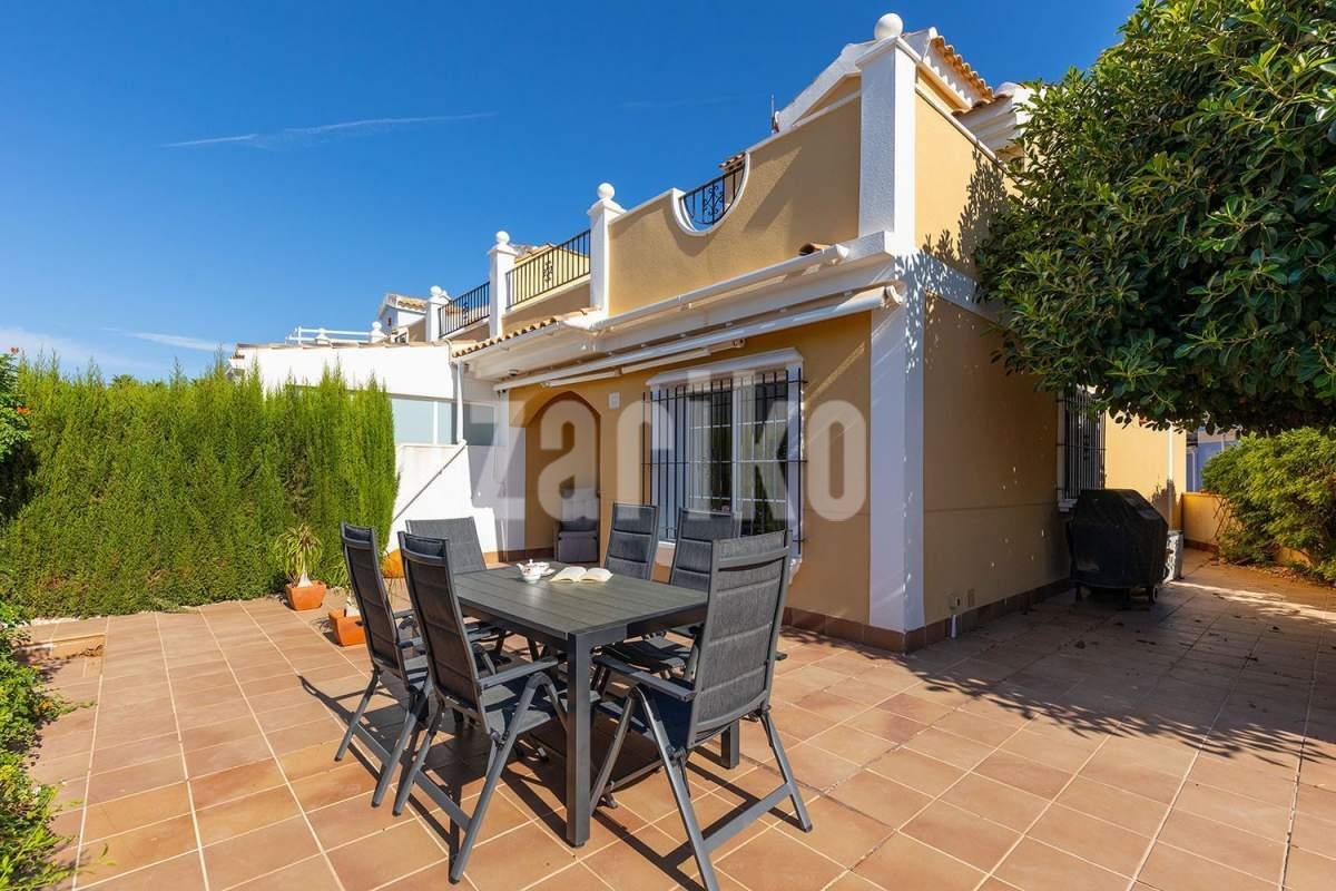 Una preciosa casa adosada en esquina situada en la popular zona de Lomas de Cabo Roig en la Costa Blanca Sur. Esta propiedad tiene una de las mejores parcelas de toda la urbanización, completamente orientada al sur, con espacio para construir una piscina privada si lo desea, y con numerosos árboles y plantas que la convierten en un verdadero oasis de tranquilidad e intimidad. La casa en sí cuenta con un amplio salón con chimenea y aire acondicionado, preparado tanto para el calor como para el frío. Hay una cocina independiente adyacente, así como un dormitorio y un baño con ducha en la planta baja. Desde la cocina se accede a un cuarto de lavandería y a través de éste a una terraza trasera, ideal para sentarse a la sombra durante los calurosos meses de verano. En la planta superior hay otros dos dormitorios y un baño. Ambos dormitorios tienen acceso al balcón con vistas a los alrededores e incluso un pequeño vistazo al mar Mediterráneo. Por la parte trasera de la propiedad se accede a las zonas comunitarias con preciosos jardines de césped natural que rodean una gran piscina con áreas para niños y adultos. También hay zonas de descanso sombreadas, un parque infantil y una sala social con tenis de mesa, lo que convierte a esta comunidad en una de las mejores equipadas de la zona. Lomas de Cabo Roig se beneficia del encantador nuevo centro comercial construido hace unos años, donde encontrará una variedad de restaurantes y tiendas de alta calidad. También hay un supermercado internacional en la zona, así como numerosos bares y otros servicios. A pocos minutos en coche se encuentran la playa, los campos de golf y el centro comercial La Zenia Boulevard. Para más información sobre la propiedad o para reservar una visita privada, póngase en contacto con nosotros en Mediter.