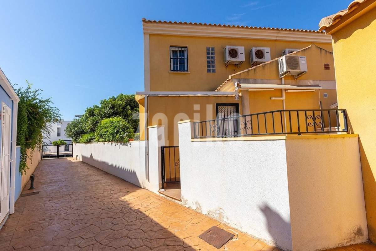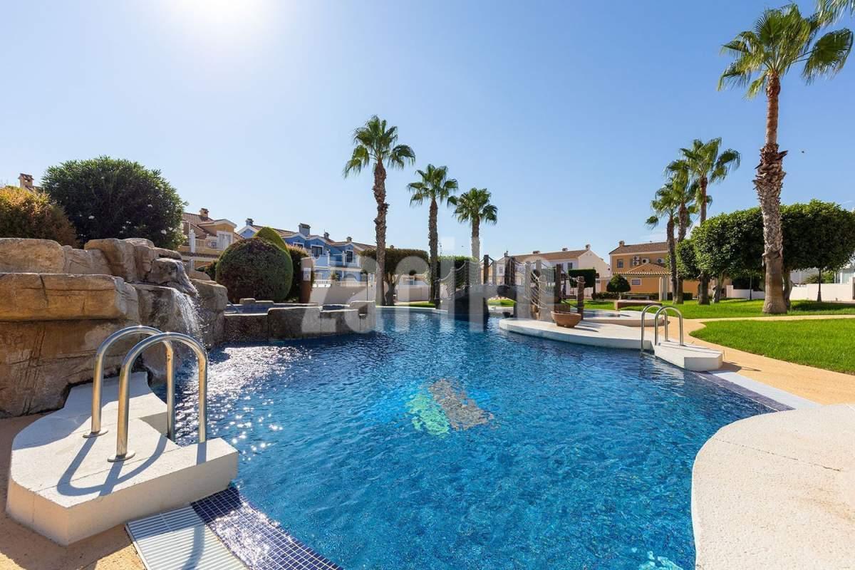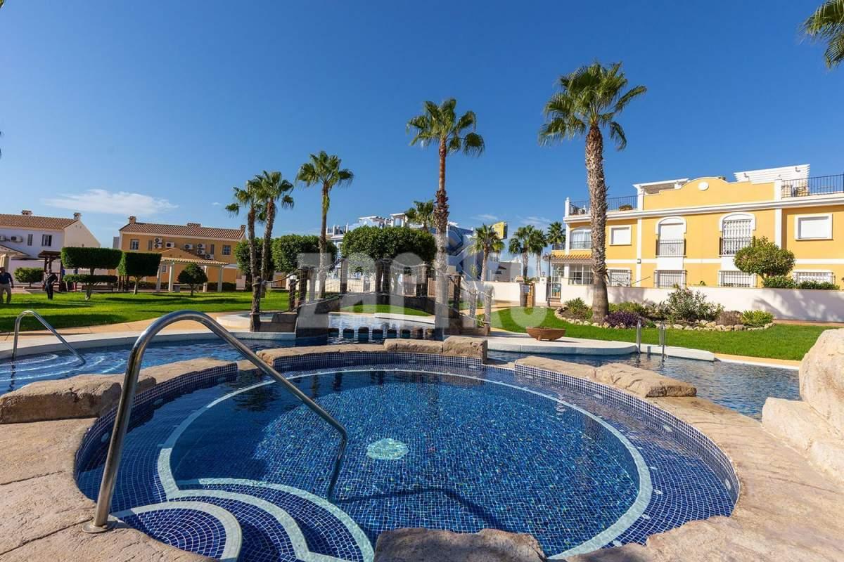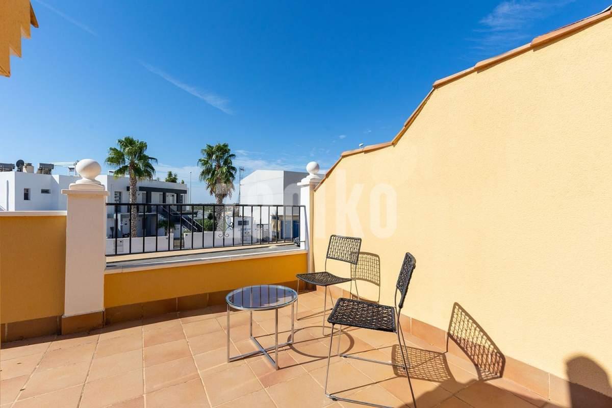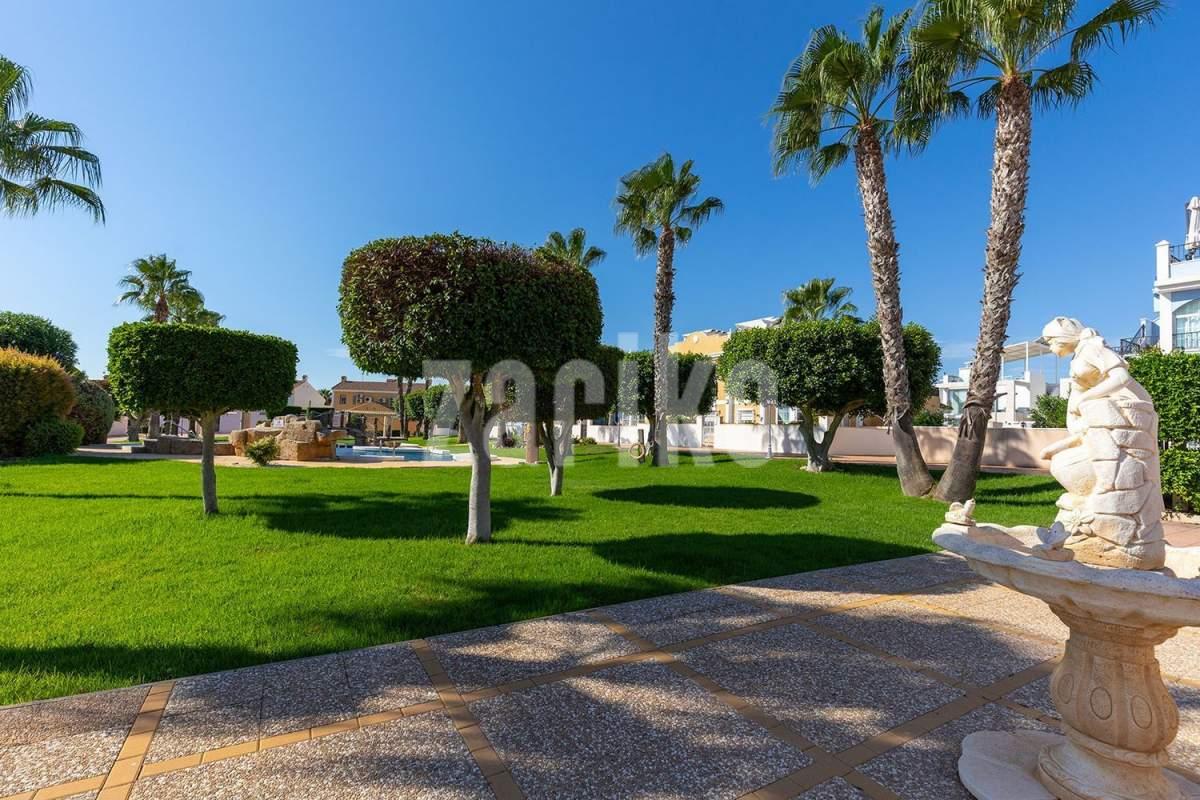 Una preciosa casa adosada en esquina situada en la popular zona de Lomas de Cabo Roig en la Costa Blanca Sur. Esta propiedad tiene una de las mejores parcelas de toda la urbanización, completamente orientada al sur, con espacio para construir una piscina privada si lo desea, y con numerosos árboles y plantas que la convierten en un verdadero oasis de tranquilidad e intimidad. La casa en sí cuenta con un amplio salón con chimenea y aire acondicionado, preparado tanto para el calor como para el frío. Hay una cocina independiente adyacente, así como un dormitorio y un baño con ducha en la planta baja. Desde la cocina se accede a un cuarto de lavandería y a través de éste a una terraza trasera, ideal para sentarse a la sombra durante los calurosos meses de verano. En la planta superior hay otros dos dormitorios y un baño. Ambos dormitorios tienen acceso al balcón con vistas a los alrededores e incluso un pequeño vistazo al mar Mediterráneo. Por la parte trasera de la propiedad se accede a las zonas comunitarias con preciosos jardines de césped natural que rodean una gran piscina con áreas para niños y adultos. También hay zonas de descanso sombreadas, un parque infantil y una sala social con tenis de mesa, lo que convierte a esta comunidad en una de las mejores equipadas de la zona. Lomas de Cabo Roig se beneficia del encantador nuevo centro comercial construido hace unos años, donde encontrará una variedad de restaurantes y tiendas de alta calidad. También hay un supermercado internacional en la zona, así como numerosos bares y otros servicios. A pocos minutos en coche se encuentran la playa, los campos de golf y el centro comercial La Zenia Boulevard. Para más información sobre la propiedad o para reservar una visita privada, póngase en contacto con nosotros en Mediter.