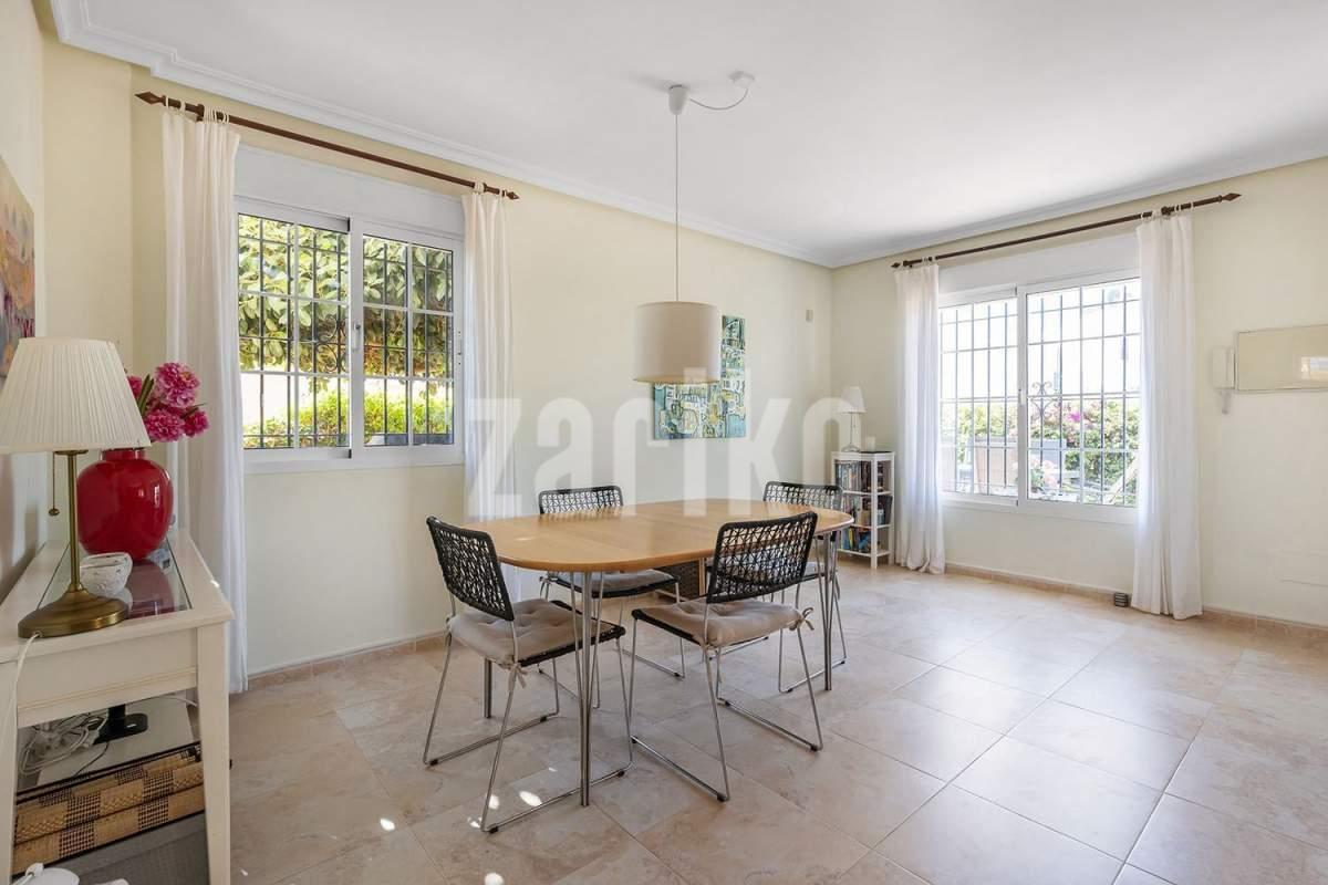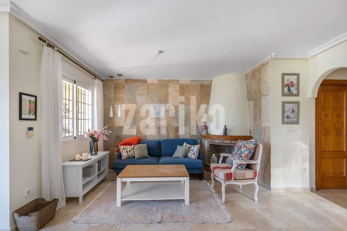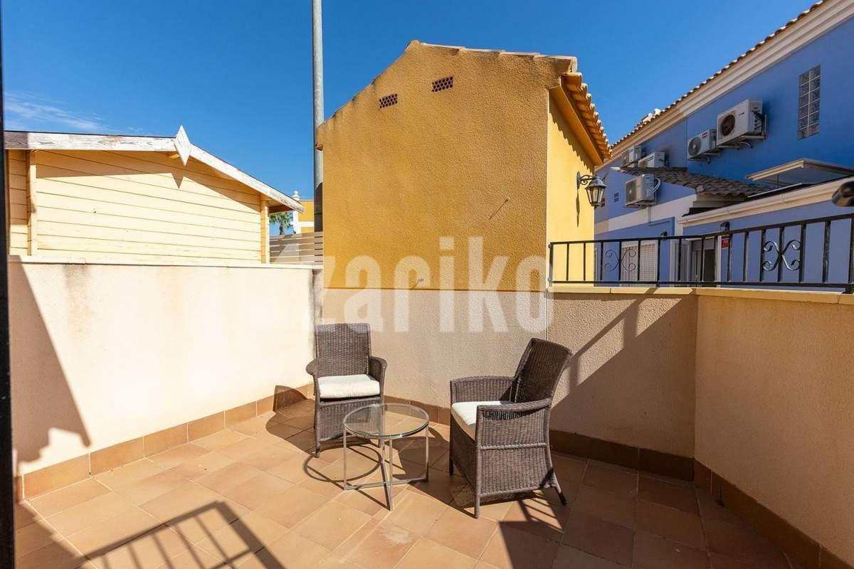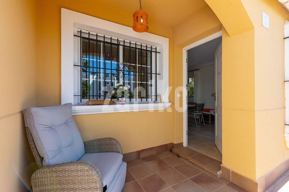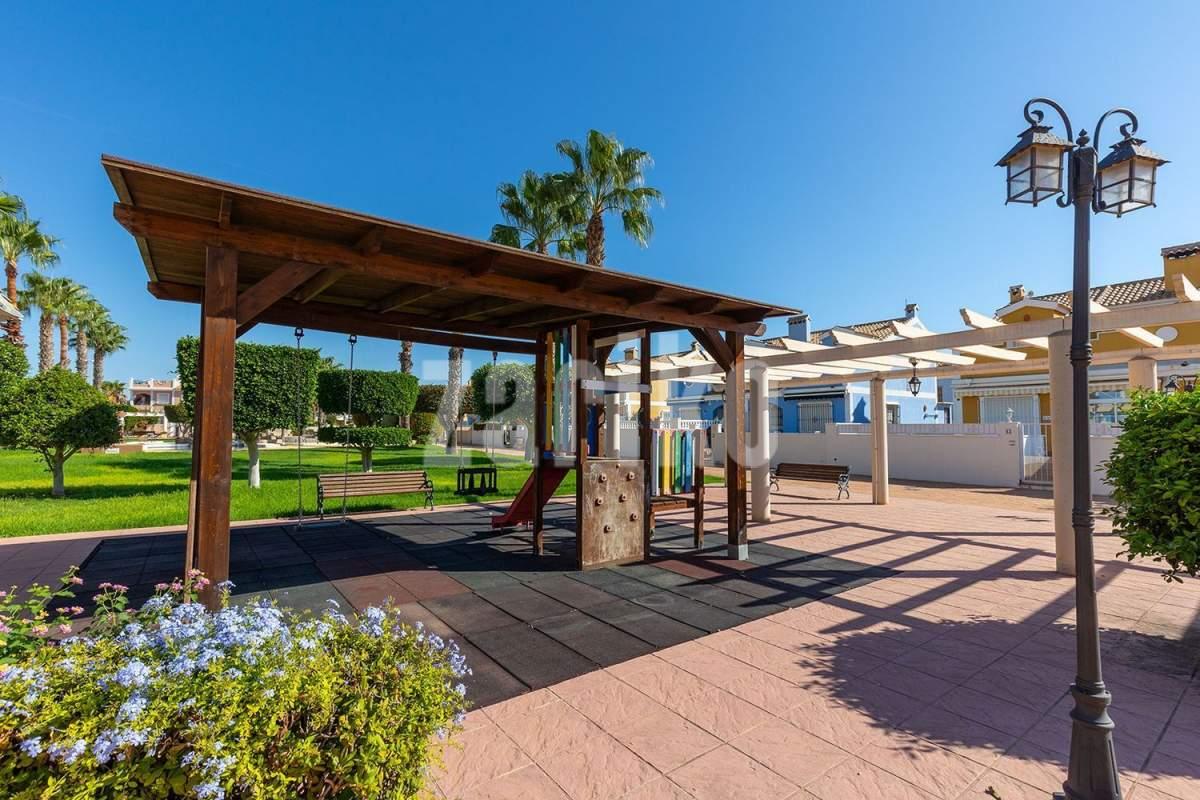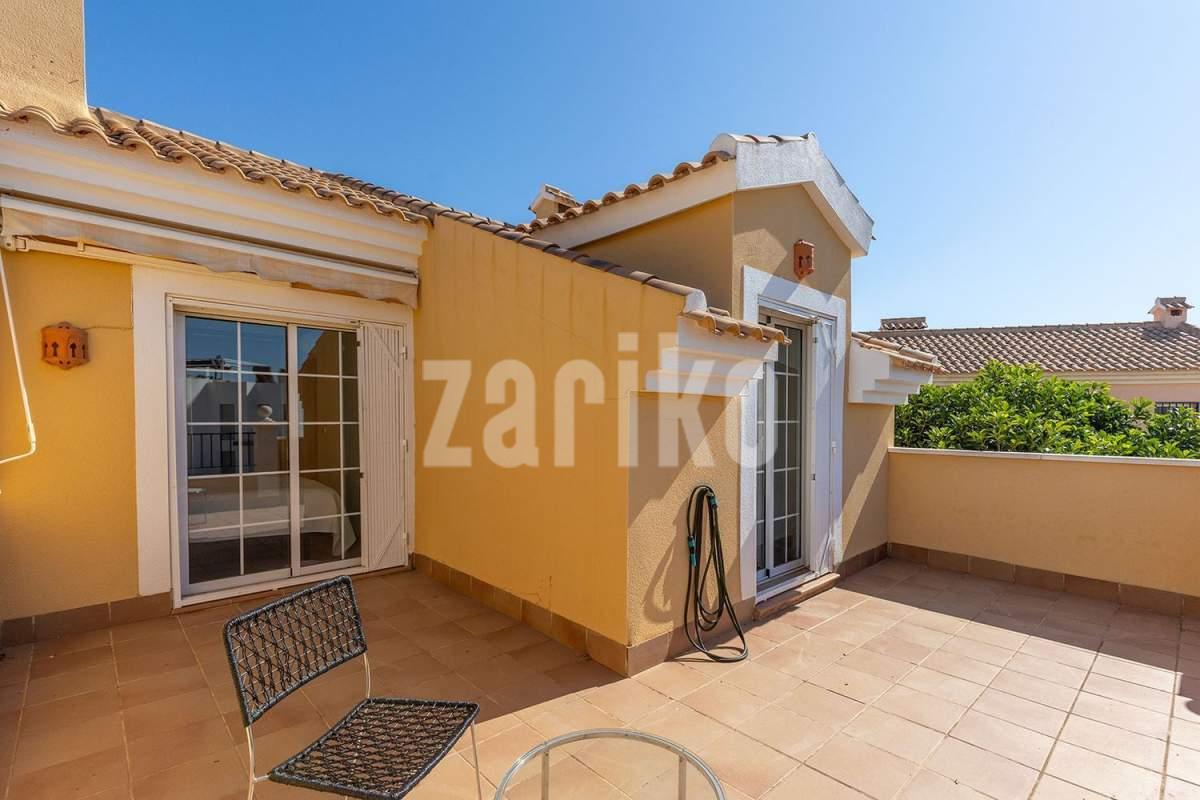 Una preciosa casa adosada en esquina situada en la popular zona de Lomas de Cabo Roig en la Costa Blanca Sur. Esta propiedad tiene una de las mejores parcelas de toda la urbanización, completamente orientada al sur, con espacio para construir una piscina privada si lo desea, y con numerosos árboles y plantas que la convierten en un verdadero oasis de tranquilidad e intimidad. La casa en sí cuenta con un amplio salón con chimenea y aire acondicionado, preparado tanto para el calor como para el frío. Hay una cocina independiente adyacente, así como un dormitorio y un baño con ducha en la planta baja. Desde la cocina se accede a un cuarto de lavandería y a través de éste a una terraza trasera, ideal para sentarse a la sombra durante los calurosos meses de verano. En la planta superior hay otros dos dormitorios y un baño. Ambos dormitorios tienen acceso al balcón con vistas a los alrededores e incluso un pequeño vistazo al mar Mediterráneo. Por la parte trasera de la propiedad se accede a las zonas comunitarias con preciosos jardines de césped natural que rodean una gran piscina con áreas para niños y adultos. También hay zonas de descanso sombreadas, un parque infantil y una sala social con tenis de mesa, lo que convierte a esta comunidad en una de las mejores equipadas de la zona. Lomas de Cabo Roig se beneficia del encantador nuevo centro comercial construido hace unos años, donde encontrará una variedad de restaurantes y tiendas de alta calidad. También hay un supermercado internacional en la zona, así como numerosos bares y otros servicios. A pocos minutos en coche se encuentran la playa, los campos de golf y el centro comercial La Zenia Boulevard. Para más información sobre la propiedad o para reservar una visita privada, póngase en contacto con nosotros en Mediter.