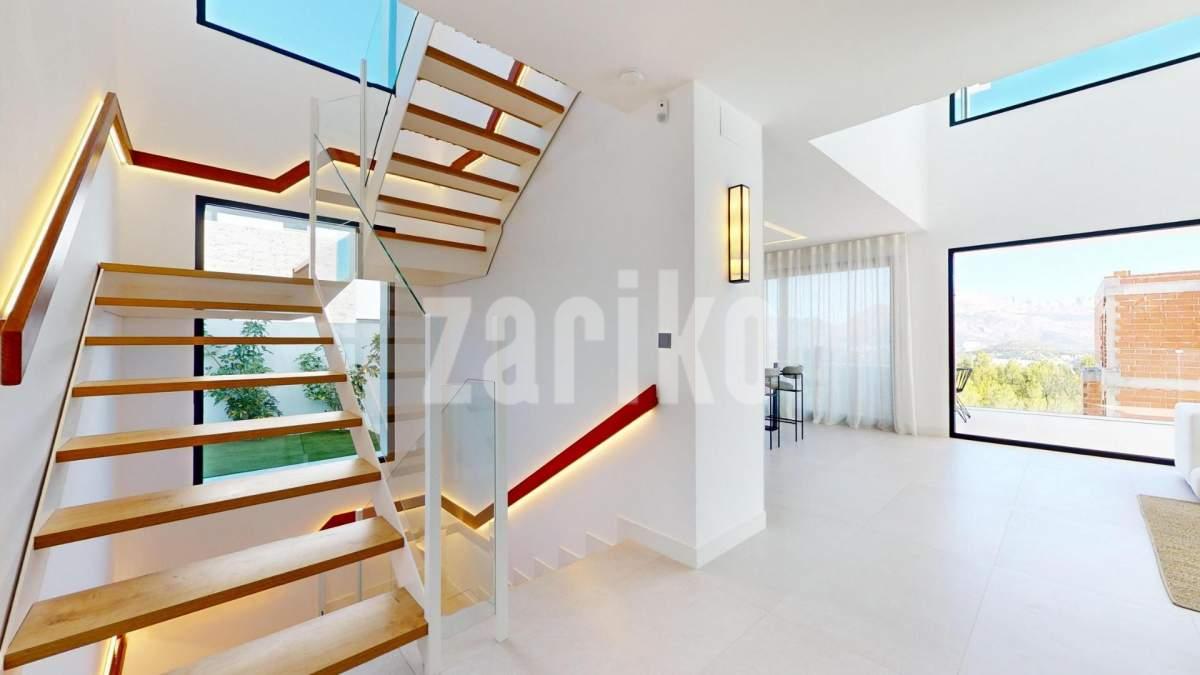 Villas de lujo de nueva construcción en Polop con impresionantes vistas Exclusiva Promoción de 6 Villas de Lujo en Polop Esta nueva promoción de 6 villas de lujo se encuentra en Polop, ofreciendo impresionantes vistas al mar y a la montaña. Cada villa está construida sobre una parcela independiente con piscina privada, aparcamiento, zona de barbacoa y un amplio jardín. Las villas se distribuyen en dos plantas más un semisótano, con un total de 293 m² en parcelas privadas de 393 m². Amplia distribución y diseño moderno En la planta principal, encontrará una moderna cocina con isla, un salón-comedor diáfano, un dormitorio, un baño, una terraza cubierta y una gran terraza descubierta, perfecta para disfrutar de las vistas de Polop, Altea y las montañas de los alrededores. La primera planta cuenta con dos amplios dormitorios, dos baños y dos terrazas, cubiertas y descubiertas. El semisótano se puede convertir en una vivienda independiente. Acabados de alta calidad y eficiencia energética Las villas disponen de cocina totalmente equipada con electrodomésticos Siemens. Los baños están totalmente equipados con grifería Roca de alta gama. Todas las viviendas disponen de calefacción por suelo radiante, aire acondicionado y piscina infinita. Las villas han sido diseñadas pensando en la eficiencia energética y cuentan con un certificado energético de clase A. Ubicación privilegiada cerca de los servicios Situadas a sólo 10 km de Benidorm y Altea, estas villas están a un corto trayecto en coche de La Nucía y Alfaz del Pi. La zona ofrece fácil acceso a los principales puntos de interés, incluyendo las playas de Benidorm (15 km), el aeropuerto de Alicante (65 km), y varios campos de golf (dentro de 10 km). La proximidad de Polop a estos servicios, combinada con su entorno tranquilo, lo convierte en un lugar ideal para los amantes de las actividades al aire libre y los que buscan tranquilidad.
