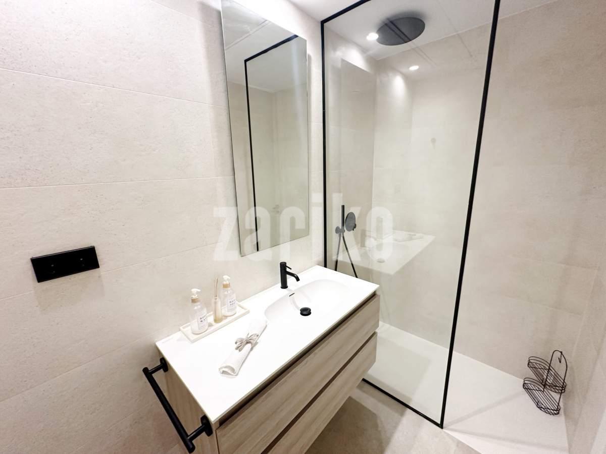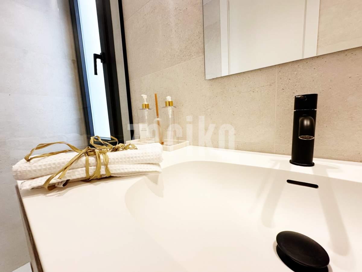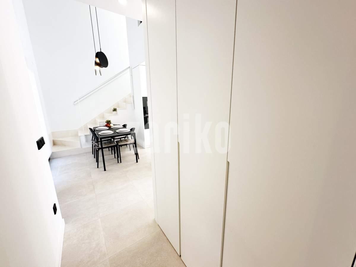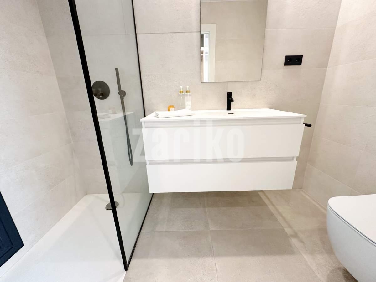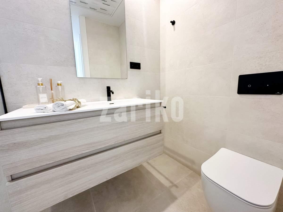 This beautifully designed villa features its own private driveway with convenient parking. There is the option to install a jacuzzi or swimming pool, allowing you to create a private outdoor relaxation area.The terrace adjoining the living room has been carefully designed to offer a peaceful, secluded space for relaxation. The villas themselves have been conceived with comfort, tranquillity and privacy in mind.Ideally located, the property is just a two-minute walk from the impressive lagoon and beach areas within Santa Rosalía Lake and Life Resort. The charming town of Los Alcázares and the beaches of the Mar Menor are only a five-minute drive away, offering a variety of popular Spanish restaurants such as Tropical and Encarnación.Inside, the home impresses with a wonderful sense of space and natural light – the dining area benefits from a double-height ceiling, while the lounge opens through large patio doors onto the terrace and garden. The modern kitchen includes a generous island with a breakfast bar and high-quality appliances. On this level there is also a practical utility room with a boiler and washing machine.The ground floor features a double bedroom with an en-suite bathroom and direct access to the garden, a second double bedroom with patio doors leading to the rear terrace, and a stylish family bathroom. The hallway also includes a useful built-in wardrobe providing additional storage space.Upstairs, the master bedroom offers a walk-in wardrobe, an en-suite bathroom and its own private terrace. From this floor there is access to a spacious south-facing terrace, shared between the master suite and the hallway.The villa is equipped with a solar installation for domestic hot water and 5 kW photovoltaic panels, significantly reducing energy costs. The Airzone system allows independent temperature control in each room – for both heating and cooling – ensuring year-round comfort.The kitchen features an elegant island finished with premium Porcelanosa – Krion worktop, made of a modern, durable and hygienic material inspired by natural stone. This worktop was added as an additional feature at the owners’ request.The interior has been carefully arranged with attention to material consistency and fine details. Wall-mounted lights in the bedrooms and the living-room pendant lamp were added at the owners’ request, reflecting a modern Spanish style with a subtly raw, stone-inspired character – resulting in a balanced and elegant atmosphere throughout.The property is sold fully furnished, has an A-class energy rating, Airzone climate control, an outdoor shower in the garden, and the option for quick completion – with no need to wait for a new construction phase.