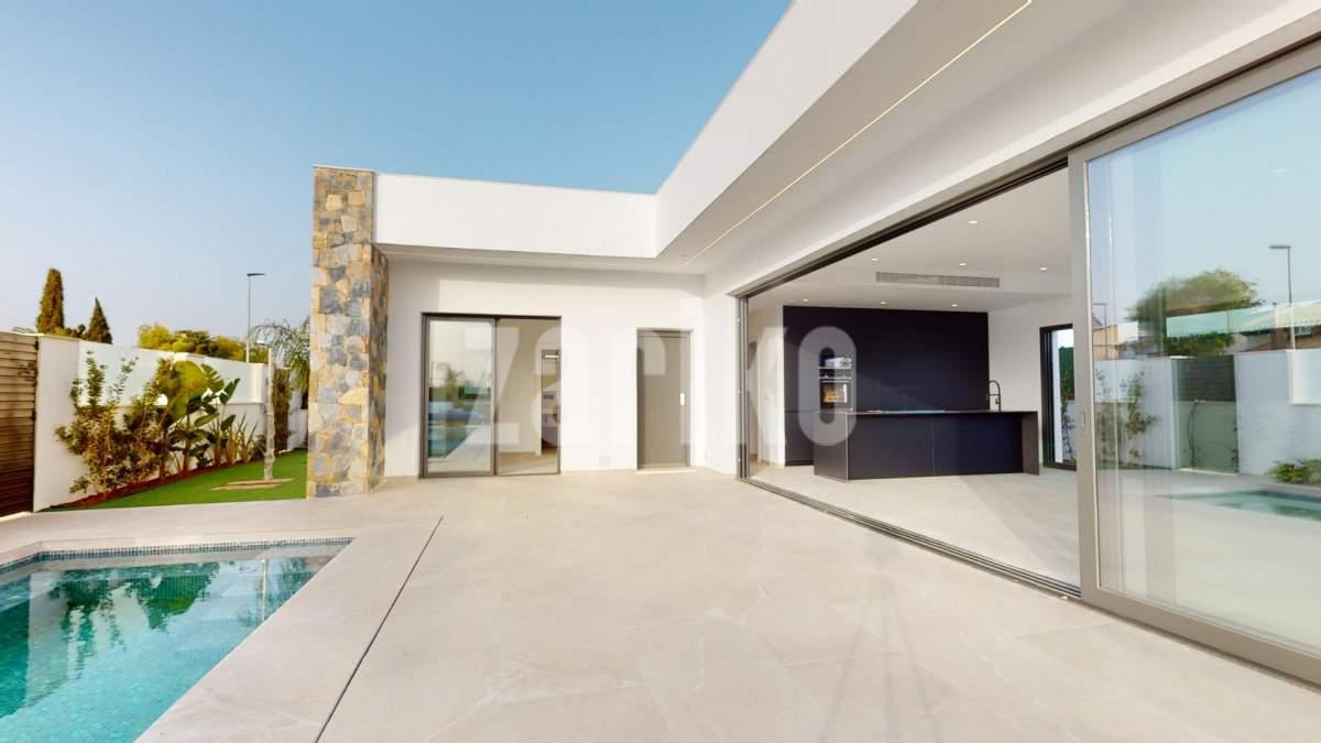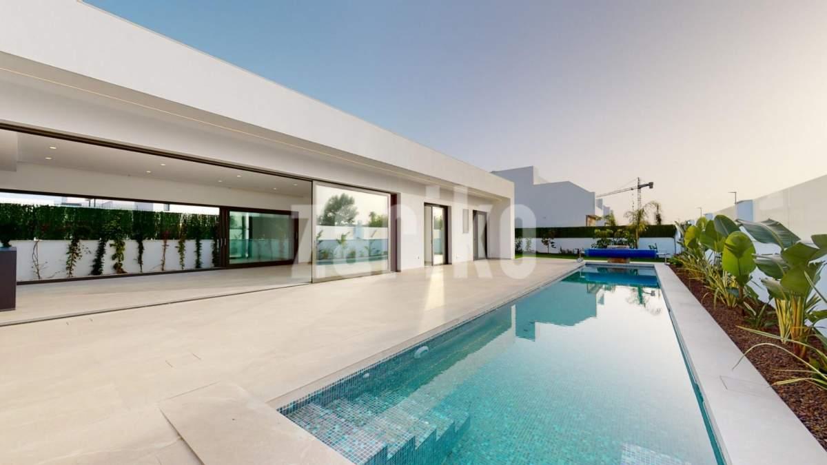 VILLAS DE OBRA NUEVA EN LOS ALCAZARES Residencial de obra nueva de chalets y adosados en Serena Golf, Los Alcazares. Villas modernas dispone de 3 dormitorios, 3 baños, cocina americana con salón, terraza, solarium, jardín privado con la piscina y plaza de aparcamiento. Cocina totalmente equipada en color blanco brillo o madera. Cuarzo tecnológico. Fregadero de acero inoxidable. Placa de inducción con extractor integrado, horno, microondas, lavadora, frigorífico integrado, lavavajillas integrado. Aire acondicionado: Instalación completa con conductos FUJITSU. Piscina: Dimensiones acordes a la vivienda, con escalones, gresite azul e iluminación LED blanca. Preinstalación para bomba de calor. La Serena Golf se encuentra en el municipio de Los Alcázares, ocupando una extensión de 60 hectáreas al borde del Mar Menor, un entorno natural perfecto para disfrutar del mejor clima de Europa. Los Alcázares situado en la Región de Murcia cerca de las playas del Mar Menor, donde se pueden practicar diversos deportes náuticos, rodeado de varios campos de golf. Aquí podrá practicar diversos deportes náuticos, rodeado de varios campos de golf y la ciudad de Cartagena a menos de 15 minutos en coche y a 22 km del aeropuerto de Murcia, teniendo por tanto una amplia oferta cultural, gastronómica y deportiva a su alcance.