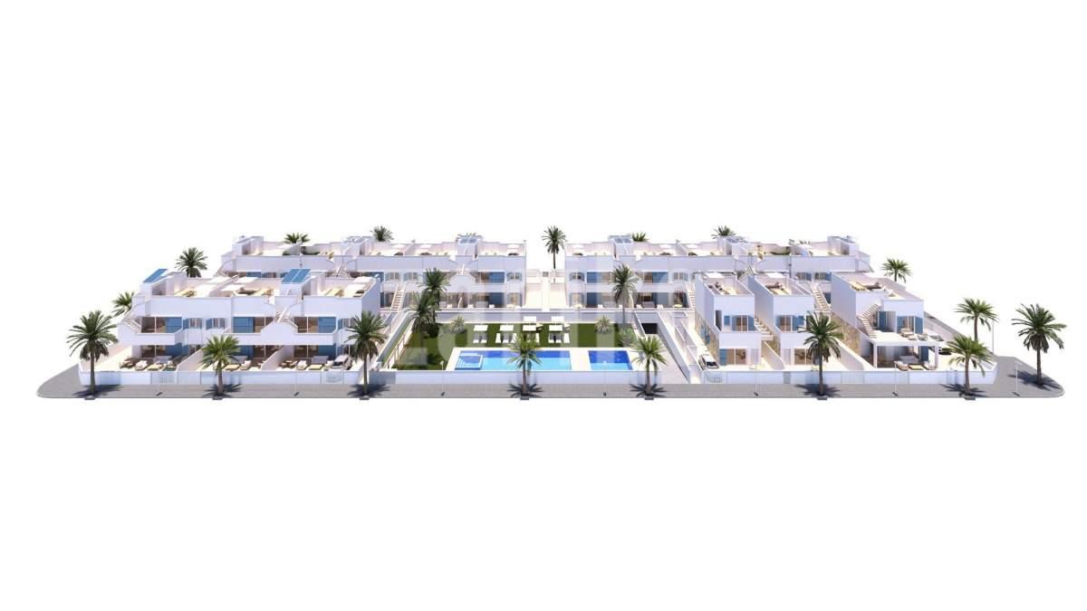 VILLA DE OBRA NUEVA EN TORRE DE LA HORADADA Villa de obra nueva en complejo residencial con piscina comunitaria en Torre de la Horadada situado a 800m de la playa. Villa dispone de 4 dormitorios, 3 baños, cocina americana con el salón, armarios empotrados, terraza, solarium privado, jardín y plaza de aparcamiento.. Torre de la Horadada se encuentra al sur de Alicante en una hermosa ubicación en la costa. Las hermosas playas de Torre de la Horadada y Mil Palmeras tienen arena fina hermoso paseo marítimo. Hay un montón de restaurantes, bares y tiendas, también deportes acuáticos, buceo y snorkel. Está bien comunicado a sólo 40 minutos de los aeropuertos de Alicante y Murcias Corvera, con grandes centros comerciales y múltiples campos de golf a poca distancia.