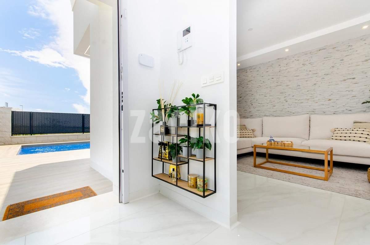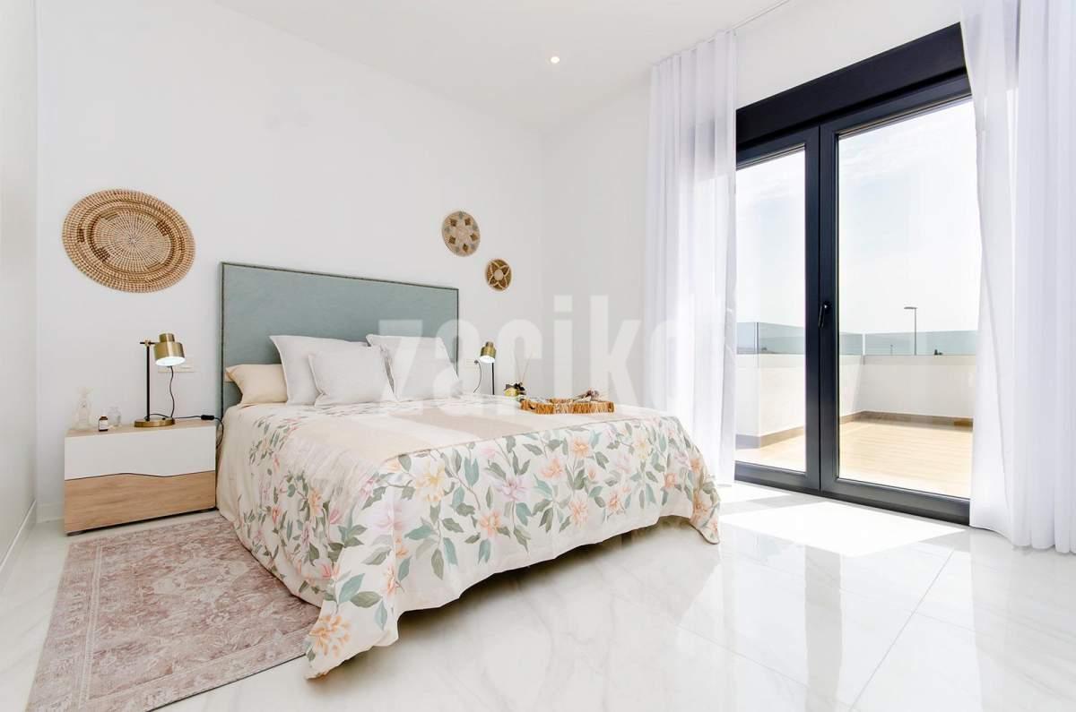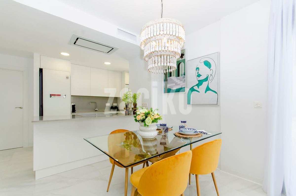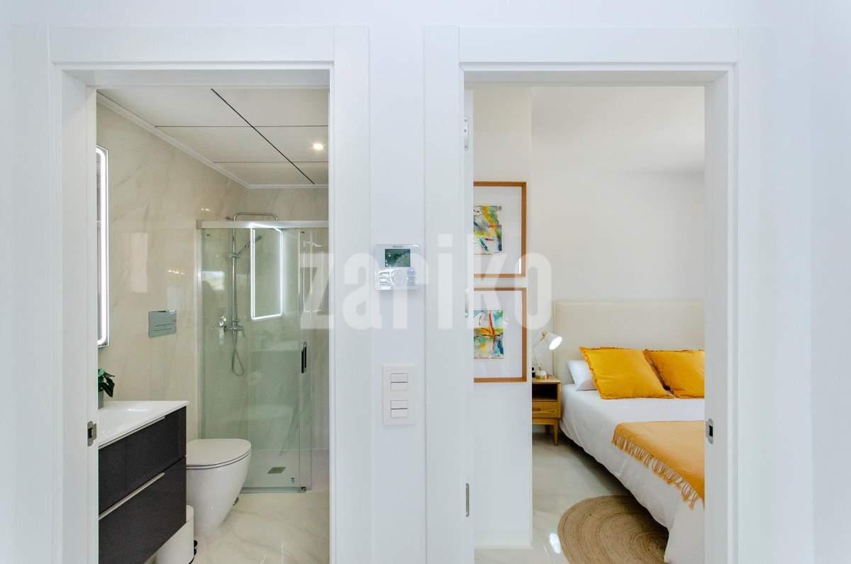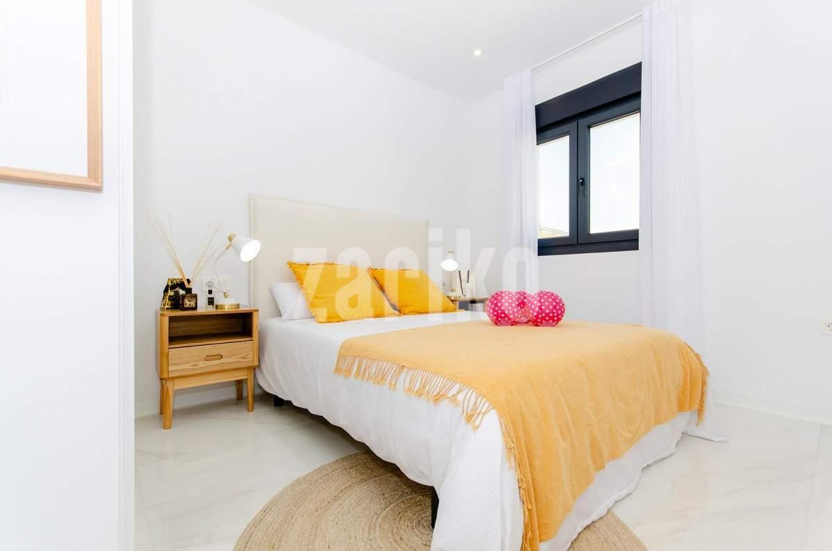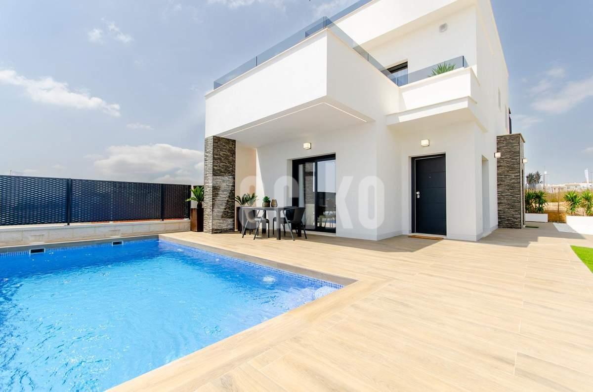 VILLAS DE OBRA NUEVA EN VISTABELA GOLF RESORT Villas de lujo de nueva construcción en 2 plantas situadas en Vistabela golf resort, entre San Miguel y Los Montesinos en Orihuela Costa. Villas con 3 dormitorios, 3 baños, un salón abierto con la cocina, jardín privado con la piscina y plaza de aparcamiento. Una opción que puede tener un solarium privado con un costo adicional. En Vistabella Golf hay espacio para todos. El campo está diseñado para que cada jugador pueda disfrutarlo de principio a fin. Sus calles onduladas, sus bunkers estratégicos o sus lagos son algunas de las características que lo convierten en uno de los diseños más atractivos de la zona, donde cada golpe es un reto y un placer para los sentidos. Los 18 Hoyos de Vistabella Golf, de par 72 y más de 6.000 metros de longitud han sido diseñados siguiendo las pautas de los campos modernos con 4 tees de gran amplitud en cada hoyo, amplias calles y bunkers elevados. La casa club de Vistabella Golf y su restaurante, así como los bares y tiendas locales, se encuentran a 5 minutos a pie. El concurrido pueblo de San Miguel de Salinas y Los Montesinos están a 5 minutos en coche y las encantadoras playas de bandera azul de Guardamar están a sólo 15 minutos en coche. El aeropuerto de Alicante está a 35 minutos y el nuevo aeropuerto de Corvera Murcia está a 45 minutos.