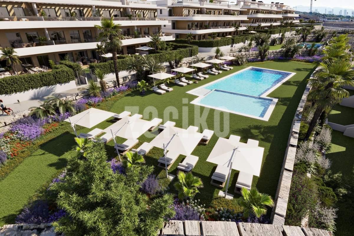 Luxury New Build Apartments and Villas with Panoramic Sea Views in Finestrat Exclusive Mediterranean Living near Benidorm Discover an exceptional new luxury residential development offering apartments, most of them with seaviews, and private villas in the prestigious area of Finestrat, just minutes from the vibrant city of Benidorm and its golden beaches. Nestled between the mountains and the Mediterranean Sea, this privileged location provides a peaceful environment with quick access to fine dining, premium shopping, international schools, golf courses and marina services. Alicante Airport is approximately 55 km away, while the sandy beaches of Benidorm and the charming old town are just 3 km and 4 km away respectively. Modern Architecture and Premium Design Designed for those seeking elegance, modern comfort and a high quality Mediterranean lifestyle, this exclusive resort features innovative architecture and spacious terraces that offer unobstructed sea views and sun exposure throughout the year. Each property is built to the highest standards with generous interiors, floor to ceiling windows and seamless indoor outdoor integration. Choose from 2 and 3 bedroom luxury apartments available in ground floor units with private gardens, middle floors with large sea view terraces, or stunning penthouses with private solariums. Exclusive 3 bedroom villas are also available, featuring single level layouts, private pools and basements, ideal for permanent living or high yield investment. Premium Finishes and Advanced Smart Home Technology Homes include fully fitted and equipped kitchens, ducted air conditioning, furnished bathrooms, shower screens and built in wardrobes. All units come with a smart alarm system, app controlled blinds and lighting, with upgrade options available for additional home automation features. Private parking and storage rooms are included. Resort Style Amenities Enjoy a sophisticated lifestyle with exceptional communal facilities including • Recreational pools and sunbathing areas • 25 meter swimming pool • Fully equipped gym and multipurpose area • Outdoor fitness and pilates space • Petanque court • Childrens play area • Extensive landscaped gardens with native plants • Solar energy system for resort consumption Sustainable and Energy Efficient Living Built with high efficiency materials, this development offers top energy performance with an A energy rating and solar power solutions to reduce environmental impact. Prime Location and Easy Access • Benidorm beaches 3 km • La Marina Shopping Center 1 km • Puig Campana Golf 3 km • Benidorm Old Town and leisure area 4 km • Alicante International Airport 55 km • Direct access to AP7 motorway Your Ideal Investment and Lifestyle Choice Experience luxury, comfort and nature in perfect harmony. Contact us today to schedule a visit or receive more information about this exclusive resort in Finestrat.