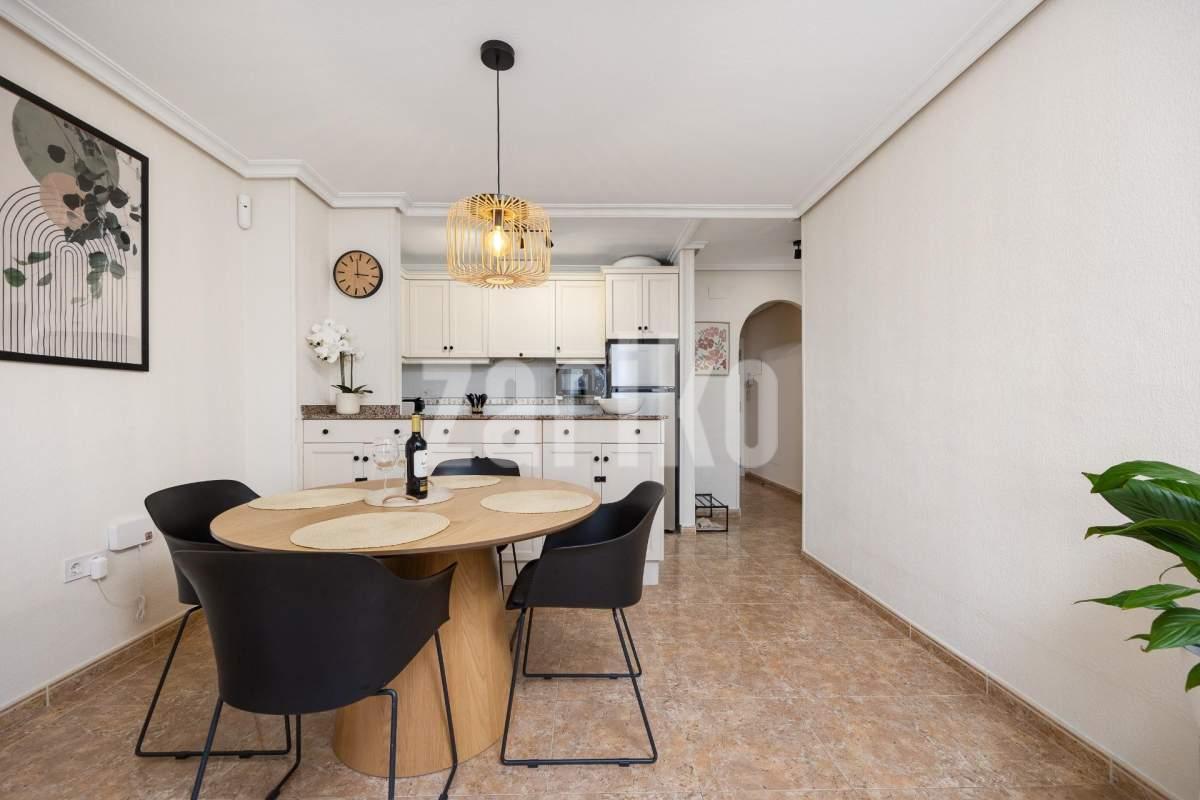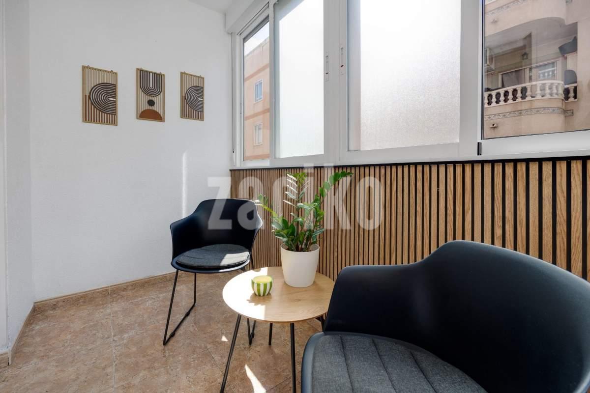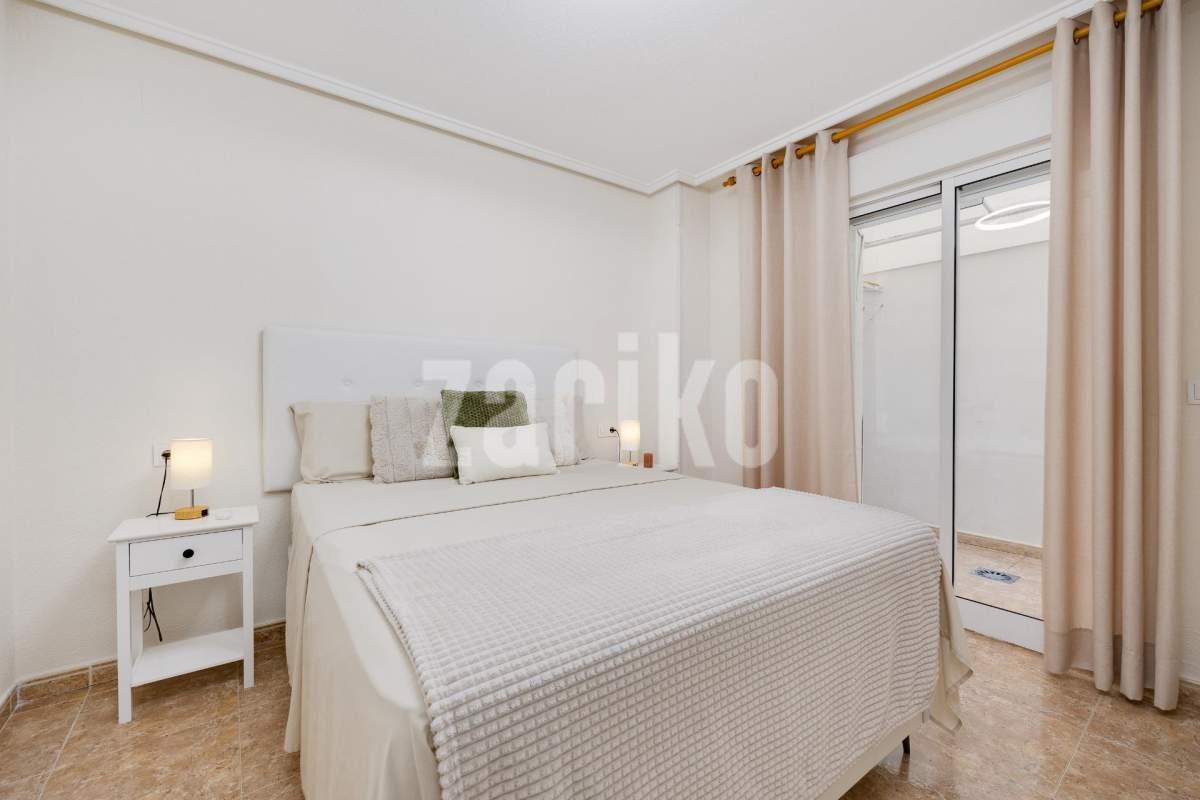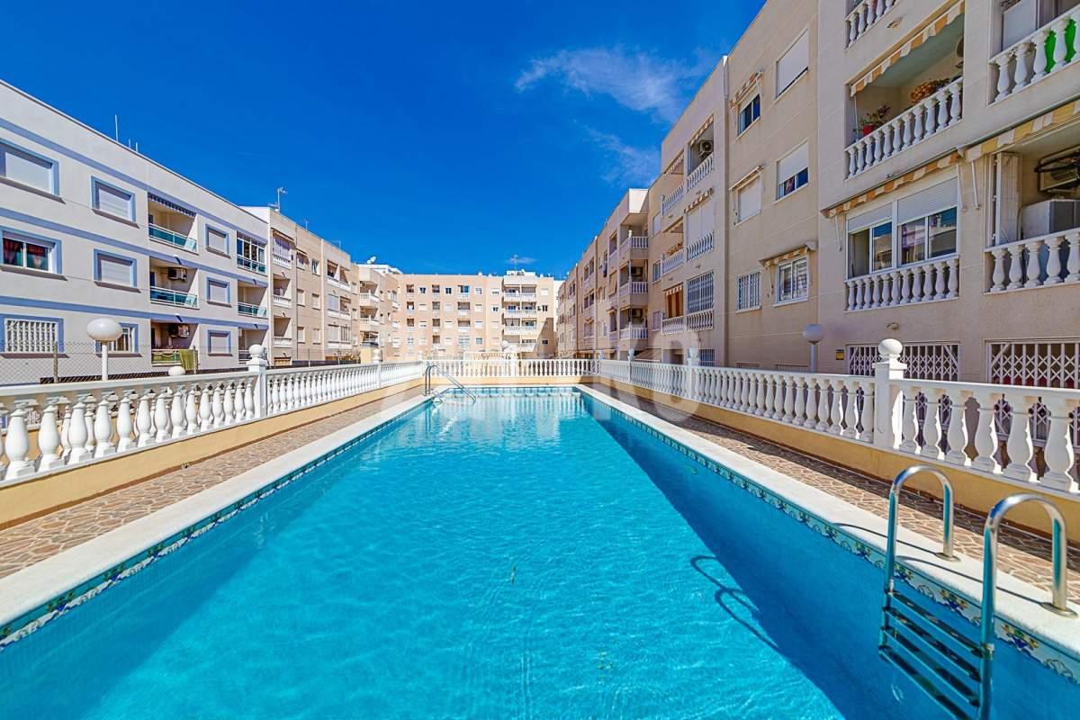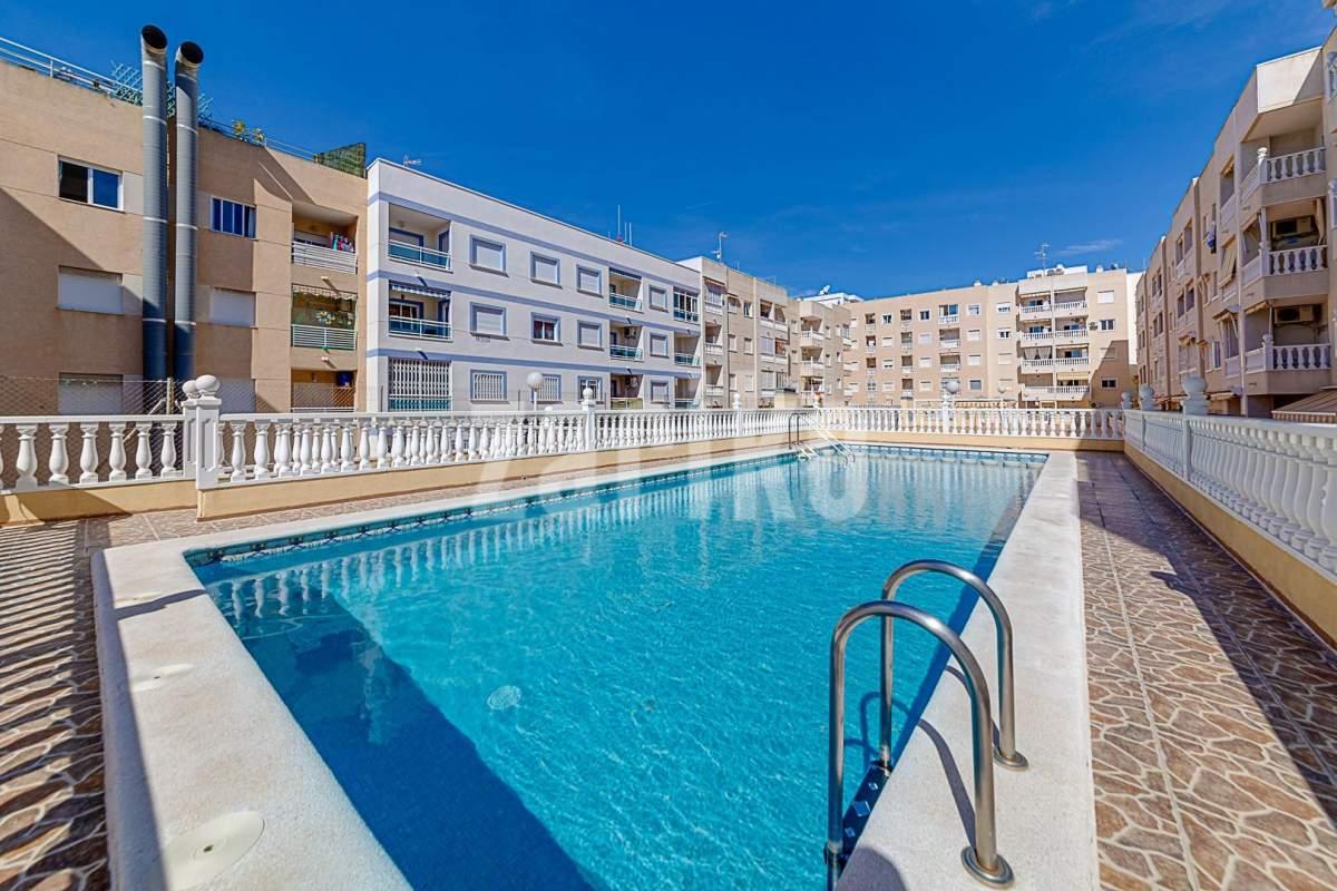 Located in the heart of Torrevieja, this cozy apartment offers the perfect combination of comfort, style, and location. Just 900 meters from the beach and surrounded by all essential services, it is ideal as a permanent residence, holiday home, or investment. The property, semi-renovated and with a modern design, consists of 1 bedroom with built-in wardrobe and direct access to a practical patio, 1 full bathroom with shower, a bright living-dining room with fully equipped American-style kitchen, and a glazed terrace that, thanks to its excellent orientation, is filled with natural light throughout the day. The building also offers communal areas ideal for relaxation and leisure, including a communal solarium and a swimming pool to enjoy on sunny days. A home ready to move into, in a privileged location and with all the amenities at your fingertips.