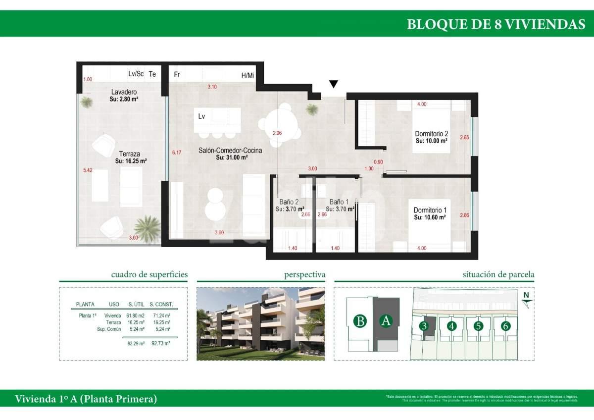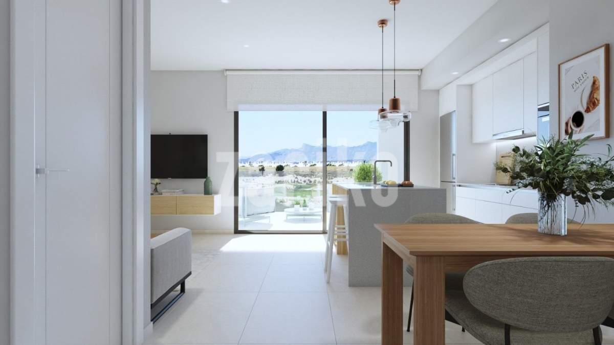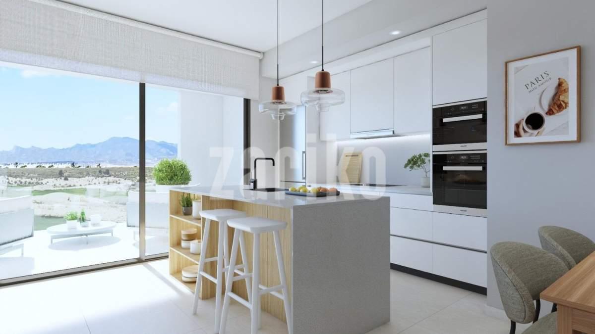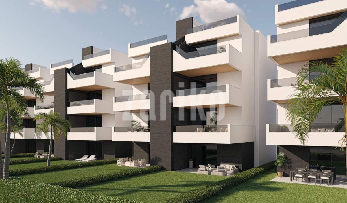 NEW APARTMENTS IN CONDADO DE ALHAMA GOLF COURSE New two-bedroom, two-bathroom apartments with frontline golf views of ALHAMA SIGNATURE GOLF, a fabulous 18-hole golf course designed by Jack Nicklaus. CONDADO DE ALHAMA is a fantastic Golf Resort with many facilities and services. A shopping centre, sports centre, a range of bars and restaurants, supermarket... and more than 25 communal swimming pools and gardens. Only 18 minutes by car from the new International Airport of the Region of Murcia. The apartments have an area between 73.88m2 and 75.22m2 divided into 2 bedrooms, 2 bathrooms, an open living-kitchen-dining room of 26.80m2, and a 17m2 terrace. Included: Parking lot Complete bathroom Pre-installation of air conditioning Video intercom This promotion enjoys a 24-hour surveillance system every day of the year. We will also enjoy the magnificent views of the golf course and we will be able to be on the beaches of Mazarrón just 15 minutes away by car.
