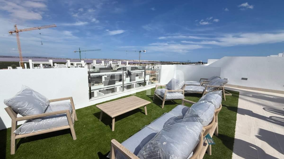 Located in the captivating city of Torrevieja, this modern apartment promises to be the ideal retreat for those seeking a comfortable and relaxing lifestyle. With a built area of 115 m² and usable space of 110 m², every corner of this home has been designed to maximize space and natural light.Space DistributionThe apartment features 2 cozy bedrooms, perfect for enjoying the tranquility and rest you deserve. A well-distributed bathroom provides functionality and comfort. The open-plan kitchen seamlessly integrates with the living room, creating an open and welcoming atmosphere, ideal for sharing moments with family or friends.Enjoy the OutdoorsOne of the great charms of this apartment is its 22.80 m² terrace, a perfect space to enjoy the Mediterranean climate. Imagine relaxing with a cup of coffee in the morning or hosting outdoor dinners while enjoying the views. The east orientation ensures you can enjoy the sun during the morning hours, filling your home with light and warmth.Amenities and ServicesThe community in which the apartment is located offers a communal pool, ideal for cooling off during the warm summer days. Additionally, the building features parking for your convenience and is designed with a modern style, providing not only aesthetics but also functionality in the distribution of its spaces. The good communications with the main access roads make navigating the city quick and comfortable.A Place to Call HomeThis apartment in Torrevieja represents not just a housing option, but a lifestyle in a vibrant environment full of opportunities. Nearby cities, natural beauty, and an enviable climate make this property a place where your dreams can come true. The Costa Blanca is known for its recreational and relaxation possibilities, offering a range of activities and attractions to enjoy year-round.Don’t miss the opportunity to live in this magnificent apartment that, more than just a physical space, is a home filled with potential and warmth.