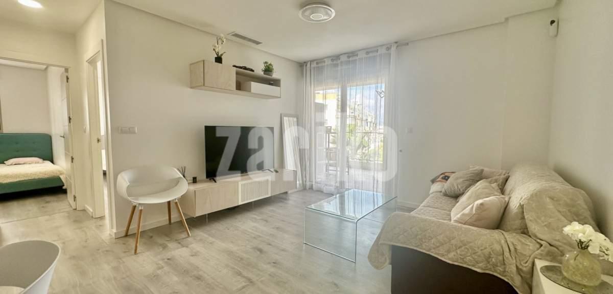 Discover this elegant and fully furnished apartment located in the sought-after Green Hills residential complex in Villamartín, Orihuela Costa.Situated on the second floor of block 5, this home offers a perfect blend of comfort, style, and modern Mediterranean living. The apartment features three spacious bedrooms and two contemporary bathrooms, including one en-suite. The interior is beautifully designed with a high-quality finish and modern furniture, all included in the price — ready to move in and enjoy. A large sunny terrace offers lovely open views, ideal for relaxing or dining outdoors. The Green Hills complex is one of the most complete in the area, offering three swimming pools (two outdoor and one heated indoor), a sauna, and a gym. Solar panels have been installed for the entire community, helping reduce energy costs. Located close to Villamartín Plaza, La Zenia Boulevard, and several golf courses, this property is perfect for year-round living or as a luxury holiday home on the Costa Blanca.