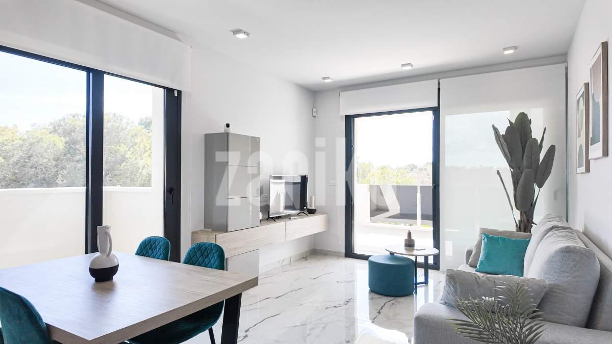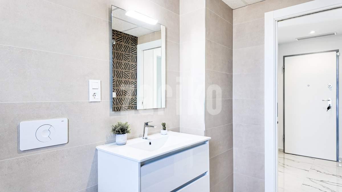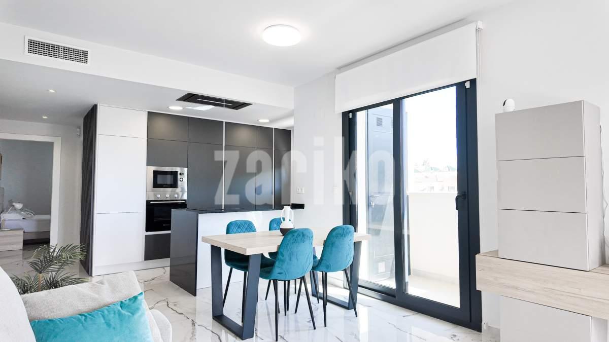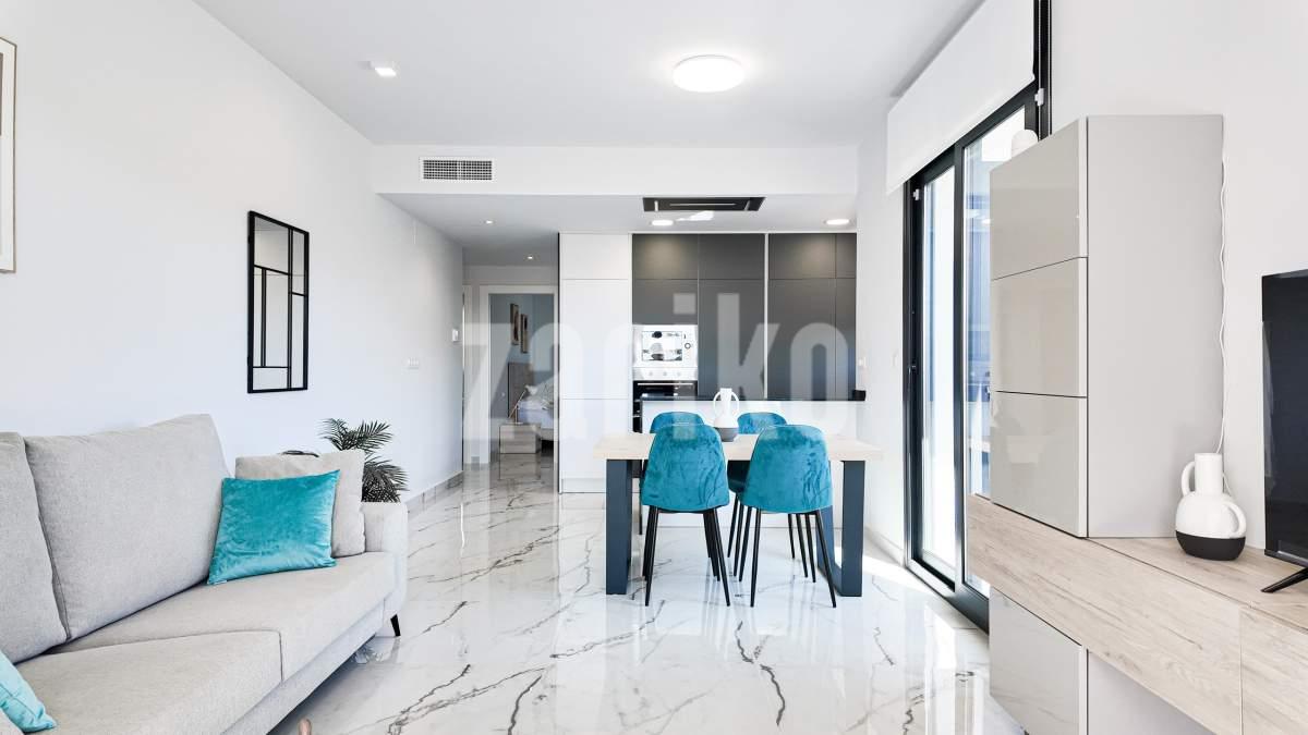 Modern apartments are for sale on the sunny coast of Orihuela Costa. The house has an area of 95 m², which makes it spacious and bright, suitable for any lifestyle. The apartments have 2 cozy bedrooms and 2 equipped bathrooms. The open plan includes a kitchen combined with a living room. You can exit to a charming balcony from the kitchen.Also, the apartment has an impressive terrace of 20 m². This open space is perfect for outdoor dinners or simply relaxing in the sun, serving as a natural extension of the living room.The apartment is equipped with central air conditioning. There is an elevator in the building.Residents have access to a communal pool - an ideal place to cool off and socialize with neighbors and friends. The complex also has a jacuzzi, gym, and sauna.The price includes a garage and a storage room.Perfect location: The apartment is located in Orihuela, a city known for its stunning beaches and vibrant coastal lifestyle, just a few steps away from everything you may need, from local restaurants to shops. Thanks to the south-facing orientation of the house, natural light fills every corner, creating a warm and cozy atmosphere.Online reservation is possible, as well as purchasing on credit from a bank at 4-6% per year.