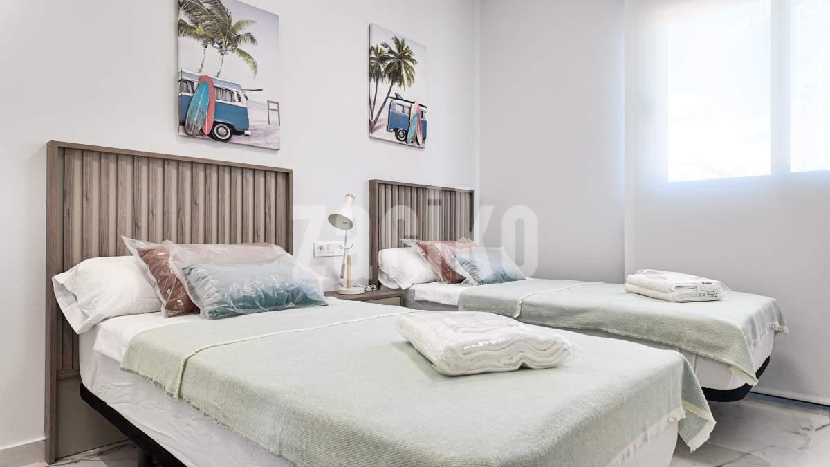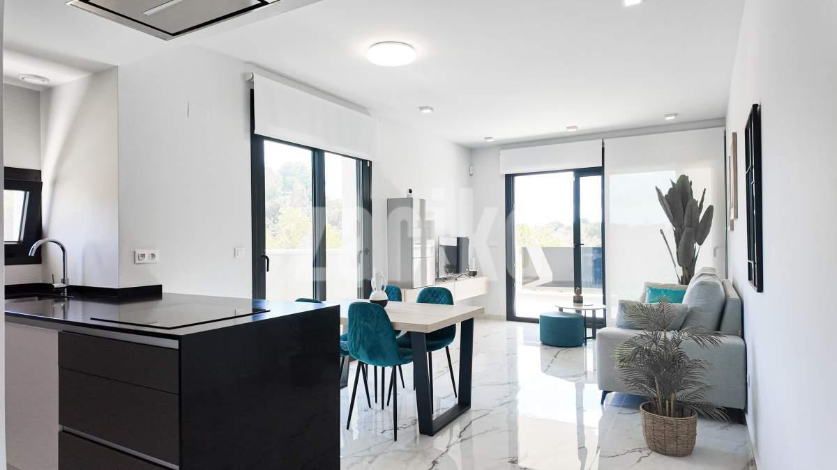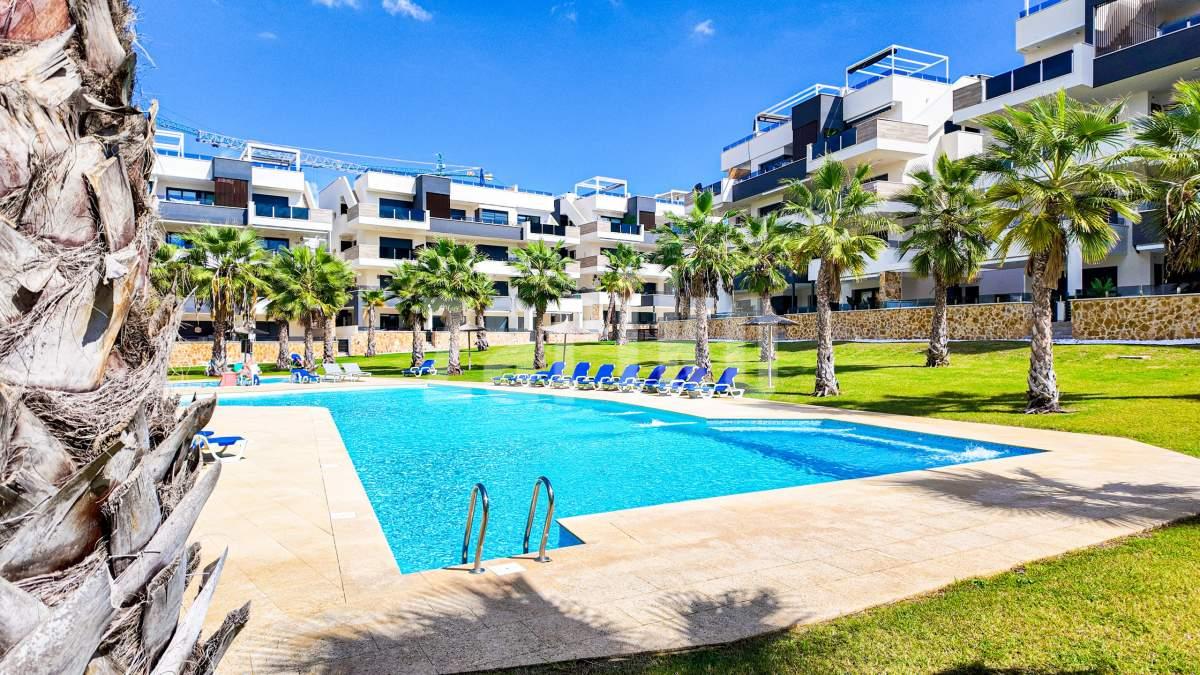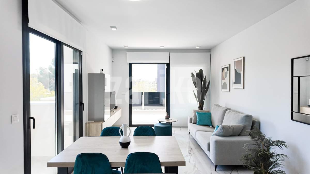 Modern apartments are for sale on the sunny coast of Orihuela Costa. The house has an area of 95 m², which makes it spacious and bright, suitable for any lifestyle. The apartments have 2 cozy bedrooms and 2 equipped bathrooms. The open plan includes a kitchen combined with a living room. You can exit to a charming balcony from the kitchen.Also, the apartment has an impressive terrace of 20 m². This open space is perfect for outdoor dinners or simply relaxing in the sun, serving as a natural extension of the living room.The apartment is equipped with central air conditioning. There is an elevator in the building.Residents have access to a communal pool - an ideal place to cool off and socialize with neighbors and friends. The complex also has a jacuzzi, gym, and sauna.The price includes a garage and a storage room.Perfect location: The apartment is located in Orihuela, a city known for its stunning beaches and vibrant coastal lifestyle, just a few steps away from everything you may need, from local restaurants to shops. Thanks to the south-facing orientation of the house, natural light fills every corner, creating a warm and cozy atmosphere.Online reservation is possible, as well as purchasing on credit from a bank at 4-6% per year.