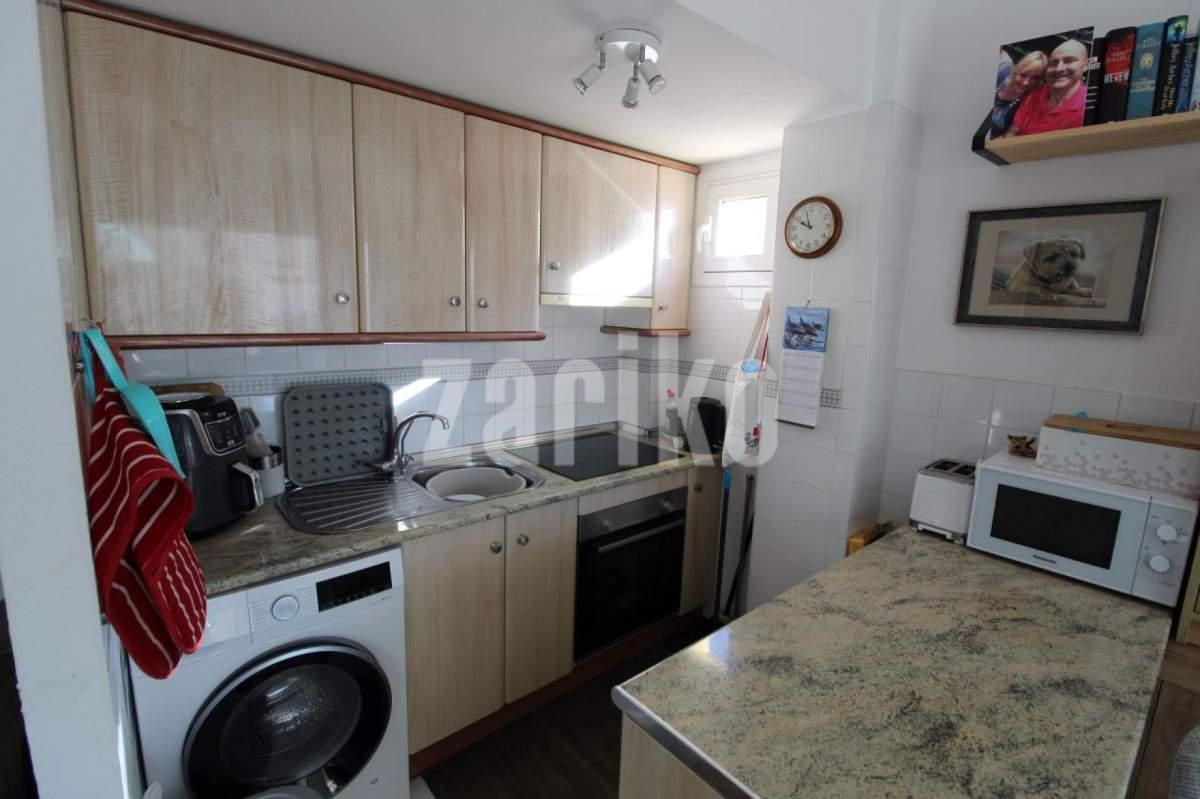 Charming apartment with sea views for sale in Torrevieja – La VeletaDiscover this lovely apartment located on the third floor of a building with an elevator, in one of Torrevieja's most sought-after areas. Its south-facing orientation guarantees excellent natural light throughout the day, while its beautiful sea views invite you to enjoy every sunrise and sunset from the comfort of your home.The apartment features a spacious and bright living-dining room, adjacent to a fully equipped open-plan kitchen, ideal for those seeking comfort and practicality. It also includes air conditioning and a ceiling fan, ensuring maximum comfort year-round.The spacious master bedroom, with a built-in wardrobe, offers a tranquil and inviting atmosphere. The fully renovated bathroom boasts a modern shower and high-quality finishes. The enclosed terrace allows you to enjoy the sun and the views even on cooler days.The apartment is being sold partially furnished, ready to move in or for use as a holiday rental. Its location is unbeatable: just 200 meters from the sea and very close to supermarkets, shops, and services.The complex has a communal swimming pool, with access for only €2 per person per day, perfect for cooling off in the summer. Community fees are approximately €350 per year, and property taxes are around €220 per year.In short, an ideal property both for enjoying the Mediterranean lifestyle and for investing with excellent returns.