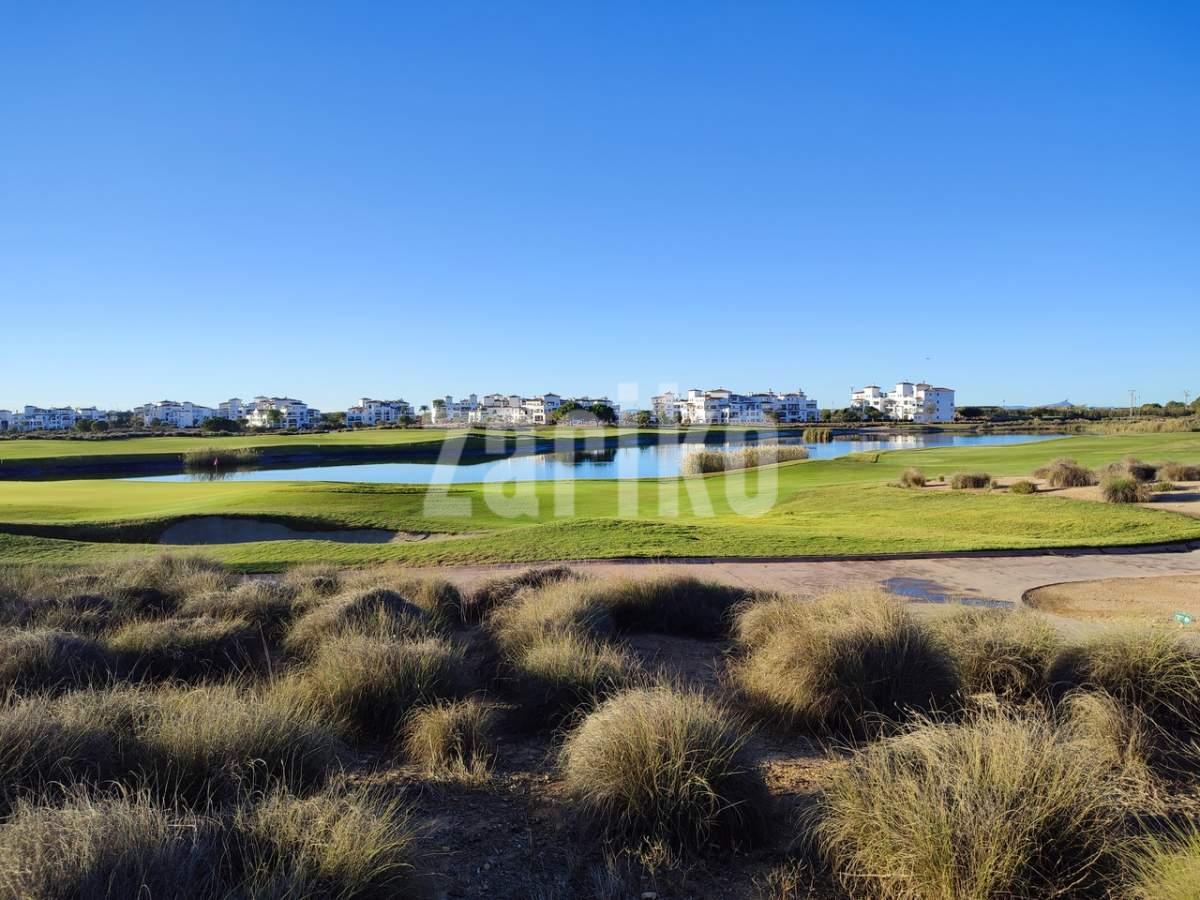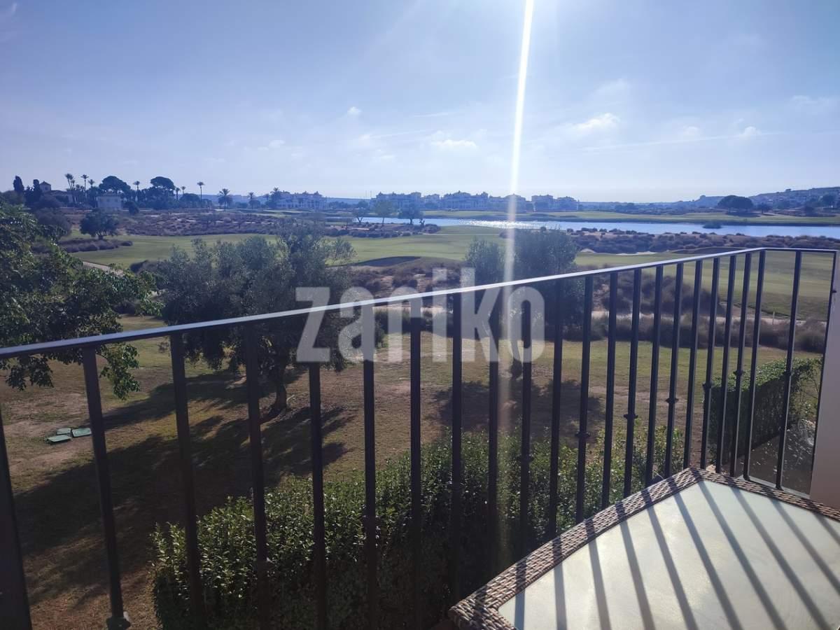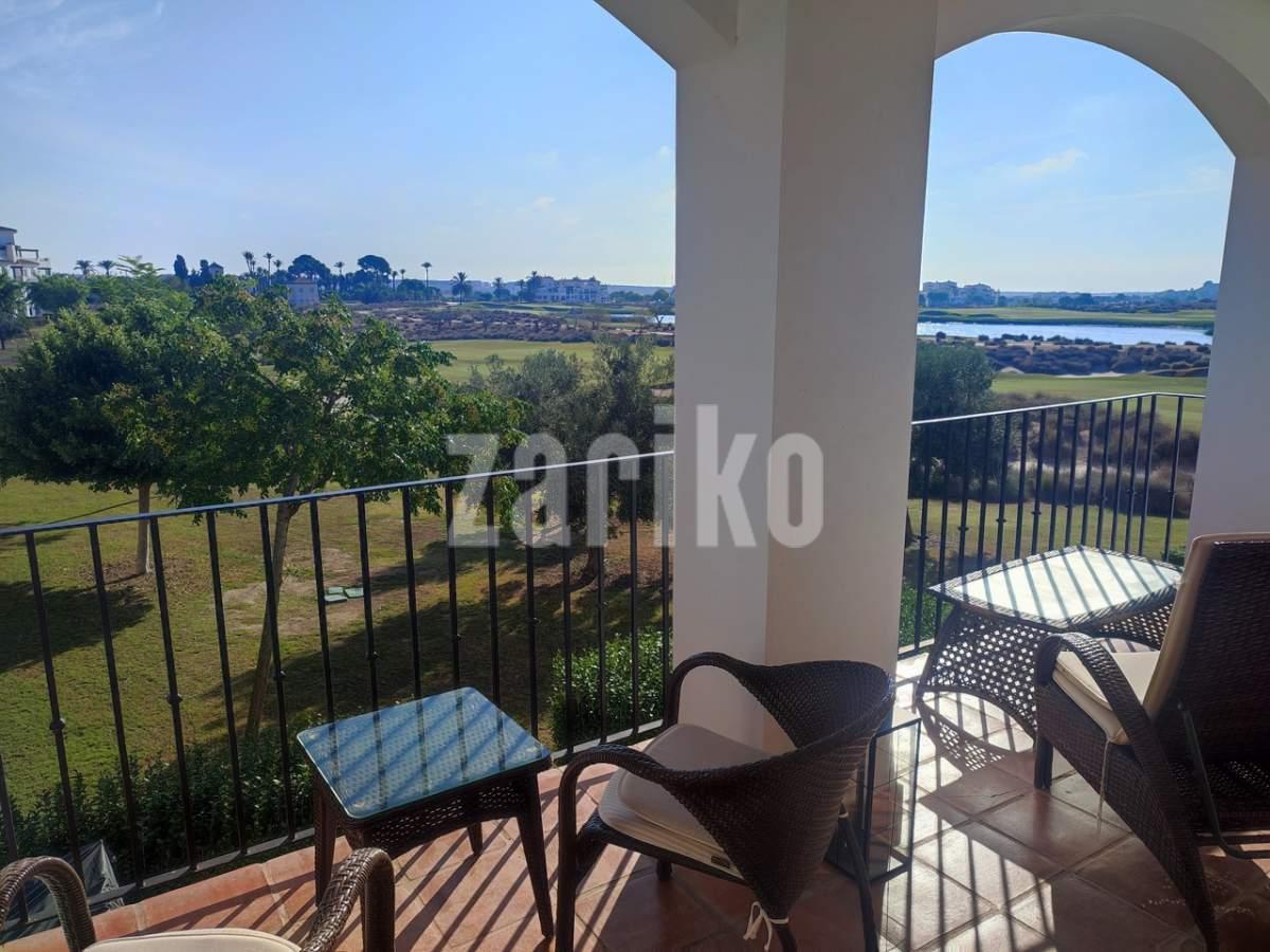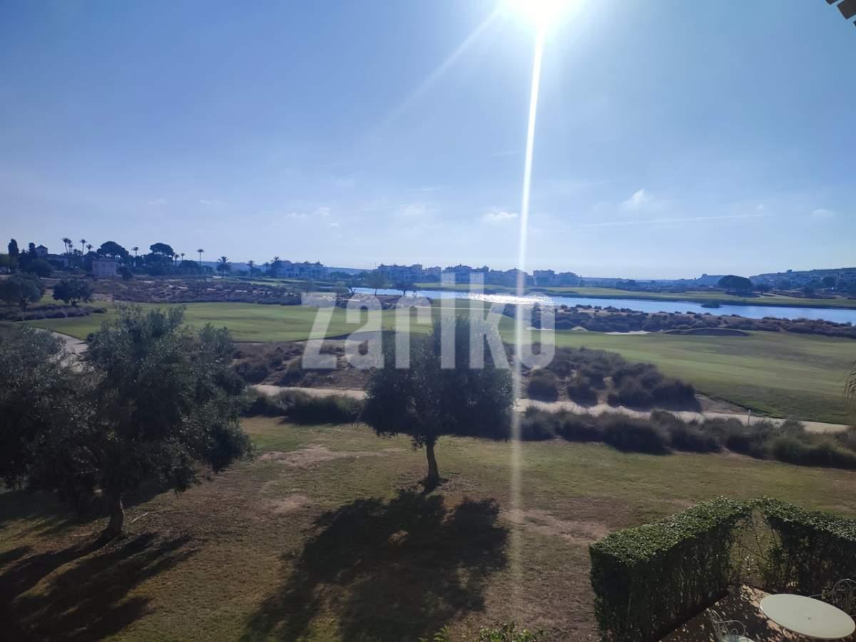 This corner apartment on the first floor has a sunny large terrace with sweeping views over the gardens, golf and lakes. It has a miodern walkin shower with a window. The apartment is being sold fully furnished minus personal possessions and also includes a private storeroom in the underground parking space.It would make an excellent holiday home or suitable for permanent living.The first thing that impresses you about Hacienda Riquelme Golf Resort is the wide-open spaces, the extensive gardens and the low-density construction, which create a relaxing environment to enjoy a very safe and peaceful life or holiday. The apartments are set out spaciously around the magnificent and challenging 18 hole golf course part of the Jack Nicklaus Golf Trail.All apartments have unlimited internet, air-conditioning for summer and heating for winter, private underground parking space and a communal lift.In the heart of the resort you will find the beautiful renovated Hacienda where you will find a supermarket, clubhouse, restaurant and bar. The inner court yard becomes the hive of entertainment in the Summer, whilst the large terrace set in the stunning gardens is open all year for “al fesco” dining and drinking.Facilities:Gated Community.24 hour security."El Cason" Bar, Restaurant, Clubhouse. "Sips" Coffee ShopSupermarket.Summer Entertainment.19 large community swimming pools.Communal gardens.Trees, 5 lakes.Wild flowers & local wildlife.Driving range & Golf ShopTennis courts.Paddle tennis courts.Football / Basketball court.Outside gym area.Children's play areas.Hacienda Riquelme is very well connected by the main motorways. Murcia Airport (20 mins)Mar Menor beaches (15 mins)Mediterranean beaches (20 mins)For those who like historical buildings, architecture or a desire to shop, the lovely cities of Murcia and Cartagena provide plenty of entertainment. Murcia (30 mins)Cartagena (45 mins) Murcia Airport (20 mins)Near to the bustling popular village of Sucina with shops, restaurants, bars, chemist, supermarket and lots more (5 minutes)For more information on the apartments available please contact us.