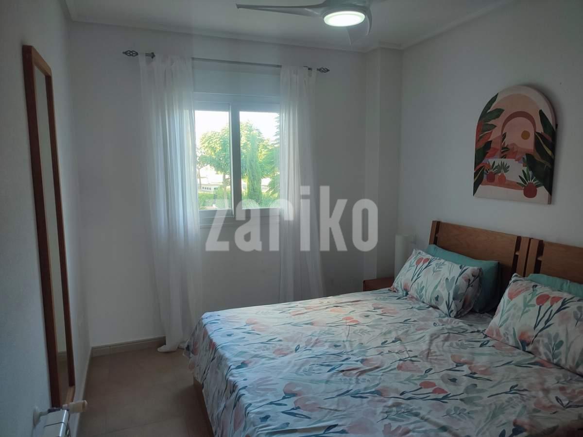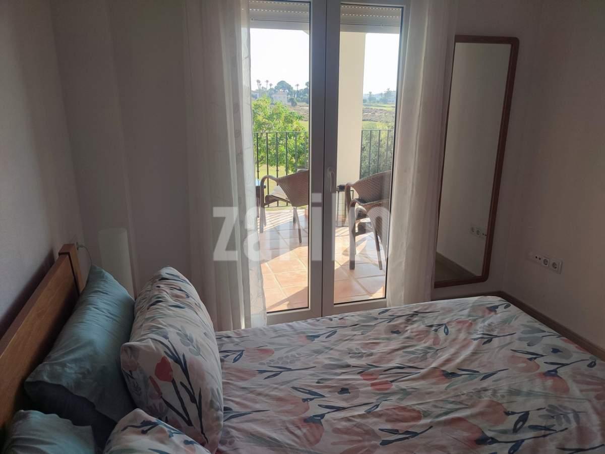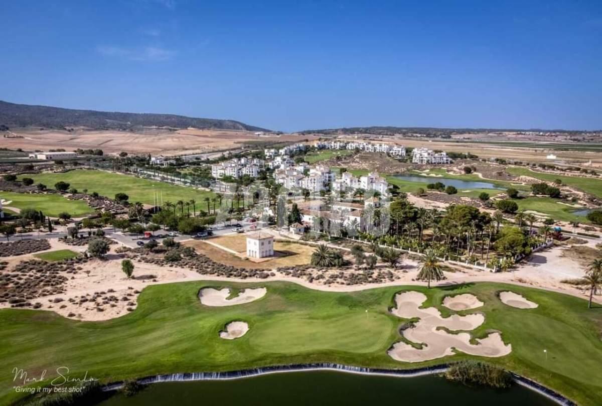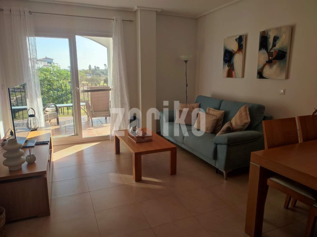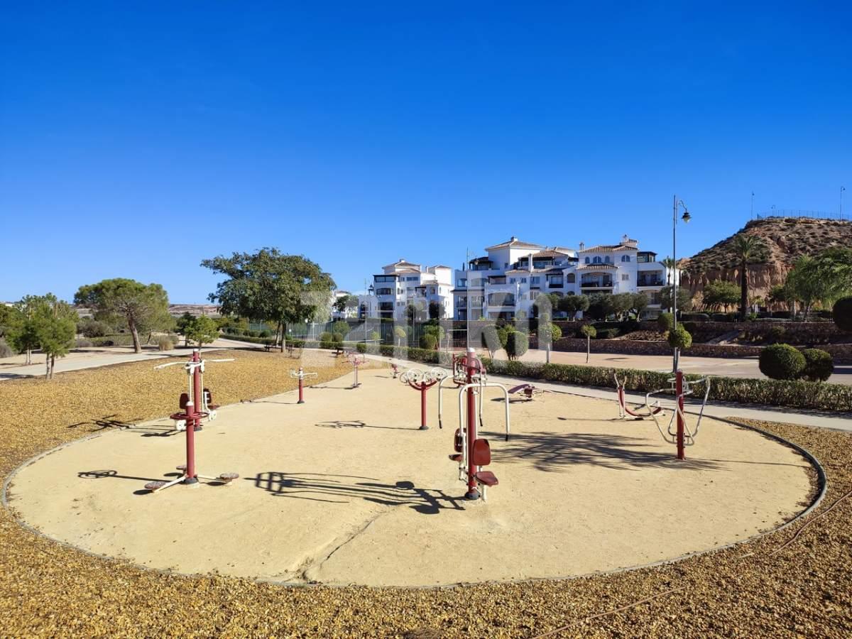 This corner apartment on the first floor has a sunny large terrace with sweeping views over the gardens, golf and lakes. It has a miodern walkin shower with a window. The apartment is being sold fully furnished minus personal possessions and also includes a private storeroom in the underground parking space.It would make an excellent holiday home or suitable for permanent living.The first thing that impresses you about Hacienda Riquelme Golf Resort is the wide-open spaces, the extensive gardens and the low-density construction, which create a relaxing environment to enjoy a very safe and peaceful life or holiday. The apartments are set out spaciously around the magnificent and challenging 18 hole golf course part of the Jack Nicklaus Golf Trail.All apartments have unlimited internet, air-conditioning for summer and heating for winter, private underground parking space and a communal lift.In the heart of the resort you will find the beautiful renovated Hacienda where you will find a supermarket, clubhouse, restaurant and bar. The inner court yard becomes the hive of entertainment in the Summer, whilst the large terrace set in the stunning gardens is open all year for “al fesco” dining and drinking.Facilities:Gated Community.24 hour security."El Cason" Bar, Restaurant, Clubhouse. "Sips" Coffee ShopSupermarket.Summer Entertainment.19 large community swimming pools.Communal gardens.Trees, 5 lakes.Wild flowers & local wildlife.Driving range & Golf ShopTennis courts.Paddle tennis courts.Football / Basketball court.Outside gym area.Children's play areas.Hacienda Riquelme is very well connected by the main motorways. Murcia Airport (20 mins)Mar Menor beaches (15 mins)Mediterranean beaches (20 mins)For those who like historical buildings, architecture or a desire to shop, the lovely cities of Murcia and Cartagena provide plenty of entertainment. Murcia (30 mins)Cartagena (45 mins) Murcia Airport (20 mins)Near to the bustling popular village of Sucina with shops, restaurants, bars, chemist, supermarket and lots more (5 minutes)For more information on the apartments available please contact us.