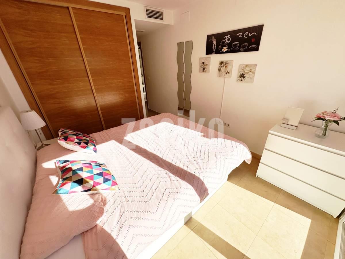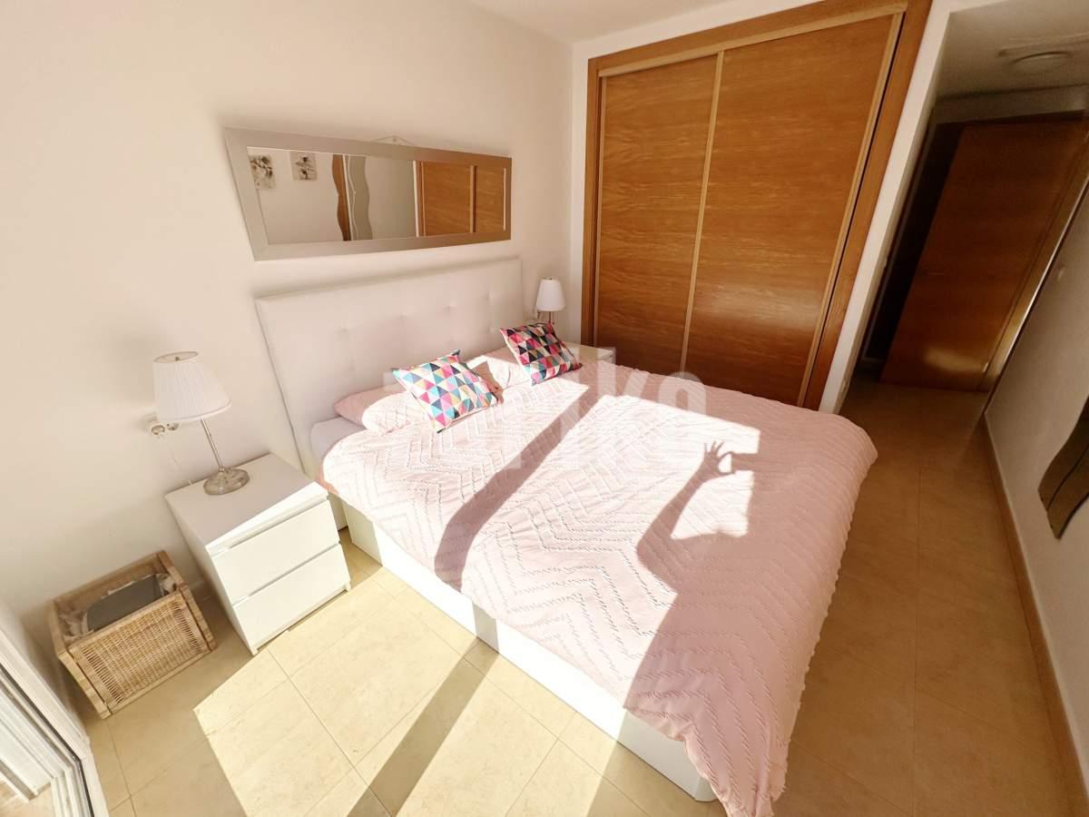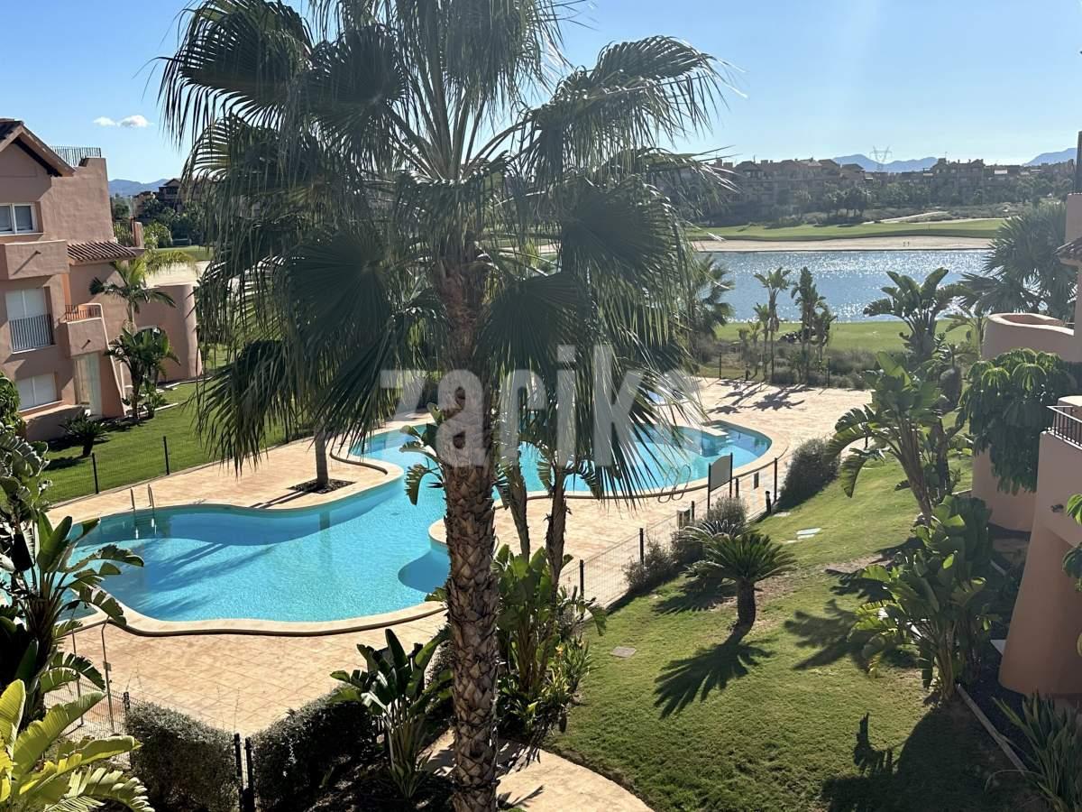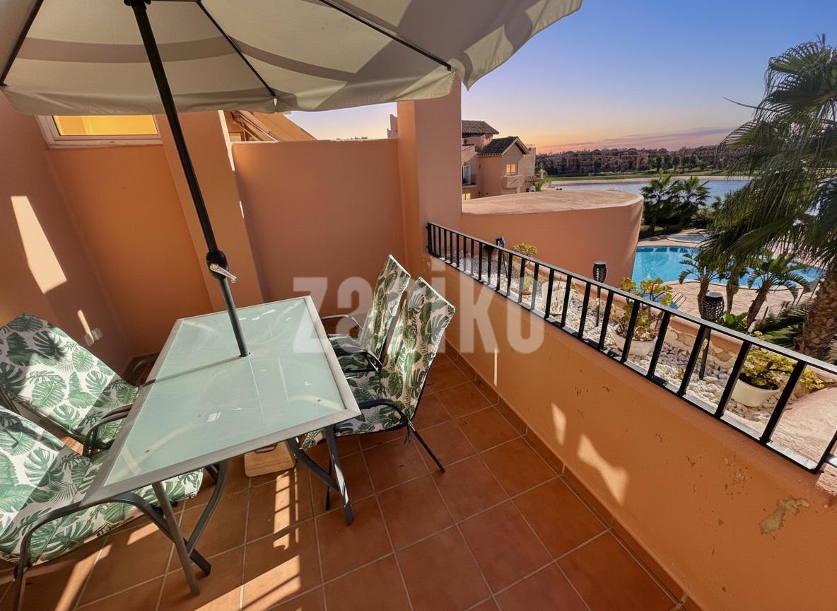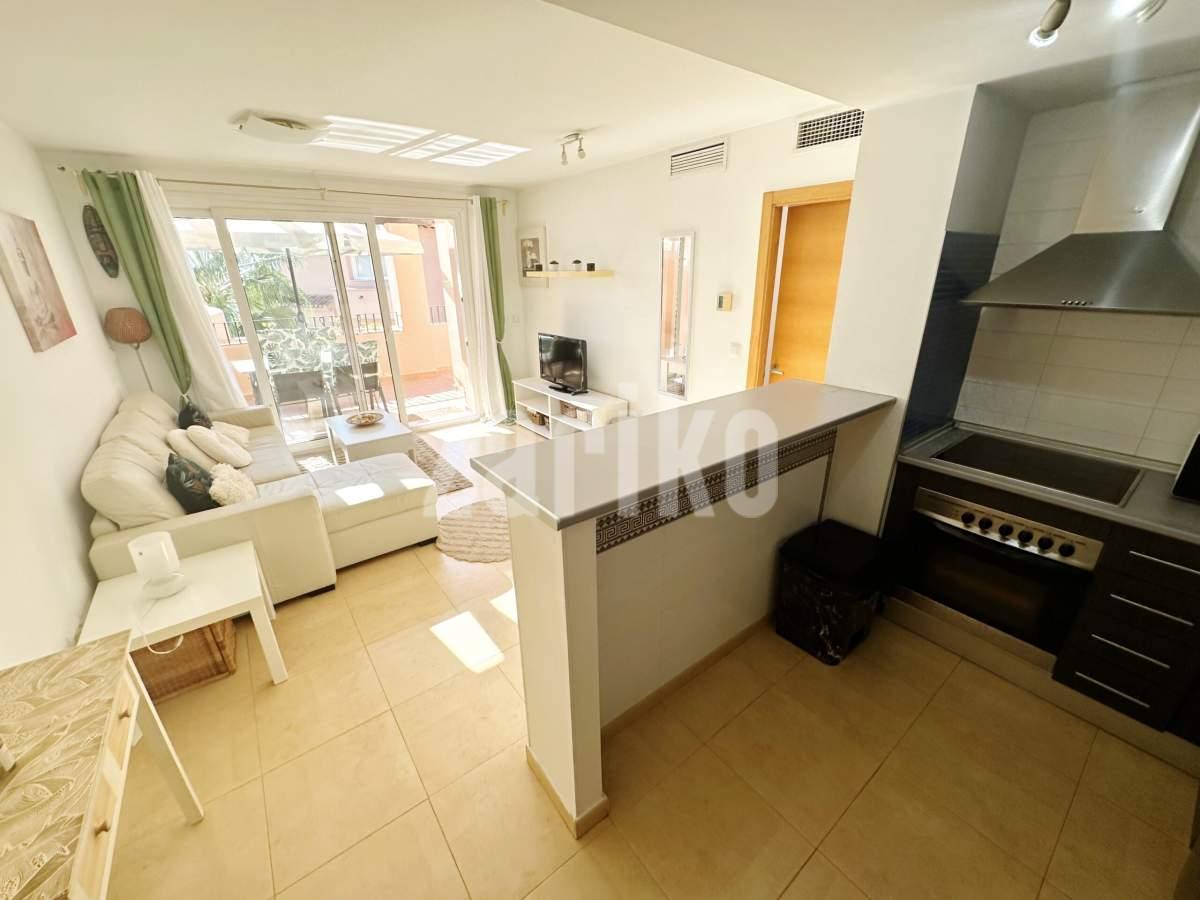 We are thrilled to offer this south facing one bedroom one bathroom apartment for sale on the beautiful Mar Menor Golf Resort. The apartment gets year round sun and enjoys wonderful views over the swimming pool and countryside, with some gorgeous sunsets. It is being sold furnished with integral hot and cold aircon and allocated underground parking with lift access to the property. The apartment has a spacious terrace with plenty of room for outdoor dining and sunbathing. On the resort you will find a supermarket, MMGR club with padel, gym, mini golf and restaurant, the clubhouse and 5 star Ona Hotel. Just outside the resort there are a plethora of bars and restaurants. The Mar Menor beach town of Los Alcazares is a short drive away, Murcia airport 20 minutes drive and Alicante approximately one hour.You enter into the bright and sunny apartment with open plan living. The kitchen is fully equipped with all mod cons and has a breakfast bar. The lounge are is light and airey with patio door access to the tiled terrace where you can enjoy the gorgeous views. There is a good sized bathroom, double bedroom with fitted wardrobes and patio door access to the terrace. There is a useful cupboard housing the water heater. This is a fabulous property with views to die for. Contact us to book a viewing appointment.