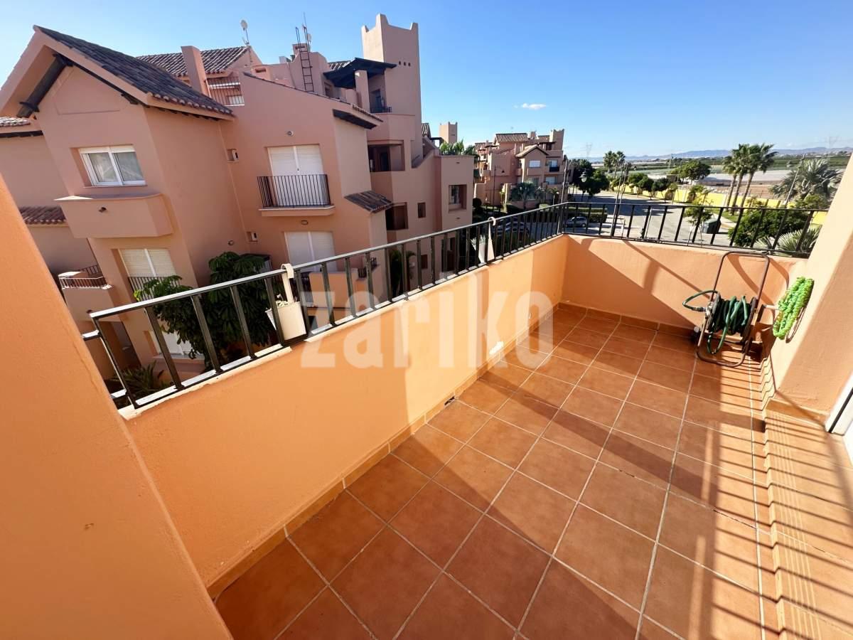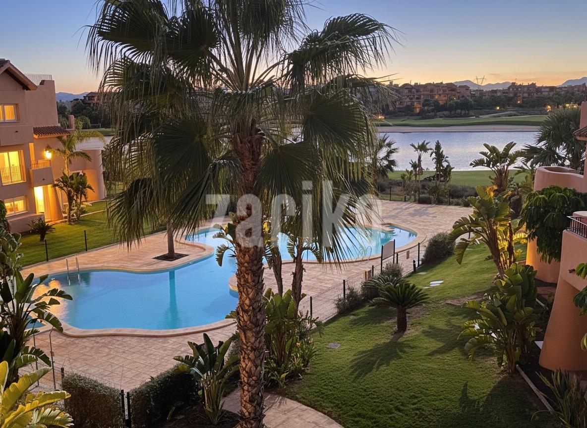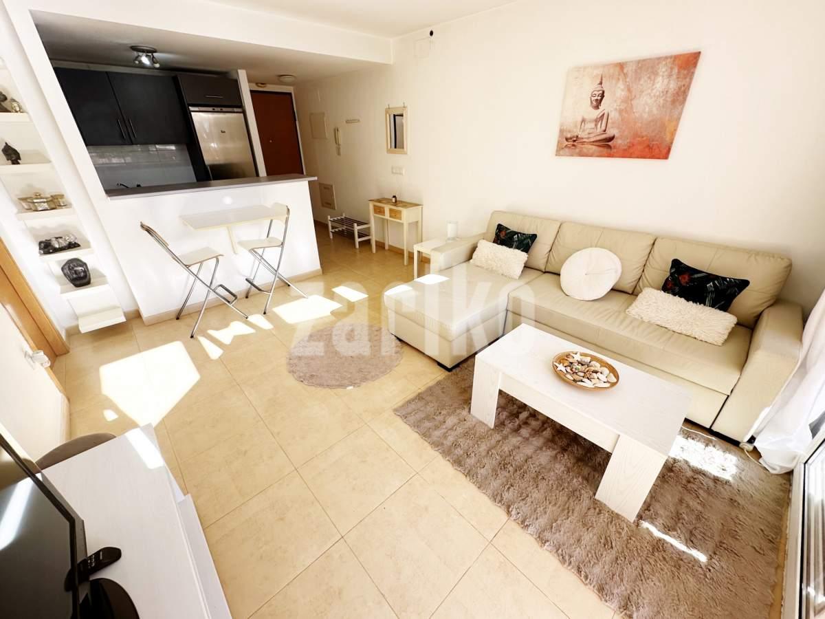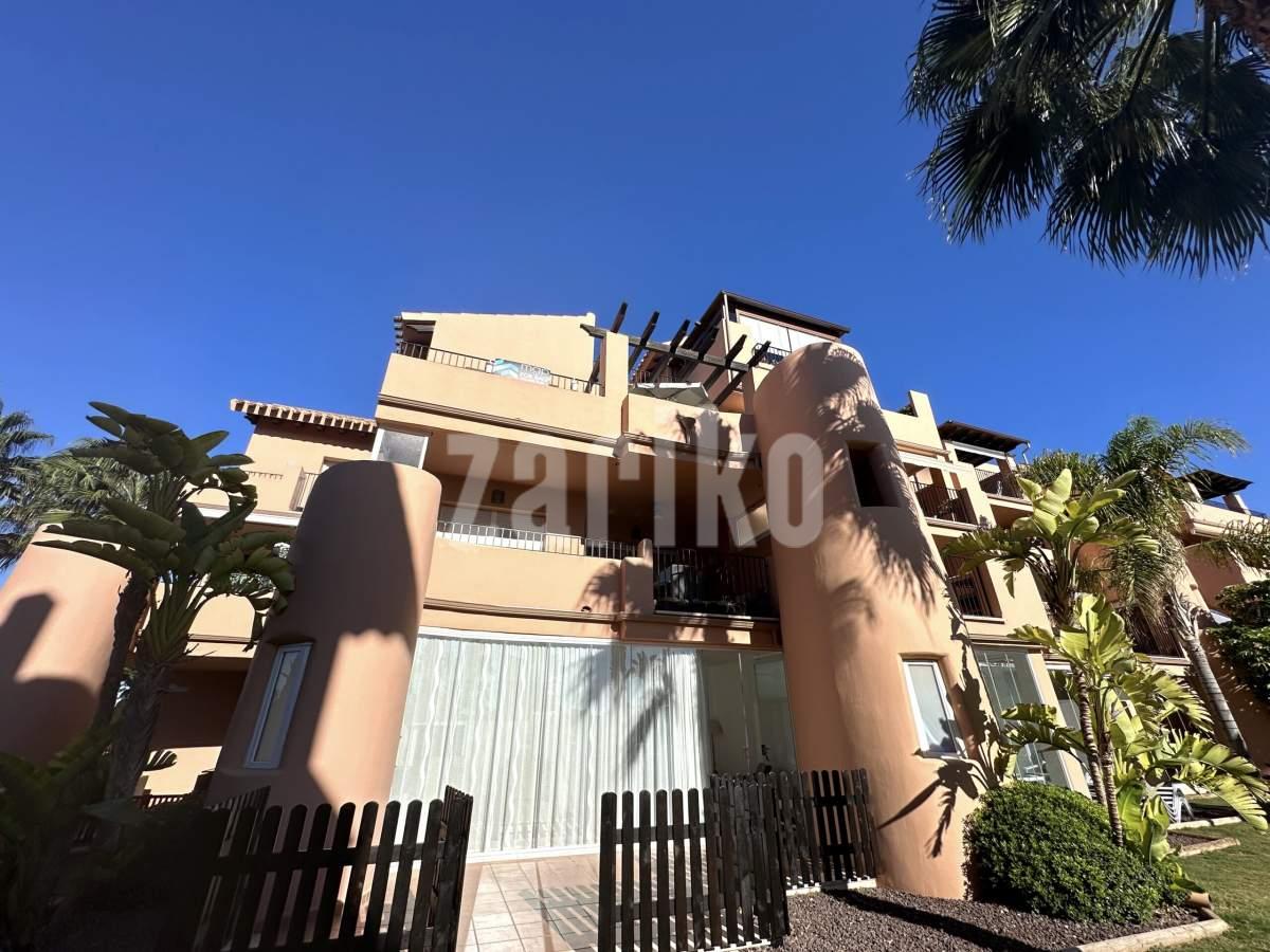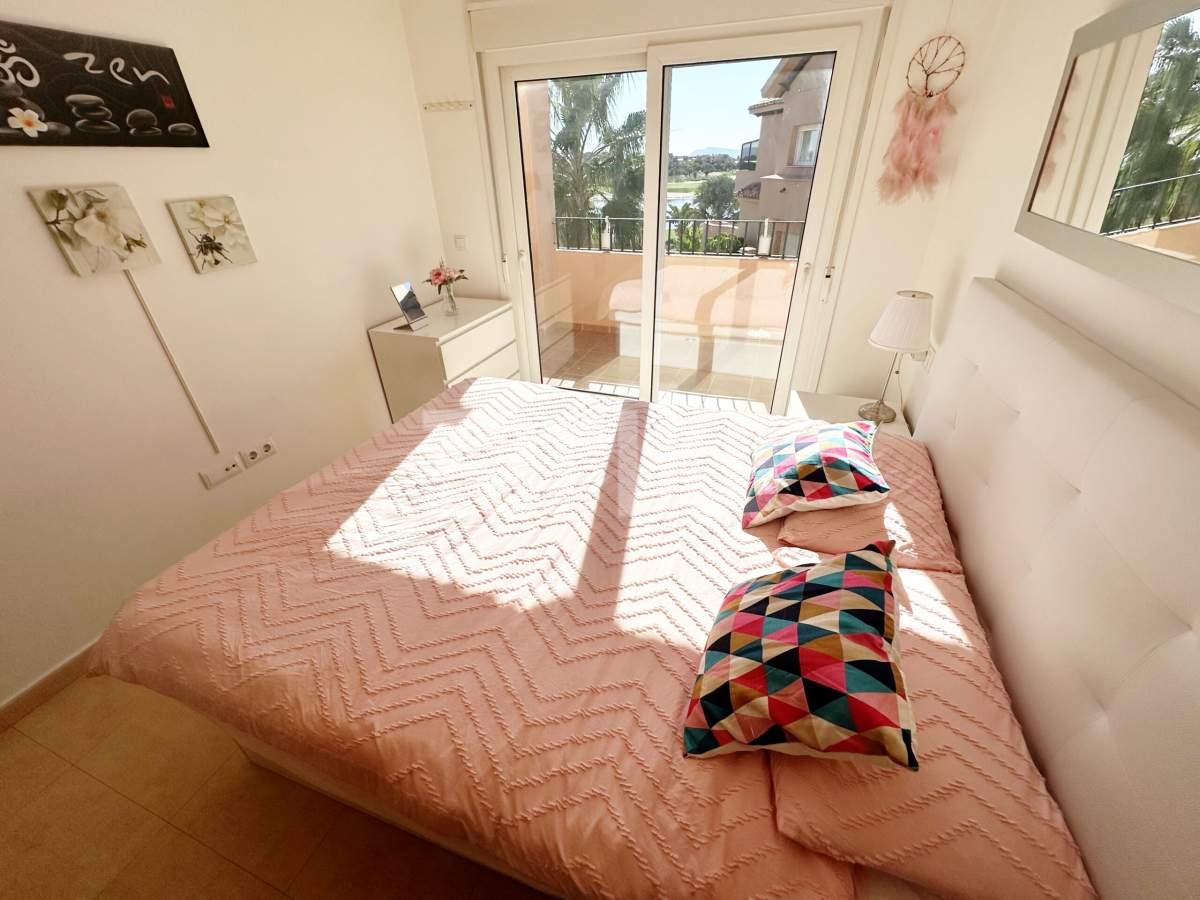 We are thrilled to offer this south facing one bedroom one bathroom apartment for sale on the beautiful Mar Menor Golf Resort. The apartment gets year round sun and enjoys wonderful views over the swimming pool and countryside, with some gorgeous sunsets. It is being sold furnished with integral hot and cold aircon and allocated underground parking with lift access to the property. The apartment has a spacious terrace with plenty of room for outdoor dining and sunbathing. On the resort you will find a supermarket, MMGR club with padel, gym, mini golf and restaurant, the clubhouse and 5 star Ona Hotel. Just outside the resort there are a plethora of bars and restaurants. The Mar Menor beach town of Los Alcazares is a short drive away, Murcia airport 20 minutes drive and Alicante approximately one hour.You enter into the bright and sunny apartment with open plan living. The kitchen is fully equipped with all mod cons and has a breakfast bar. The lounge are is light and airey with patio door access to the tiled terrace where you can enjoy the gorgeous views. There is a good sized bathroom, double bedroom with fitted wardrobes and patio door access to the terrace. There is a useful cupboard housing the water heater. This is a fabulous property with views to die for. Contact us to book a viewing appointment.