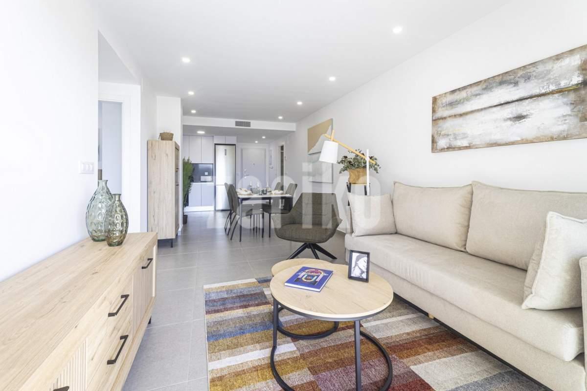 BEAUTIFUL SEA VIEW APARTMENTS IN LA MANGA This urbanization is located in the largest expansion area of La Manga. In this new urbanization the homes have been designed to take advantage of every corner of the house, as well as the care in choosing the materials and their design. Apartments with armored entrance door and doors lacquered in white with stainless steel fittings. White, monobloc blinds and double glazing with air chamber. In the master bedroom built-in wardrobe with sliding doors, with a separating shelf in the mezzanine, a bar and a chest of three drawers. Kitchen with high and low furniture, in white, gola-type handle, single sink with drainer, ceramic hob, electric oven and extractor hood. Pre-installation of air conditioning (cold and heat) through conduits with provision of zoning of rooms. La Manga del Mar Menor is a natural strip of land surrounded by two seas, the Mar Menor and the Mediterranean Sea. To this rarity you can add the multiple leisure and free time options, restaurants, supermarkets, medical centers, pharmacies, nautical sports centers, golf courses. La Manga is located on the north coast of the Costa Calida and is a popular holiday destination for tourists. The narrow land strip separating the warm lagoon and the colder sea has a unique microclimate. It’s one of the most exotic areas in Spain. Corvera airport is about 1 hour drive away and Alicante airport about 2 hours away.