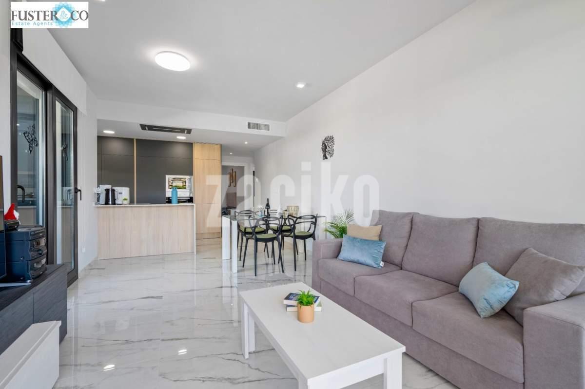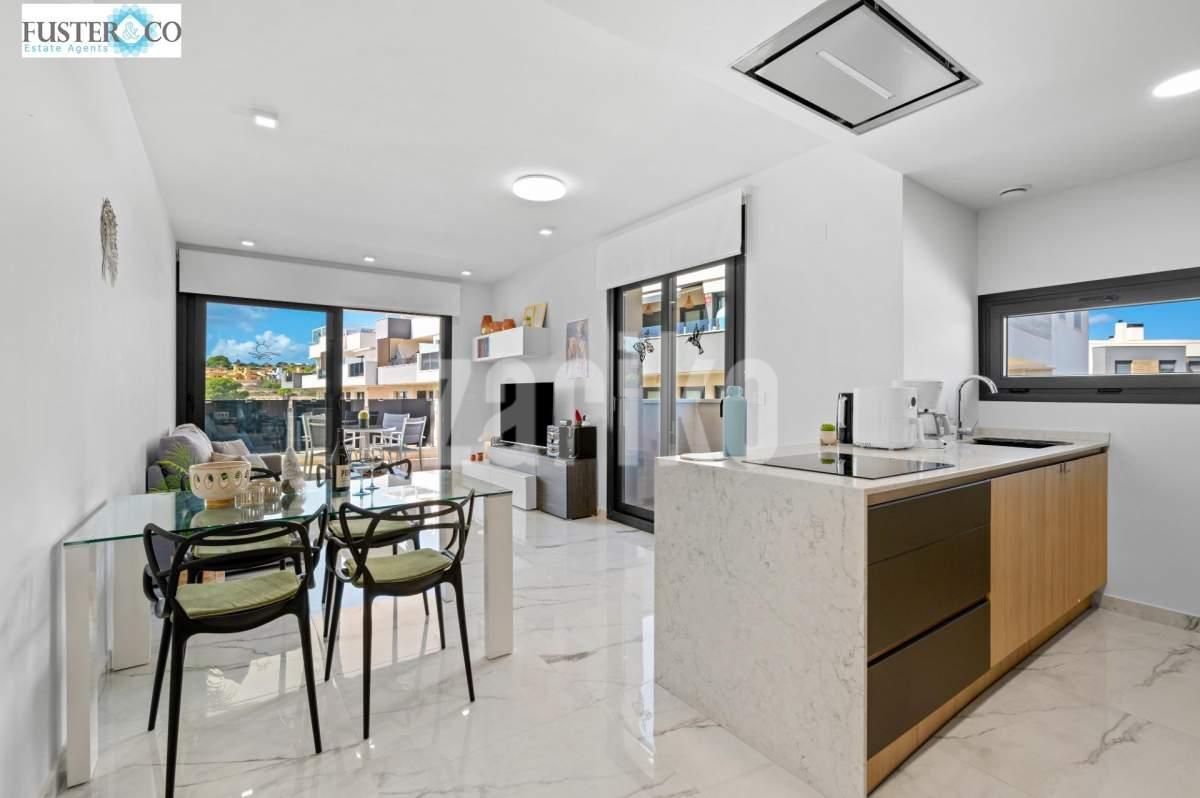 Modern home in Orihuela Costa – almost new and ready to move in We present this beautiful property, only one year old, located in a modern community with all the amenities. The home offers 2 bedrooms (one with en-suite bathroom), 2 bathrooms, a bright living room with access to the balcony overlooking the pool, and a fully equipped kitchen. It is sold furnished and includes ducted air conditioning for year-round comfort. Additionally, there are two storage rooms (one inside the property and another in the garage), as well as a private parking space. The community features a gym, sauna, jacuzzi, pétanque court, and children’s playground, designed to enjoy the Mediterranean lifestyle to the fullest. Perfect as a holiday home or for permanent living. Orihuela Costa – close to all services, beaches, golf courses, and leisure areas. Legal expenses and VAT not included in the price.