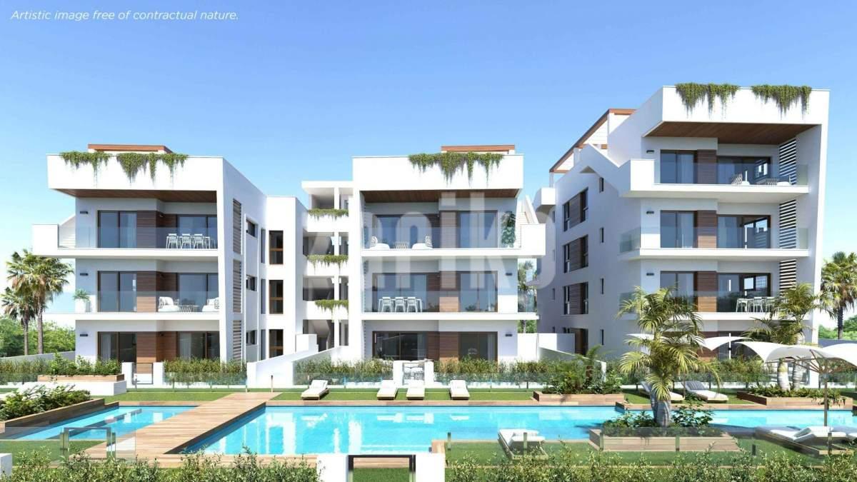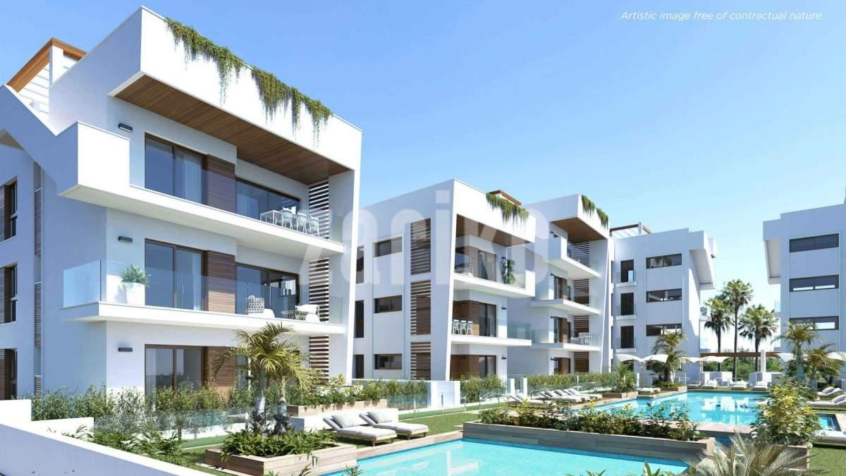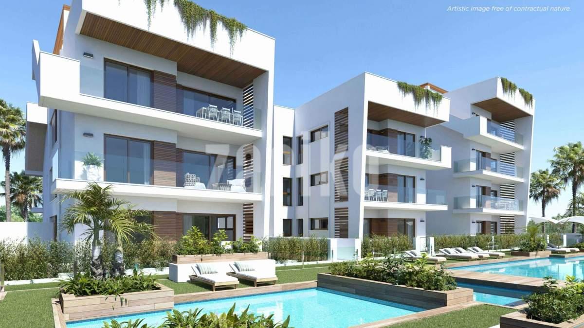 New Mediterranean-style residences in Los Alcázares, Costa Cálida Modern coastal living in a prime location Discover this exclusive new development in Los Alcázares, a charming coastal town in the Region of Murcia known for its relaxed Mediterranean atmosphere, golden beaches and year-round sunshine. The complex combines modern design, comfort and style to create a unique residential experience in one of the most sought-after coastal areas in southern Spain. Los Alcázares boasts 7 kilometres of coastline along the Mar Menor, a natural saltwater lagoon famous for its calm, therapeutic waters and mild climate, with an average temperature of 18 °C throughout the year. The town offers a wide range of amenities, including restaurants, supermarkets, shops, medical centres and leisure facilities, all within walking distance. Elegant homes with private outdoor spaces Choose from 2 or 3-bedroom apartments, all with 2 bathrooms (one en suite) and spacious outdoor areas. The ground floor homes have private gardens, the middle floor homes offer spacious terraces, and the top floor penthouses include private solariums, perfect for enjoying the sun, dining al fresco, or simply relaxing in your own peaceful retreat. Each property is designed with modern finishes and high-quality materials, ensuring comfort and energy efficiency. All homes include a parking space and some units also have a storage room, offering practicality and convenience. Exceptional community and services This gated community offers beautiful gardens, a large communal swimming pool and plenty of green areas to relax in. The residential design encourages outdoor living, blending in perfectly with the natural surroundings and creating a peaceful and secure environment. Located just 900 metres from Los Narejos beach and only a 10-minute walk from the town centre, residents can enjoy the best of coastal living with all amenities close by. Murcia Regional International Airport is only 22 km (approximately 30 minutes) away and the historic city of Cartagena is only a 15-minute drive away. Several golf courses, such as Roda Golf and La Serena Golf, are less than 5 km away, making it the ideal destination for golf lovers. A perfect balance between relaxation and activity Los Alcázares is not only a paradise for relaxation, but also a hub for outdoor sports and culture. The calm waters of the Mar Menor are ideal for windsurfing, kitesurfing and sailing, while the surrounding area offers picturesque walking and cycling trails. Your ideal home in the sun awaits Whether you are looking for a permanent residence, a holiday retreat or a smart investment opportunity, this new residential complex in Los Alcázares offers the perfect combination of Mediterranean charm, comfort and lifestyle. Contact us today to arrange a viewing and discover your new home on the Costa Cálida.
