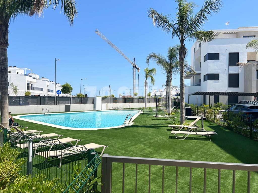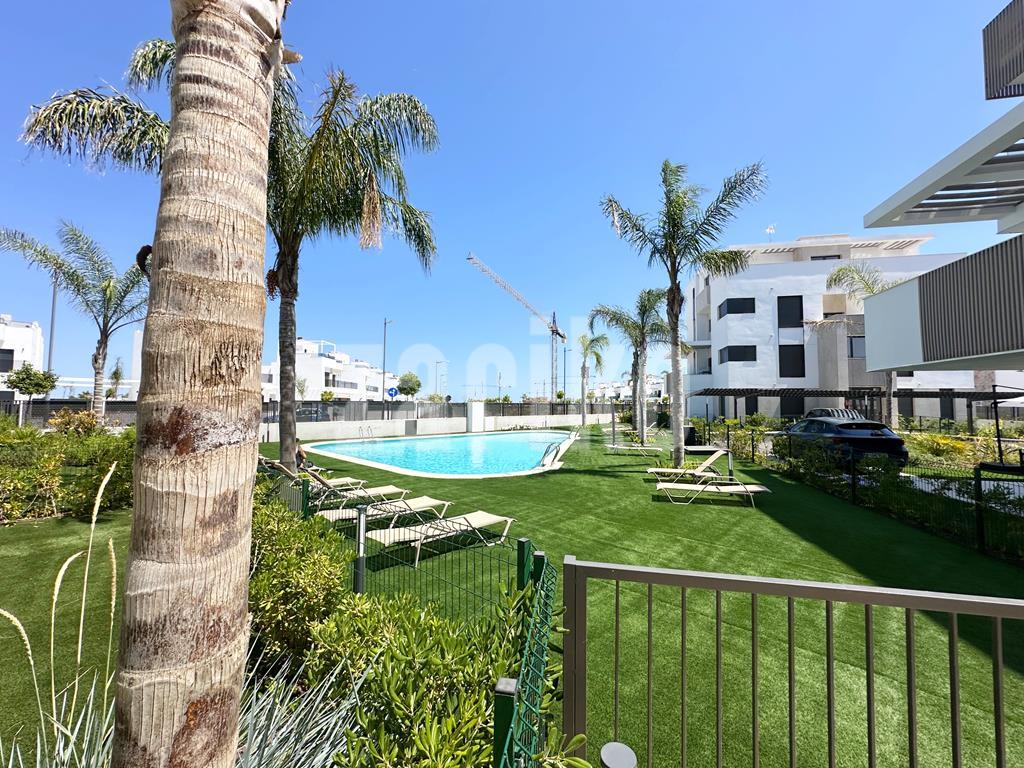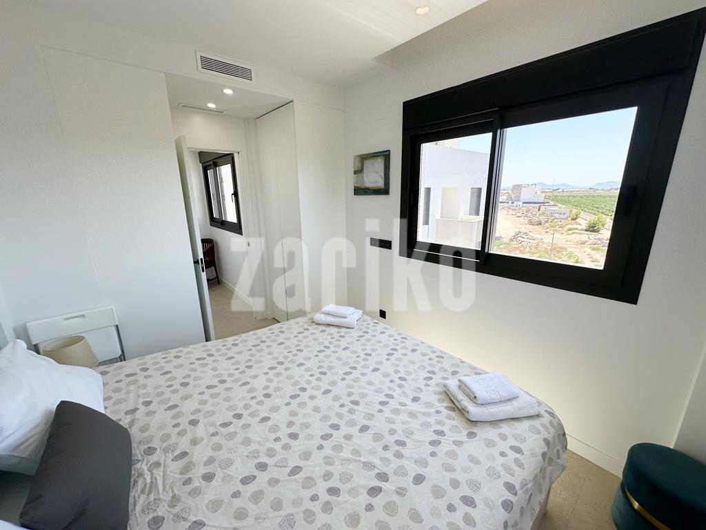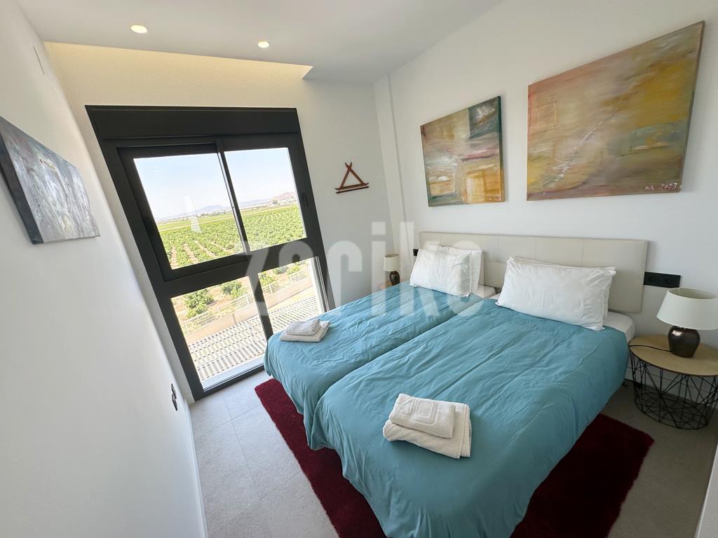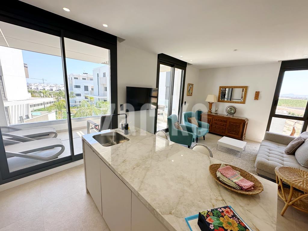 KEYREADY...We are excited to offer this beautiful resale two bedroom two bathroom second floor apartment located on the luxurious Santa Rosalia Lake and Life Resort which boasts a large crystal Lagoon, beach club, stylish clubhouse, adventure golf and sports facilities just 5 km to the beaches of Los Alcazares.No need to wait for your property to be built as this is a resale and comes furnished ( excluding the sideboard and patio furniture) with vented AC. On entering the property the lounge kitchen diner is to your left and comes with an island and patio doors to the south facing sunny terrace which has great views over the orange groves. There are two double bedrooms with fitted wardrobes. One bedroom has an ensuite and there is a further bathroom which could easily be made into an ensuite by adding a door in the hallway. There is a useful cupboard in the hall which houses the boiler and the washing machine. This apartment comes with covered parking and a storeroom and there is a community pool which is heated so can use all year round. The owner has all the permits in place for rental.Contact us to arrange to view this beautiful apartment, we would love to hear from you
