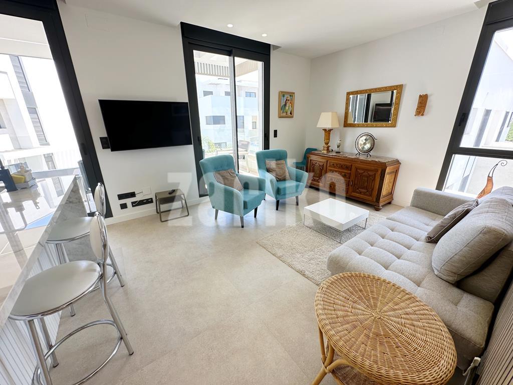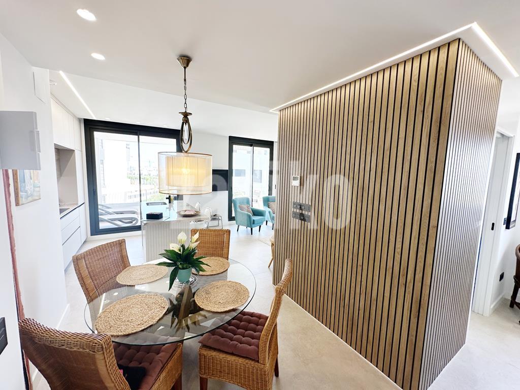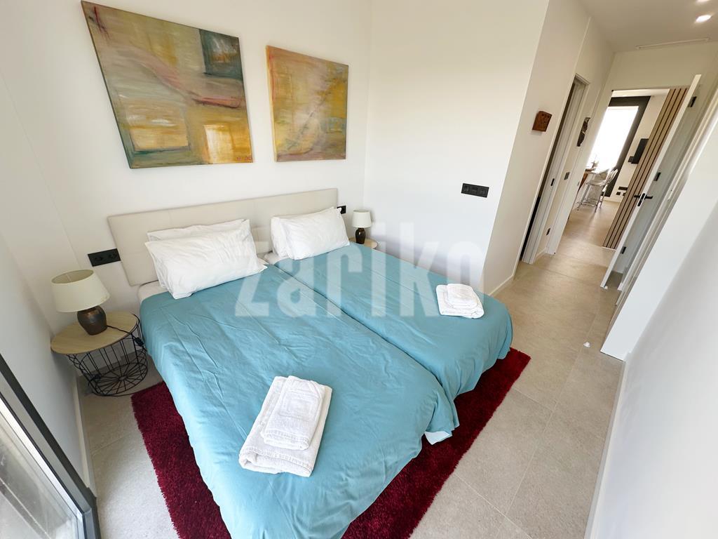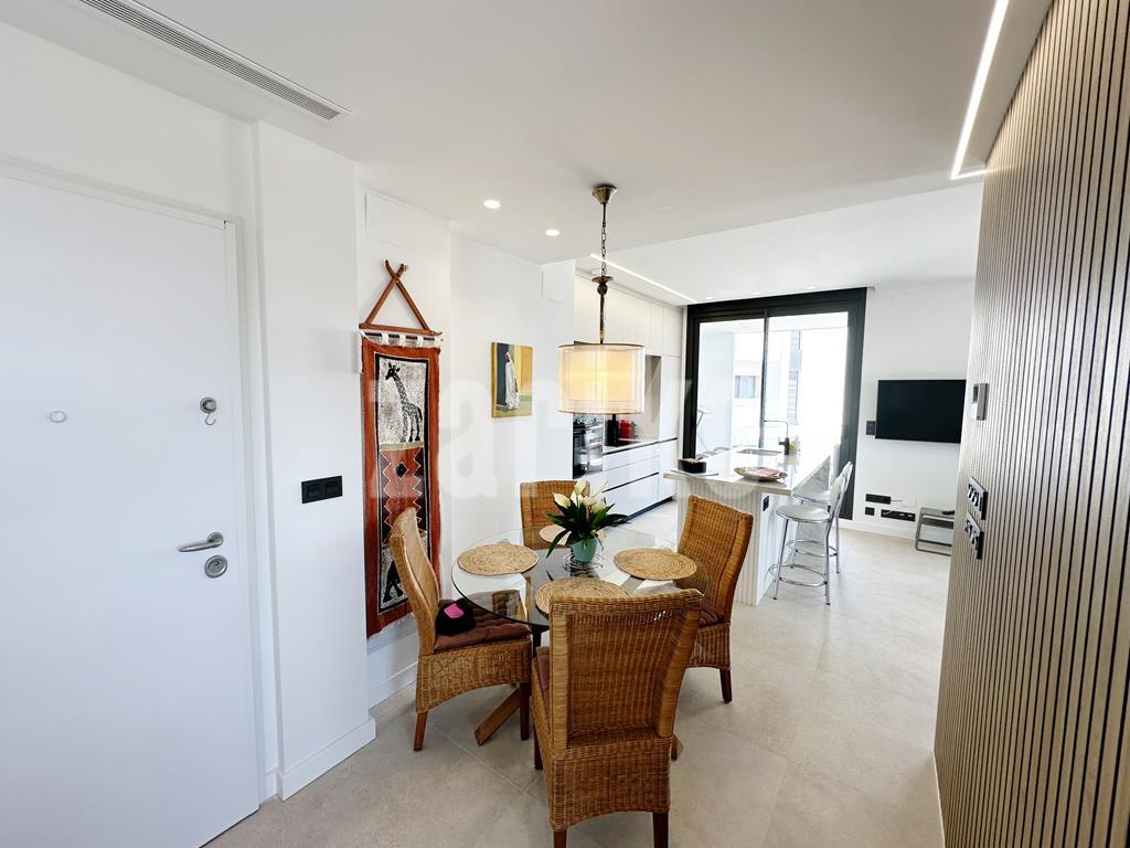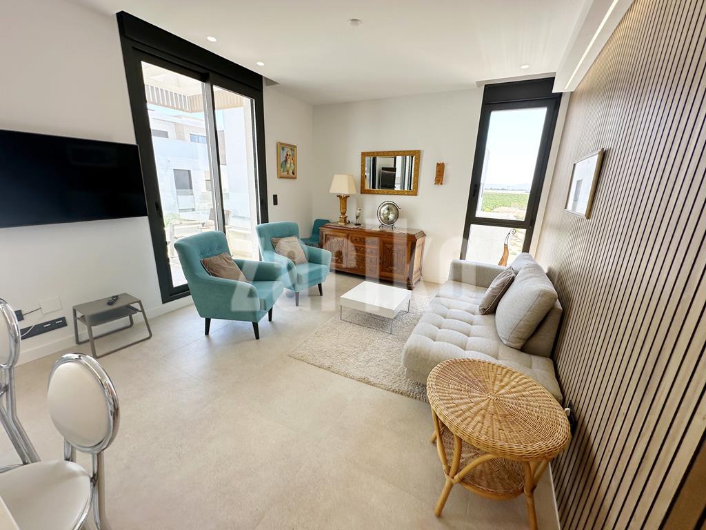 KEYREADY...We are excited to offer this beautiful resale two bedroom two bathroom second floor apartment located on the luxurious Santa Rosalia Lake and Life Resort which boasts a large crystal Lagoon, beach club, stylish clubhouse, adventure golf and sports facilities just 5 km to the beaches of Los Alcazares.No need to wait for your property to be built as this is a resale and comes furnished ( excluding the sideboard and patio furniture) with vented AC. On entering the property the lounge kitchen diner is to your left and comes with an island and patio doors to the south facing sunny terrace which has great views over the orange groves. There are two double bedrooms with fitted wardrobes. One bedroom has an ensuite and there is a further bathroom which could easily be made into an ensuite by adding a door in the hallway. There is a useful cupboard in the hall which houses the boiler and the washing machine. This apartment comes with covered parking and a storeroom and there is a community pool which is heated so can use all year round. The owner has all the permits in place for rental.Contact us to arrange to view this beautiful apartment, we would love to hear from you