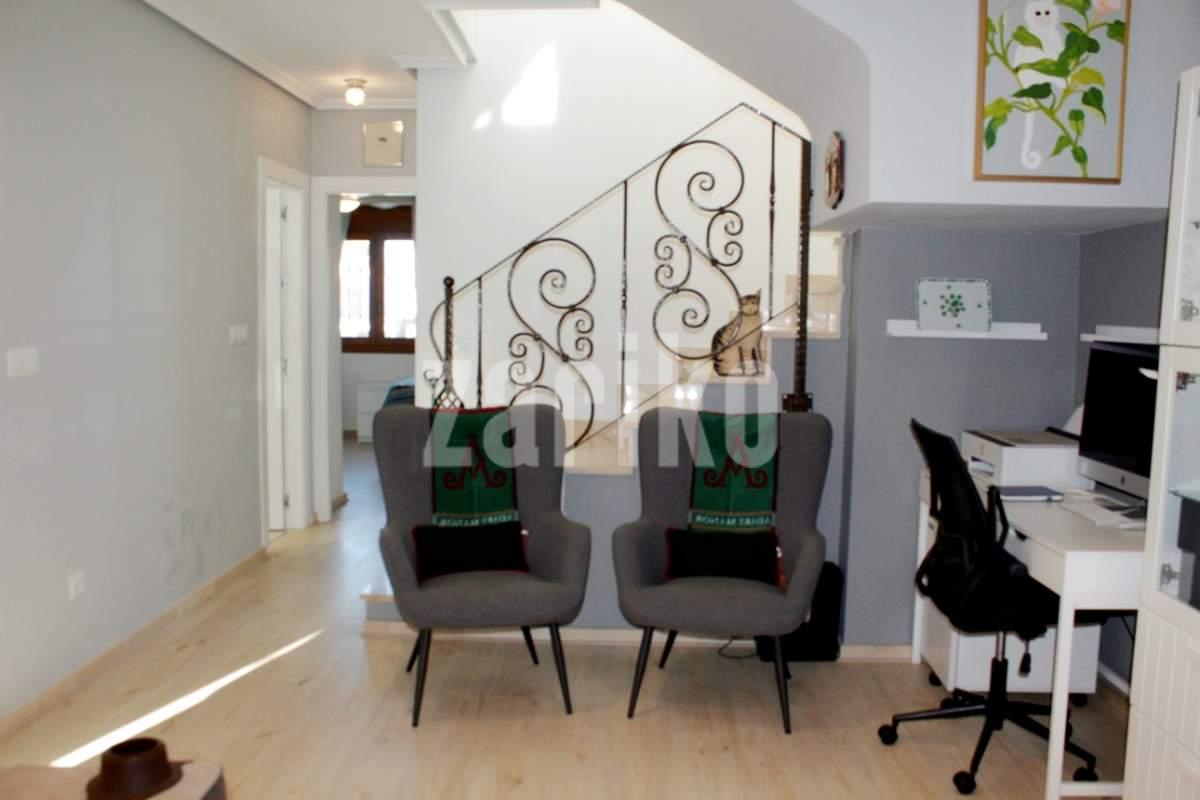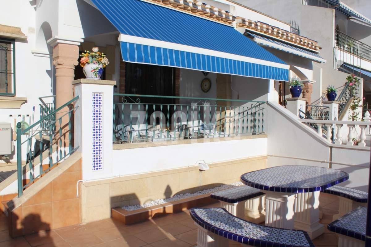 We are delighted to offer for sale this superb 100m2 south-west facing Bungalow Buhardilla in the very sought after urbanisation of VILLAMARTIN Pau-8. The property is situated in a gated urbanisation and offers 3 bedrooms, 2 bathrooms with 68m4 front and rear gardens. Entering through the 8m2 sunny terrace the property distributes as; spacious open plan lounge, dining area and fully equipped kitchen, complete with an adjacent utility/storage area. On this level you have two double-sized bedrooms with fitted wardrobes and a bathroom with shower, one of the bedrooms has patio doors leading out to the rear 14m2 garden. To the first floor you find a further double bedroom with ensuite bathroom with shower, a large storage room and patio doors leading out to the sunny 27m2 solarium with lovely open green area and pool views. This lovely property is sold unfurnished and has air-conditioning and internet. The wonderful gated community is very well maintained and gives peace of mind. It has 1 large communal swimming pool, nice communal gardens, parking in front of the house and is only 10 min walking distance to the famous Villamartin Plaza, Golf Course and supermarket, within 5 min drive you find the largest shopping centre in the Alicante region, Zenia Boulevard with over 150 shops, bars and restaurants. The white sandy beaches of Orihuela Costa are only 3 km away and 45 mins drive from both Alicante and Murcia Corvera Airports. This lovely property will not be on the market long, so early viewing is advised to avoid disappointment. MUST BE SEEN !!