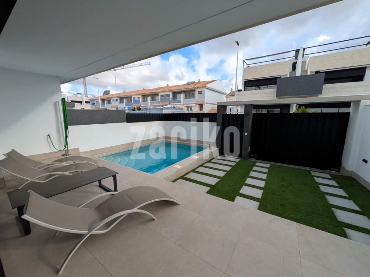 Discover this magnificent luxury apartment PURA VIDA, located on the ground floor, never before occupied and with an unbeatable location. It consists of 3 spacious and bright bedrooms, as well as two elegant bathrooms (one en suite) that stand out for their modern and functional design. The open-plan kitchen is fully equipped with high-end appliances, offering an ideal environment to enjoy everyday life. This exclusive property includes a large private east-facing terrace where you can relax by your private pool. It also has ducted air conditioning, ensuring comfort all year round.The property is surrounded by open green spaces and has all essential amenities such as supermarkets, restaurants, and schools just a few minutes' walk away. Just 2 km away you will find beautiful Mediterranean beaches, perfect for those seeking quality of life near the sea without sacrificing the charm of the town and its amenities.Additionally, it is easily accessible from Alicante International Airport, located just 45 minutes away, making it an excellent vacation option or permanent residence.