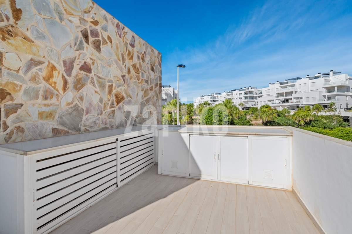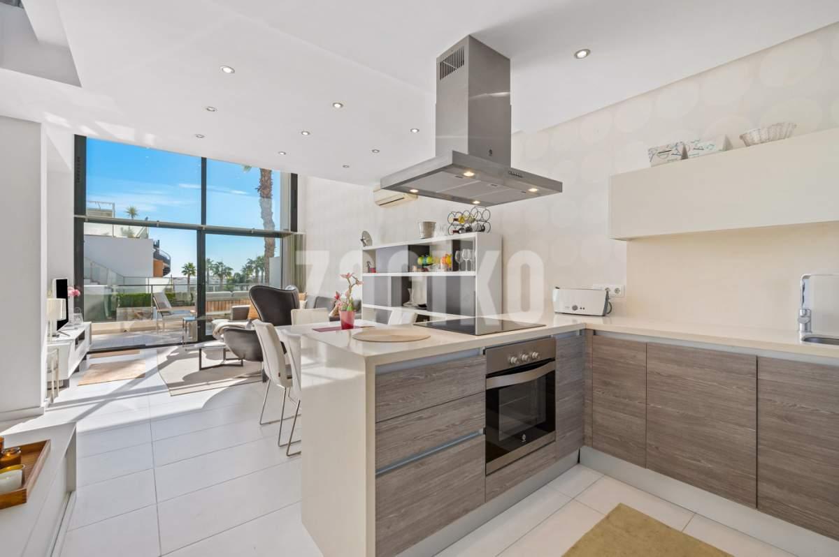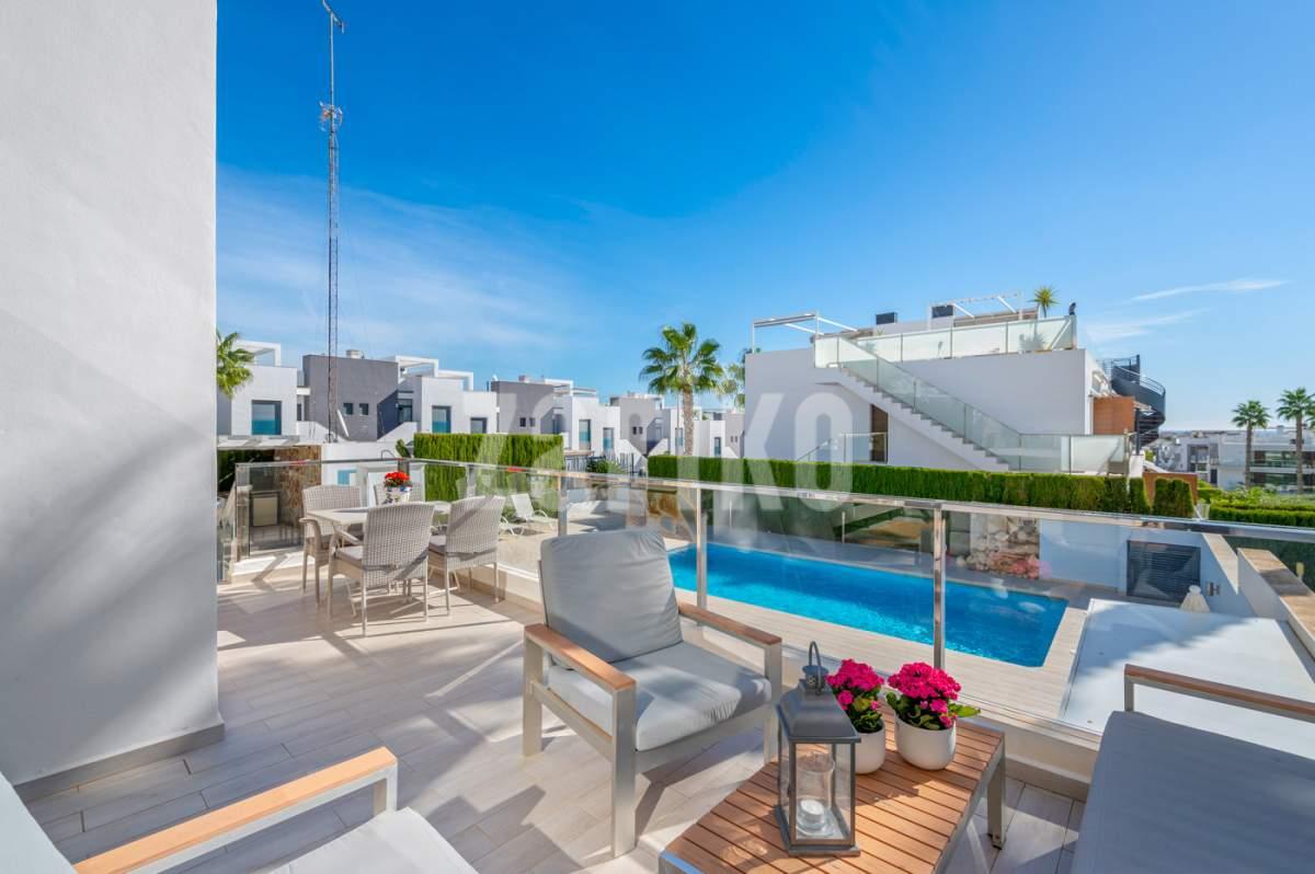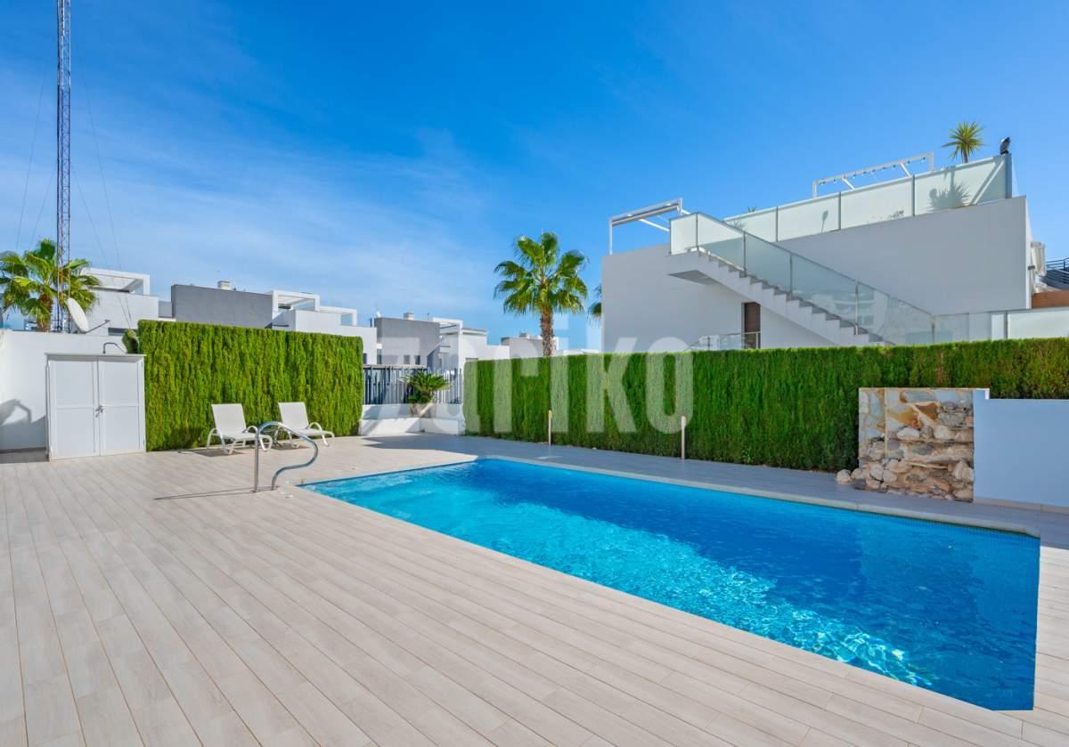 Welcome to this beautiful and modern corner townhouse that combines style, comfort and functionality in the best way. Here you will get a home that stands out - both with its well-thought-out floor plan and its unique plot with lots of privacy.The homeThe house offers 3 good bedrooms and 2 modern bathrooms, where everything is kept in bright and inviting materials. The home appears extremely well-maintained and ready to move in, so you can move straight in and start enjoying life under the sun. Under the house you will find a full basement that has not yet been utilized - perfect as a future fitness room, wine cellar, home theater or just extra storage space.The outdoor area - pure luxuryOutside, a fantastic private outdoor area awaits, designed for relaxation and socializing. The private swimming pool can be heated and offers a built-in swim trainer - ideal for exercise all year round. In addition, there is a seating area with air jets (semi-jacuzzi), where you can relax and enjoy the bubbles after a swim. There is also an outdoor shower so you can cool off if you don&039;t prefer to jump in the pool.The plot has a lovely garden area, and the large pergola forms the frame for a delicious outdoor kitchen with both a sink and a refrigerator - perfect for summer evenings with family and friends. Extra storage cabinets in the garden provide practical storage for cushions and equipment.Comfort and convenienceThe property includes two parking spaces in the underground parking garage and a storage room of approx. 6.6 m². Here you will find everything you need - both for everyday life and holiday life.LocationThe home is located in a quiet and attractive area close to all amenities - supermarkets, cafes, restaurants and shopping. The southeast-facing location ensures sun most of the day, and the area is known for its pleasant climate and relaxed atmosphere.In short:A modern corner townhouse with heated private pool, fantastic outdoor area and endless potential in the basement – perfect for those who dream of comfort, quality and a southern lifestyle with a little extra luxury.