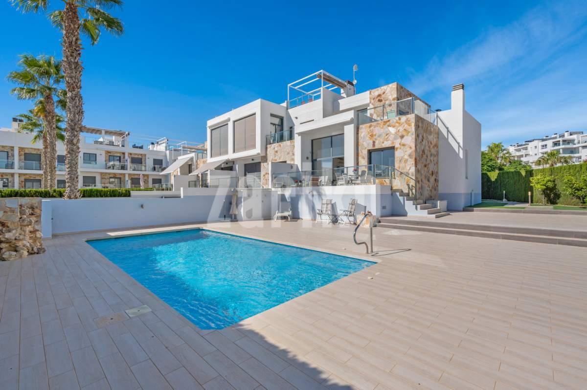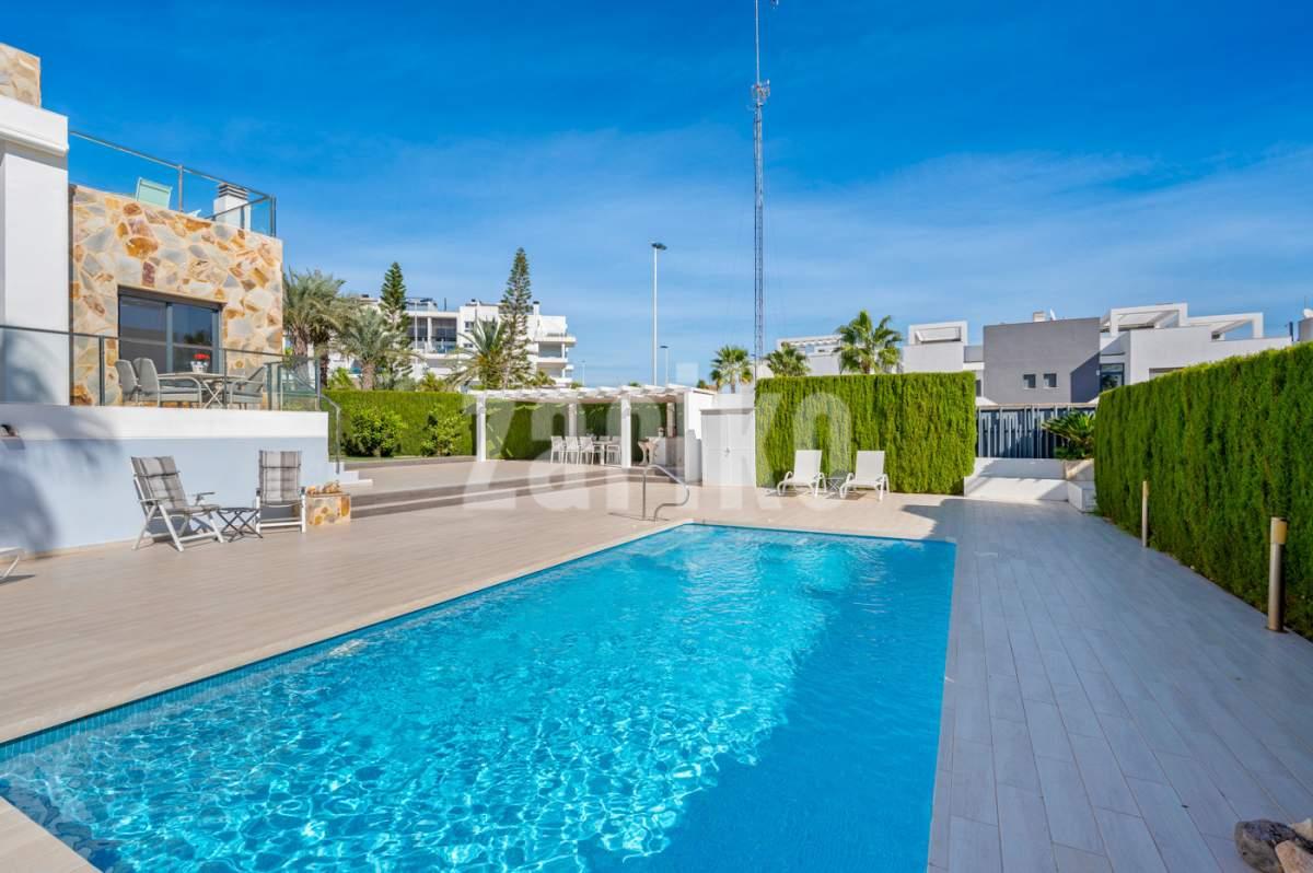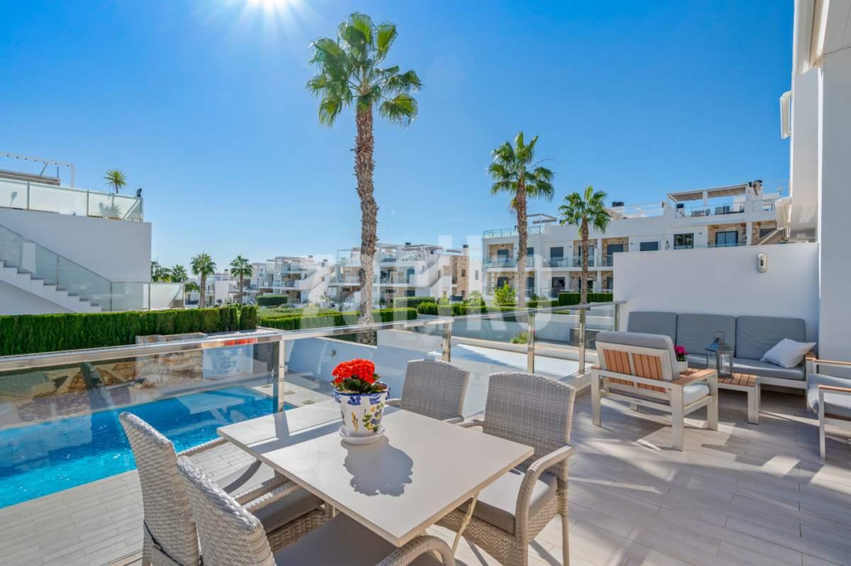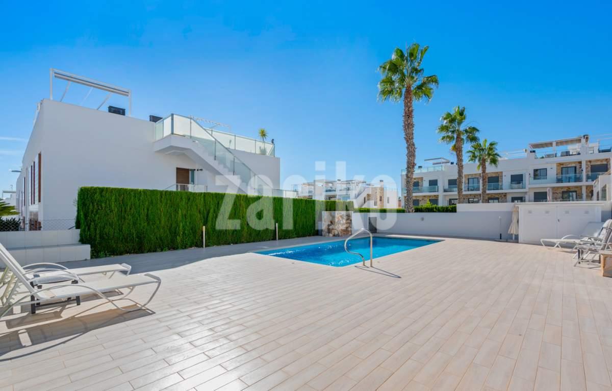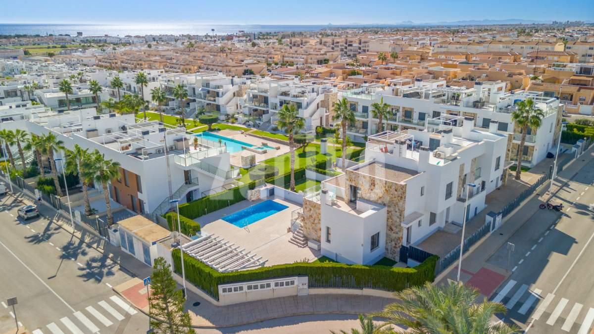 Welcome to this beautiful and modern corner townhouse that combines style, comfort and functionality in the best way. Here you will get a home that stands out - both with its well-thought-out floor plan and its unique plot with lots of privacy.The homeThe house offers 3 good bedrooms and 2 modern bathrooms, where everything is kept in bright and inviting materials. The home appears extremely well-maintained and ready to move in, so you can move straight in and start enjoying life under the sun. Under the house you will find a full basement that has not yet been utilized - perfect as a future fitness room, wine cellar, home theater or just extra storage space.The outdoor area - pure luxuryOutside, a fantastic private outdoor area awaits, designed for relaxation and socializing. The private swimming pool can be heated and offers a built-in swim trainer - ideal for exercise all year round. In addition, there is a seating area with air jets (semi-jacuzzi), where you can relax and enjoy the bubbles after a swim. There is also an outdoor shower so you can cool off if you don&039;t prefer to jump in the pool.The plot has a lovely garden area, and the large pergola forms the frame for a delicious outdoor kitchen with both a sink and a refrigerator - perfect for summer evenings with family and friends. Extra storage cabinets in the garden provide practical storage for cushions and equipment.Comfort and convenienceThe property includes two parking spaces in the underground parking garage and a storage room of approx. 6.6 m². Here you will find everything you need - both for everyday life and holiday life.LocationThe home is located in a quiet and attractive area close to all amenities - supermarkets, cafes, restaurants and shopping. The southeast-facing location ensures sun most of the day, and the area is known for its pleasant climate and relaxed atmosphere.In short:A modern corner townhouse with heated private pool, fantastic outdoor area and endless potential in the basement – perfect for those who dream of comfort, quality and a southern lifestyle with a little extra luxury.