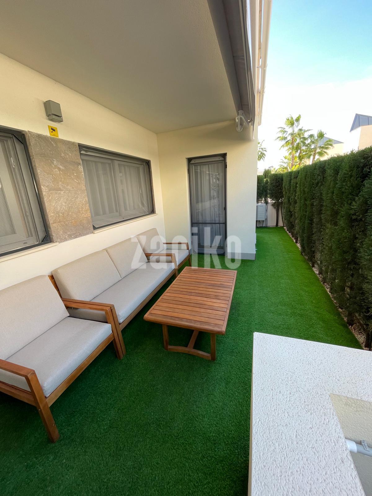 Comfortable bungalow for sale in a closed urbanization by the sea in the city of Torrevieja.The house has two bedrooms, two bathrooms, a spacious living room with a dining area and an open kitchen with large panoramic windows, as well as its own garden of 20 sq. m.On the territory of the urbanization, there are several pools (one heated), a gym, parking, a green area with trees and automatic irrigation.The house comes with fully equipped bathrooms, a furnished kitchen with an extractor hood and an induction hob, built-in wardrobes in all bedrooms, air conditioning, automatic blinds, furniture, appliances, and everything necessary for living.The city of Torrevieja is located on the shores of the Costa Blanca. Here you can find excellent sunny weather and stunning beach areas. The city borders not only the Mediterranean Sea but also two salt lakes: the pink Salinas de Torrevieja and the emerald Salada de la Mata, the water and mineral mud of which are comparable in composition and popularity to the Dead Sea. Hundreds of people come here just to bathe in these lakes. Thanks to these lakes, a unique climate has formed in the south of the Costa Blanca, which the World Health Organization has recognized as one of the healthiest in the world.There are all the necessary services for everyday life nearby: a shopping center, restaurants, bars, shops, recreational areas, school, medical center, pharmacies, banks, bus stops, administrative offices, and parks.This beautiful villa is perfect for those looking for a beautiful, stylish home in a quiet area. The distance to the sea is 200 m.Online purchase is possible, as well as purchasing on credit from a bank at 3-6% annual interest. When buying real estate in Spain, you can apply for residency. Our company assists in obtaining any type of residency permit.