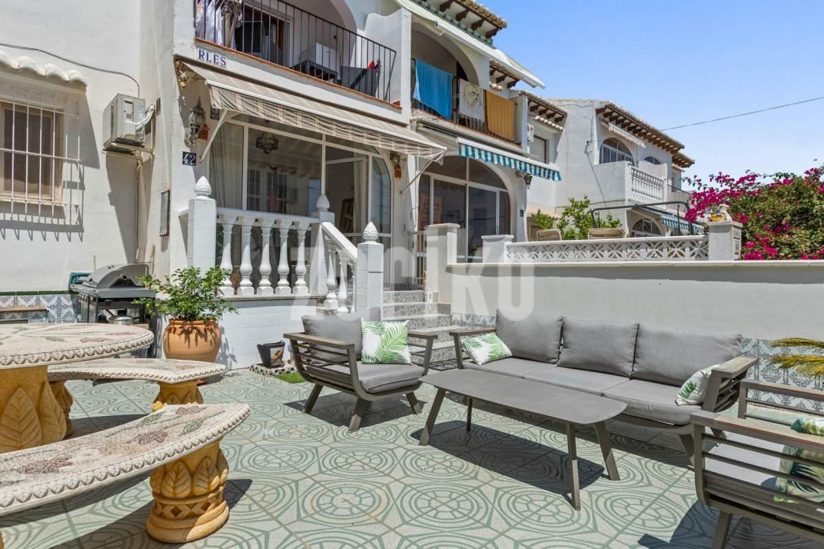 Welcome to this charming bungalow in the popular Lago Jardin II area of Torrevieja. This compact and practical home offers everything needed for comfortable and relaxing living, enhanced by excellent communal facilities and convenient local amenities. Comfortable interiors and private garden The property includes two bedrooms, a bathroom, a functional kitchen, and a cozy living room with access to a glazed terrace. This terrace serves as a comfortable additional living space year-round, leading out to your private, fenced garden area—a perfect spot to unwind and enjoy outdoor moments. An air-conditioning unit ensures pleasant temperatures throughout the year. A beautiful pool area pampers residentsLago Jardin II is particularly known for its cozy and well-maintained community pool area, where you can spend relaxing moments on sunny days. The green areas around the pool provide the perfect setting for peaceful leisure and sunbathing. Convenience and natural surroundings Lago Jardin II boasts a fantastic location: the nearest restaurants and cafés are just about 100 meters away, and the Mercadona supermarket is within 750 meters. The area's lovely green spaces and the nearby pink salt lake offer fantastic opportunities for outdoor recreation and nature experiences. The seaside is approximately 3.5 kilometers away, while the vibrant amenities of central Torrevieja are just 6 kilometers from your doorstep. This bungalow is an ideal choice whether for permanent residence or a relaxing holiday home. Come visit—Lago Jardin II is easy to fall in love with!