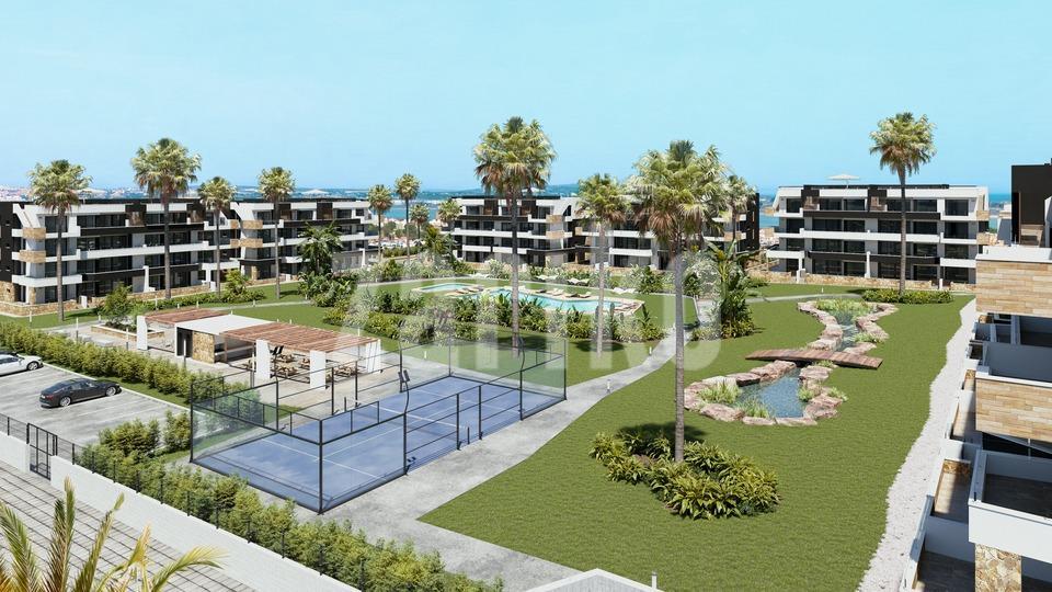 New Residential Development in La Siesta, Torrevieja Modern Apartments with Excellent Amenities This new residential development in La Siesta, Torrevieja offers spacious and contemporary apartments designed for comfort and style. The homes feature 2 bedrooms and 2 bathrooms (one ensuite) with large terraces, distributed across 7 low-rise blocks surrounding an impressive communal area. The gated community provides first-class facilities including adult and children’s swimming pools, landscaped gardens, a barbecue area, children’s playground, padel court, and petanque zone, making it ideal for both relaxation and leisure. Prime Location in the Costa Blanca Located in the growing neighborhood of La Hoya, between the natural salt lagoons of La Mata and Torrevieja, this development offers a perfect balance of tranquility and convenience. Just 3.5 km from the beaches of Torrevieja, residents will enjoy quick access to daily amenities such as supermarkets, restaurants, health centers, cycling routes, and the La Mata Natural Park for hiking. The vibrant city center of Torrevieja, with theaters, cinemas, shopping malls, hospitals, and the Aquopolis water park, is just a short drive away. Distances to Main Points of Interest Torrevieja beaches: 3.5 km La Marquesa Golf in Ciudad Quesada: 7 km Habaneras Shopping Center: 2 km Alicante Airport: 40 km Murcia Corvera Airport: 60 km High-Quality Specifications Each apartment is built with modern finishes and designed for maximum functionality: Fully equipped kitchens with appliances included Motorized shutters Reinforced security entrance door Hot water system powered by aerothermal energy Fully installed ducted air conditioning Underground parking space and storage room included As a special launch offer, the first units sold will include a complete furniture and lighting package, making your new home move-in ready from day one. A Vibrant Mediterranean Lifestyle Torrevieja is one of the most popular destinations on the Costa Blanca, offering more than 300 days of sunshine per year, cultural events, lively promenades, and excellent facilities for water sports. With its mix of traditional Spanish charm and modern amenities, it is an ideal place for permanent living, a holiday retreat, or a smart investment opportunity. Your New Home Awaits in Torrevieja This development combines luxury, convenience, and an unbeatable location by the sea. Contact us today to arrange a visit and secure your dream property in the Costa Blanca.