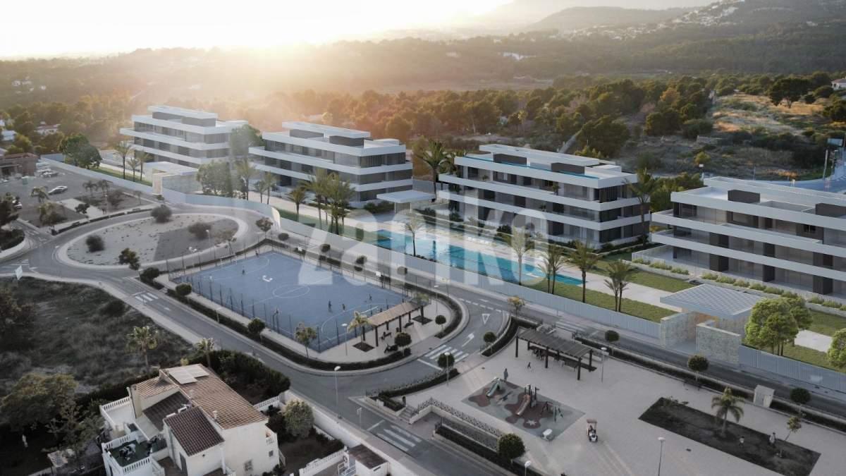 NEW BUILD RESIDENTIAL COMPLEX IN LA NUCIA New Build residential complex of apartments and penthouses with outdoor communal pool, parking, storage room, lift, gym, communal spa with indoor heated pool, sauna, jacuzzi in La Nucia. Modern properties with 2 and 3 bedrooms, all with 2 bathrooms, open plan kitchen with spacious living room, fitted wardrobes, terrace, underground parking space. Penthouses has private solariums. Ground floor apartments with 3 bedrooms has a private jacuzzi! Excellence in its avant-garde architecture, exquisite finishes and high-end services, a dream urbanization for those looking for the highest level of comfort and distinction. Interiors that combine elegant design and modern sophistication, create spaces that turn every day into an exceptional experience of comfort and well-being. German designer kitchen, Burger or similar, with Silestone worktop, fully equipped. Siemens appliances or similar. Induction hob, extractor fan, oven and fridge and dishwasher integrated in the units. Reinforced access door to the property with security lock finished with lacquered panelling to match the interior carpentry. Option to fit lock with remote control from smartphone or tablet. Modular wardrobes with hinged or sliding doors lacquered to match the rest of the carpentry, including boot, drawers and hanging rail. The property will be prepared to be able to contract high speed internet. There will be low consumption electric underfloor heating in the bathrooms. The video intercom will be electronic with colour image and will have integrated remote control from telephone or tablet. Samsung air conditioning. Each room will have its own interior machine and independent control. The air conditioning will have remote control. It can be controlled from a telephone or tablet. The complete installation of the Air Conditioning System will be carried out, equipped with a heat pump to provide both cooling and heating. Ducts made of fibreglass will also be used. The indoor units will be located in the false ceiling in the bathrooms and corridor area, while the outdoor unit will be installed in the area assigned in the project. Ventilation. Installation of interior air renewal in dwellings with extraction outlets in bathrooms and kitchen and clock for programming the timetable. Swimming pool for community use with saline chlorination and automatic control of PH and chlorine. In the basement there will be a gymnasium, indoor heated pool, jacuzzi, sauna, steam bath, chromotherapy and changing rooms with bathrooms. Large terrace areas and gardens with indigenous plants for multiple uses in the communal area. The perimeter of the plot will be planted with plants that will create a private atmosphere in the enclosure as they grow. There will be a video surveillance system for the communal areas. Located in a privileged location, between Nucia and Altea this residencial enjoys an exceptional environment and excellent services within the urbanization.