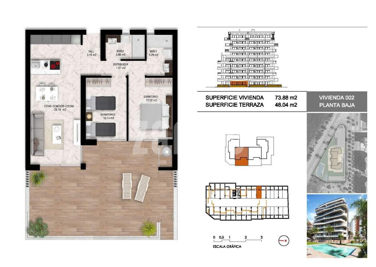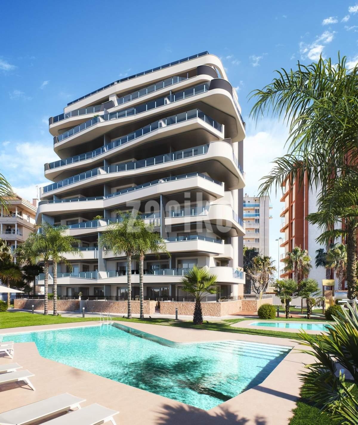 NEW BUILD RESIDENTIAL IN GUARDAMAR DEL SEGURA New Build Residential located in front of the Segura River and close to the marina and beach of Guardamar. Modern style building of 31 apartments with 2 bedrooms and penthouses with 2 and 3 bedrooms, all with 2 bathrooms, open plan kitchen with living room, fitted wardrobes, spacious terraces from 20m², underground parking and closed storage room. The building will consist of 9 floors, the highest of which will be penthouses with main terrace and private solarium. Guardamar del Segura is a town located on the Costa Blanca South. With its 11 kilometres of natural beach and its large pine forest. Guardamar is a quiet town to live in, it has all the services throughout the year such as restaurants, bars, shops, banks, places for leisure, etc. Every Wednesday, in the central streets of the town, a market is organised where many people go to buy products such as food, clothing, furniture, animals, etc. It is a great claim and inhabitants of the surrounding town come to Guardamar every Wednesday to visit the market. Guardamar del Segura has a large port with activities throughout the year, it has a large sports centre with paddle tennis, tennis, soccer and a large heated swimming pool that works all year round. It also has a library where there is free wifi and computers. Guardamar del Segura is only 20km away from the Alicante - Elche (El Altet) airport, where there are many flights every day with connections to the main European cities, due to the demand for tourists on the Costa Blanca.