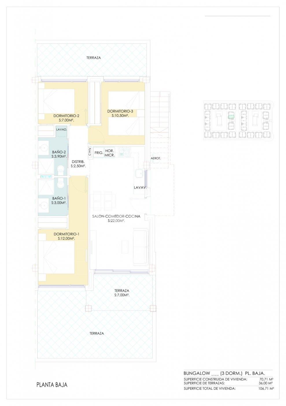 NEW BUILD RESIDENTIAL OF BUNGALOW APARTMENTS IN LOS BALCONES, TORREVIEJA New Build residential complex with magnificent pink salt lake views in Los Balcones. Complex consist of 104 bungalow apartments with 2 and 3 bedrooms, top floor bungalow has private solariums with panoramic views to the salt lake and ground floors bungalows have big terraces overlooking the green area. These bungalows share beautiful green areas and 2 large swimming pools. Optional underground parking and storage spaces are available. This residential offers modern design, selected materials, apartments finished to very highest specification using only top quality materials. The Residential will be built up to a hillside, in this way the view and also the air is clear and unique quality. Los Balcones located just outside Torrevieja with all accessible services, just 5 minutes from Playa de Los Náufragos, supermarkets, the school and the La Zenia Boulevard Shopping Centre, and a minute from Torrevieja University Hospital. Furthermore you will find 4 golf courses within a short drive, including the award winning Las Colinas Golf & Country Club. Complex located 40 minutes from Alicante airport and 1 hour Murcia - Corvera airport.
