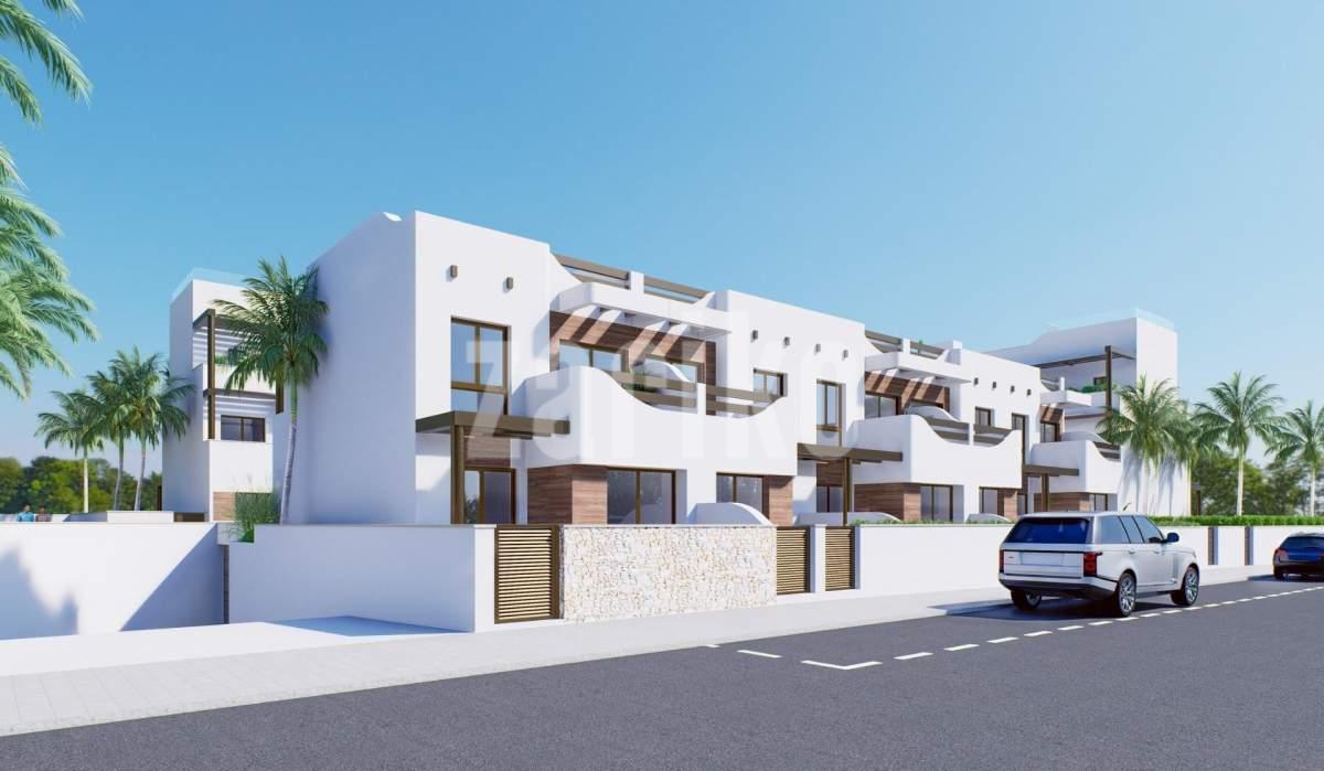 Modern Living Steps from Las Higuericas Beach in Torre de la Horadada Prime Location Near the Mediterranean Coast Experience the best of coastal living with this stunning new development located just 150 meters from Las Higuericas Beach in Torre de la Horadada. Known for its golden sands and crystal-clear waters, this beachside town offers a perfect blend of relaxation and modern amenities. Whether you’re seeking a tranquil retreat or a vibrant lifestyle, Torre de la Horadada provides the ideal setting for your dream home. Thoughtfully Designed Residences Choose from modern ground-floor bungalows with private gardens or top-floor bungalows featuring spacious solariums. Each 2-bedroom property is designed with contemporary aesthetics and functionality in mind, offering: Private parking spaces. Large terraces for outdoor enjoyment. Premium features that enhance comfort and convenience. Exceptional Community Amenities The development boasts an array of communal features designed to elevate your living experience: Landscaped green spaces for relaxation. A refreshing communal swimming pool. A paddle court for sports enthusiasts. Convenient lift access from the underground parking. Premium Features for Modern Comfort Every home is equipped with high-quality finishes, including: Security entrance doors for peace of mind. Windows with thermal break for enhanced sound insulation. Fitted wardrobes with LED lighting. Pre-installed ducted A/C for year-round comfort. Elegant bathroom fixtures, mirrors, and glass shower screens. Electric blinds and exterior lighting for added convenience. Aerothermal water heaters for energy efficiency. Convenient Access to Local Attractions This development’s prime location ensures easy access to a variety of attractions and amenities: Las Higuericas Beach: Just 150 meters away for effortless beach days. Murcia Airport: 30 km (approximately 30 minutes by car). Lo Romero Golf Course: 10 km, ideal for golf enthusiasts. Dos Mares Shopping Center: 11 km, offering shopping, dining, and entertainment. Port of San Pedro del Pinatar: 8 km, perfect for enjoying waterfront activities. Your Dream Home Awaits in Torre de la Horadada Embrace the unique lifestyle of Torre de la Horadada, where modern design meets Mediterranean charm. Don’t miss your chance to own a home in this exclusive community. Contact us today to learn more or schedule a visit!