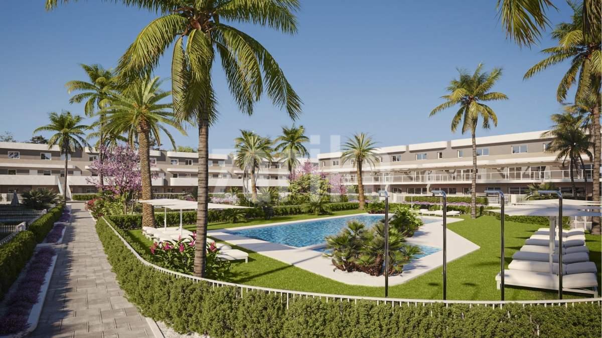 NEW BUILD RESIDENTIAL COMPLEX IN ALENDA GOLF, ALICANTE New Build private development of beautiful 2 and 3 bedrooms apartments with large terraces overlooking the nice communal area, combines the tranquil area of the Alenda Golf Course with a more lively beachfront nightlife easily accessible in just 15 minutes. All apartments include fully fitted kitchens equipped with a vitroceramic hob, extractor fan and an oven, hot water by aerothermal heating, smooth white paint on walls and ceiling, PVC doors and windows with double glazing. They also have air conditioning/heating units, and complete fitted wardrobes in all the bedrooms. All properties has a private parking, communal swimming pool for adults and children, and multipurpose room. Ground floor have a private garden, while the duplex apartments have large terraces. Perfect for all day dining, the terraces are either surrounded by the spectacular Sierra de las Aguilas Mountains, or the stunning view over the golf course. Includes: Underground parking, Exterior Parking, Storeroom, Communal swimming pool, Lift, Communal garden, Private garden, Air conditioning, Heating, Aerothermy, Solar thermal panels, LED spotlights, Double glazed windows, Pre-installation for electric vehicle. Energy certification: A. The historical village of Monforte del Cid is also nearby offering a selection of local amenities. Within the Alenda Golf development residents will have access to a small supermarket, restaurant and bar, clubhouse, fitness centre and paddle tennis courts. Due to its prime location, it is just 15 minutes from the golden beaches of Alicante, Alicante Airport and the town of Elche. Thanks to the lovely year-round climate and amazing facilities, Costa Blanca is a perfect area to not only play golf but to also invest in a golf property. There are over 15 golf courses nearby, such as the El Patio Golf Club which is just 3 kilometres from Alicante and designed by Severiano Ballesteros, and the Font del Llop Golf Club, near Alenda. The Alenda Golf Club, is an 18-hole course with a separate pitch & putt.