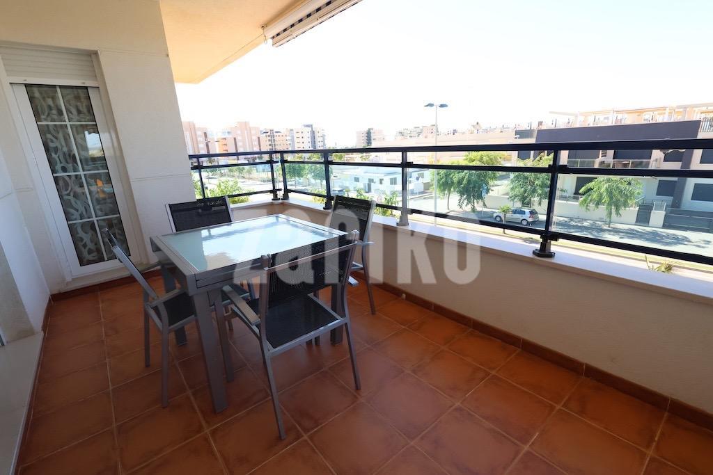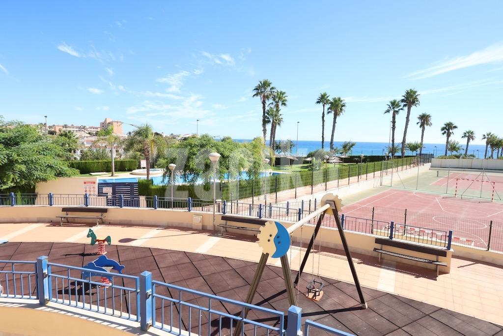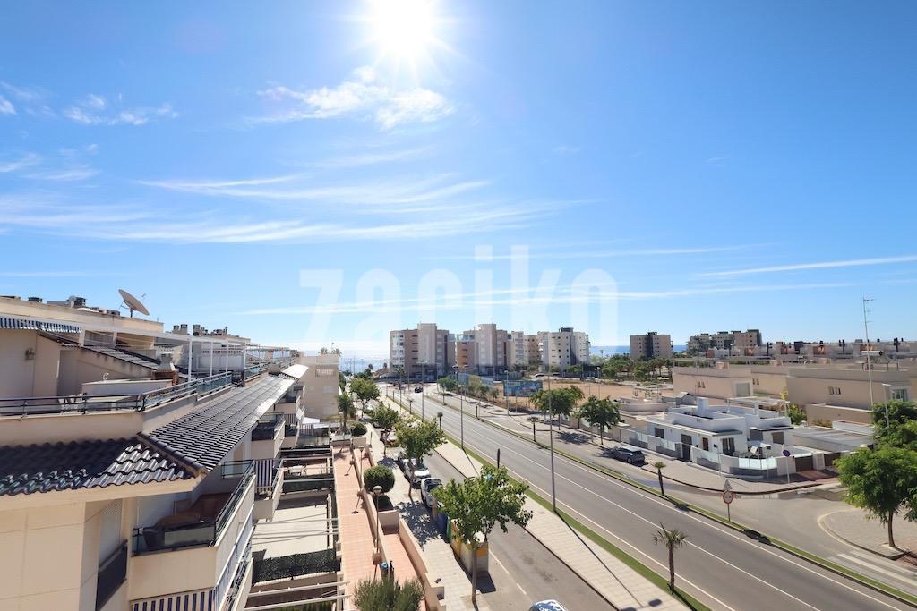 Mil Palmeras – Penthouse with Sea Views Just 150 Meters from the Beach. . Located in the exclusive Río Mar XI residential complex, this bright south-facing penthouse enjoys a privileged location just 150 meters from the sea. The property offers 98 m² distributed across 2 bedrooms, a full bathroom, an open-plan kitchen, and a spacious living-dining area with access to a terrace boasting stunning sea views.. . It includes a spectacular private solarium of 59 m², fully equipped with a barbecue area, shower, storage room, and awnings — perfect for enjoying the Mediterranean climate all year round.. . The property is sold fully furnished with air conditioning, and includes a large parking space and a storage room in the price.. . The residential complex features beautifully landscaped gardens, a children's play area, tennis court, and a stunning communal swimming pool with direct access to the beach.. . An excellent opportunity as a permanent residence, holiday home, or investment in one of the most sought-after areas of the Costa Blanca.