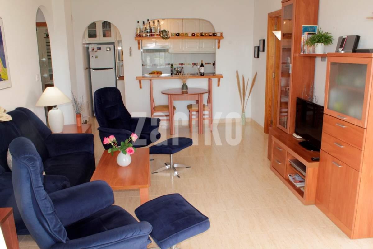 This beautifully presented, fully furnished south east top-floor apartment is perfectly situated in the highly sought-after Urbanisation Zeniamar in Playa Flamenca, offering breathtaking sea views and a superb Mediterranean lifestyle.The property features 2 spacious bedrooms, 2 bathroom both with shower, and a bright, open-plan living area, kitchen with a seperate utiliy area and access to a cosy glazed in terrace with sea view. From the main floor, an internal staircase leads to an upper level currently arranged as a home office or potential third bedroom, alongside a second bathroom and access to a large private rooftop solarium with a shower – the ideal place to enjoy the sunshine all day and take in the spectacular panoramic sea views. Additional features include:Fully furnished and move-in ready, fitted with Air conditioning, Underground parking and storage room (available at an additional cost), Beautifully maintained communal gardens, Large swimming pool, gym, and sauna within the community.Located in a prime central position, Zeniamar is one of the most desirable residential complexes on the Orihuela Costa, built by the renowned developer TM Group, known for its exceptional design and build quality. The complex is within walking distance to the Citrus Shopping Centre, with international supermarkets, cafés (including the Scandinavian supermarket), and just a 10-minute drive to La Zenia Boulevard, the largest shopping mall in Alicante province with over 150 shops, restaurants, and entertainment venues.The golden sandy beaches of Playa Flamenca are only 2 km away, offering crystal-clear waters and a range of coastal activities. The area is conveniently located 40 minutes from Alicante Airport, making it ideal as both a holiday home and a permanent residence.Whether you’re looking to relax in the sun, enjoy local cuisine, or explore the surrounding golf courses and coastline, this apartment provides the perfect combination of comfort, convenience, and stunning sea views. A true gem on the Orihuela Costa — a property not to be missed!
