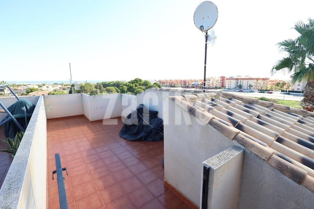 Lomas de Cabo Roig – Corner Penthouse with South Orientation, Very Bright.. This property offers 83 m² of built area, distributed into 2 bedrooms, 1 bathroom, an independent kitchen with utility room, a spacious living-dining area, and a large terrace.. It also features a private solarium with storage room and sea views.. The property is sold furnished and is part of a residential complex with 2 communal swimming pools.. An ideal home to enjoy the sun and tranquility all year round..