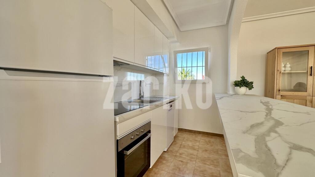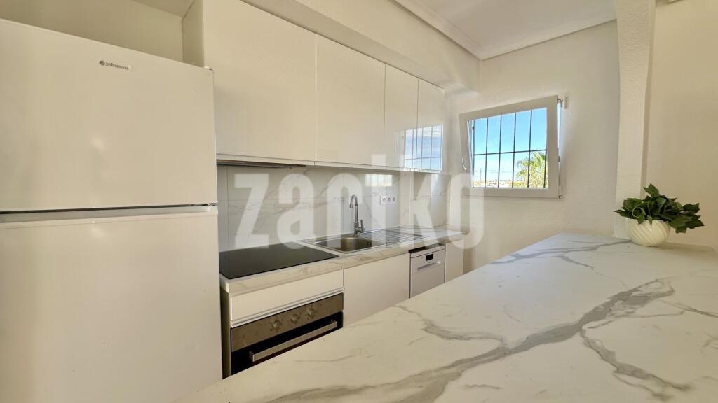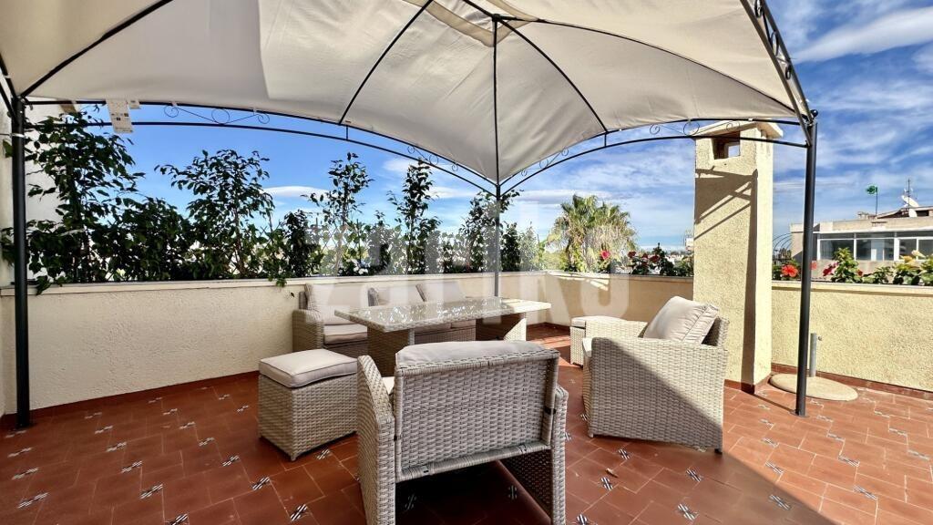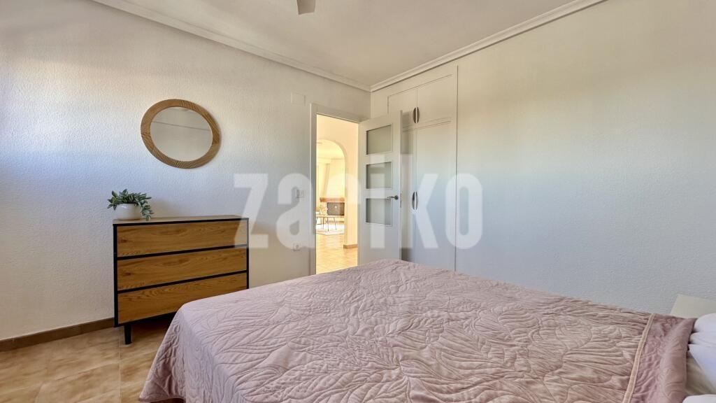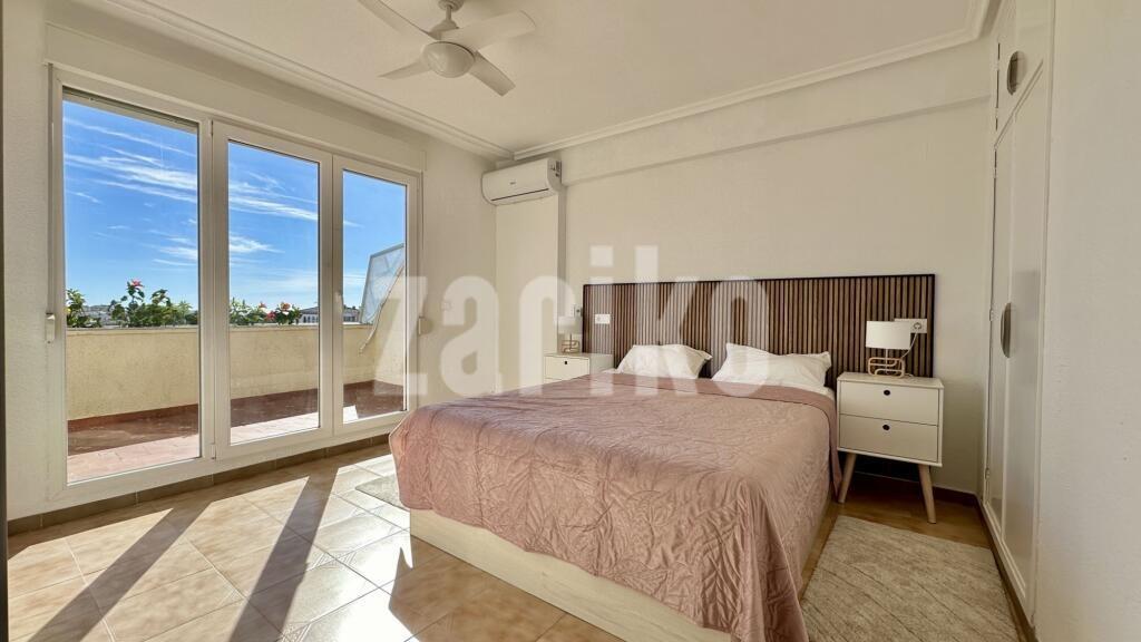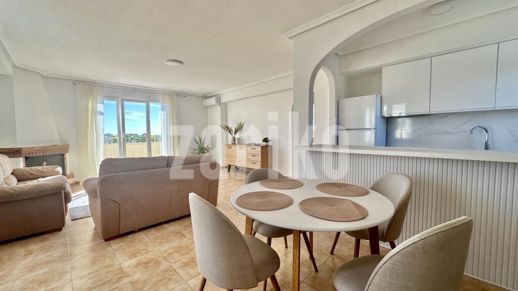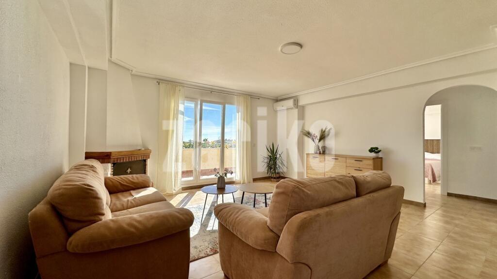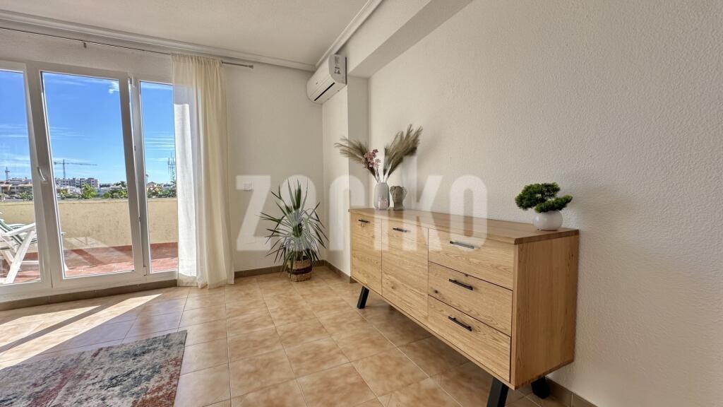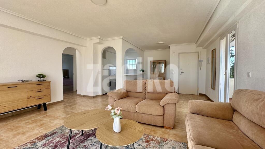 Property located in an excellent location, offering very close access to all kinds of services such as shops, supermarkets, restaurants, pharmacies, bars and many more. In addition, the property has a large terrace with sea views, located just steps from the apartment. Undoubtedly, the purchase of this property is an ideal option for those who want to live near the beach and the sea without giving up access to the center. Interior and equipment of the property The property, with an area of 85 m², is located on the third floor of a building with an elevator and has 2 bedrooms (one of them with access to the terrace), 2 full bathrooms, an open kitchen equipped with appliances and a spacious living room with dining area and access to a large terrace. In addition, it has air conditioning. The property for sale consists of: •2 bedrooms, •2 bathrooms, •living room, •kitchen, •terraces. Description of the property Property area 85 m² Total area of the terraces 50 m² Very close to all services Lots of natural light Air conditioning Elevator in the building Near the sea Sea views Furnished Property environment Orihuela Costa is one of the most picturesque coastal areas of the Costa Blanca, located in the southern part of the province of Alicante, in the Valencian Community. It is a region in full development that attracts both tourists and those looking for a property for vacation or permanent residence.