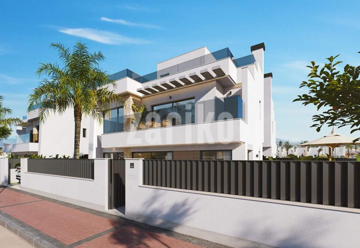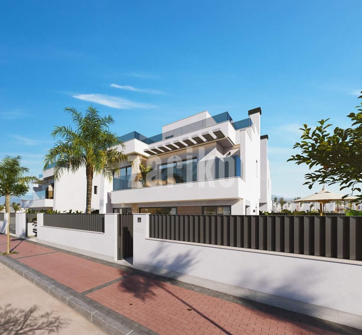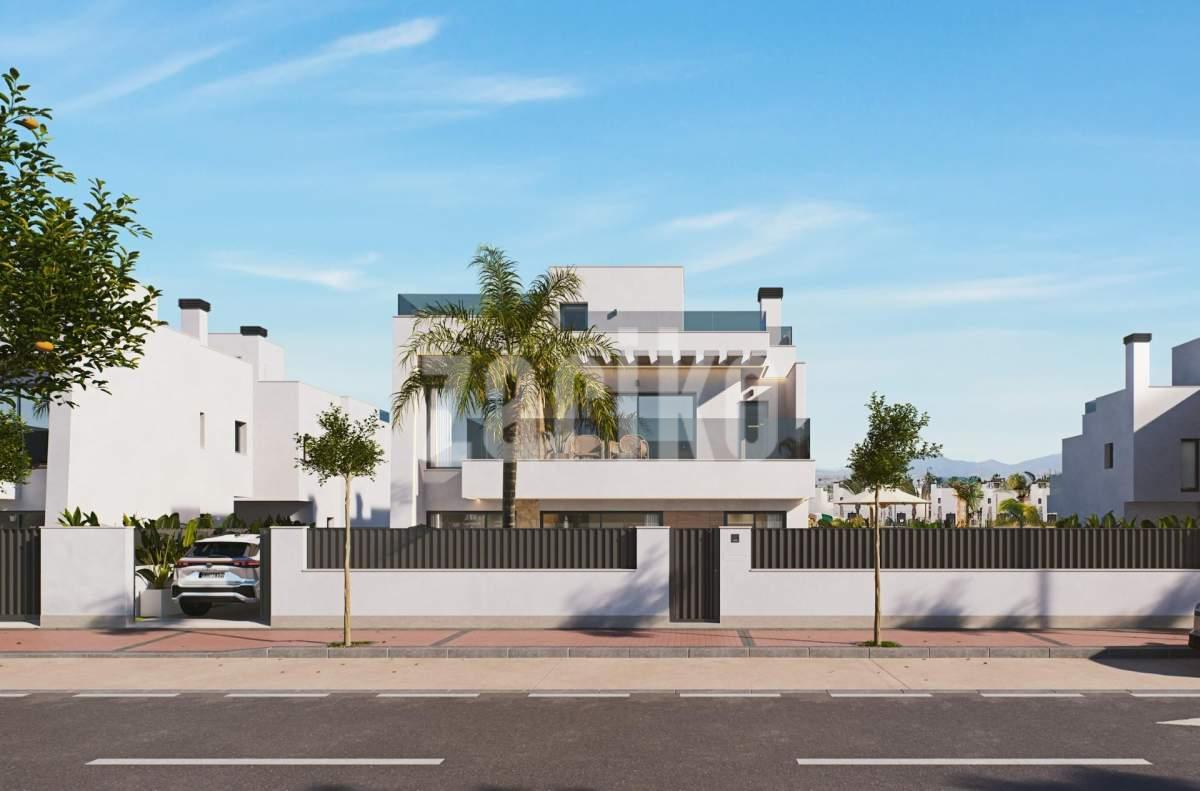 Modern Semi-Detached Villas at Santa Rosalía Lake and Life Resort - A New Standard of Mediterranean Luxury Contemporary Design Inspired by the Mediterranean Discover these exclusive new semi-detached villas located in the prestigious Santa Rosalía Lake and Life Resort, a unique residential destination on the Costa Cálida. Inspired by Mediterranean architecture, these villas combine clean lines, natural light, and modern comfort to create a harmonious and elegant living environment. Each villa is designed to provide a perfect balance between luxury and relaxation, making it ideal as a permanent residence, holiday home, or investment opportunity. Spacious Layout and High-End Finishes Each villa offers 220 m² of living space distributed across a basement, two main floors, and a rooftop solarium, set on generous 295 m² plots. The homes feature 4 bedrooms and 4 bathrooms (3 en suite), providing ample space for family and guests. The private pool with jacuzzi area, large terraces, and rooftop solarium with summer kitchen and toilet invite you to enjoy the region’s exceptional climate all year round. Premium specifications include: Fully furnished kitchen with Bosch appliances Bathrooms with furniture, mirrors, shower screens, and towel heaters Armoured entrance door and motorized access gate for vehicles LED spotlights throughout the interior and exterior Ducted air conditioning (installed on both floors) Private pool with jacuzzi area 2 photovoltaic solar panels for energy efficiency Summer kitchen in the garden Underground level with English patio for natural light and ventilation Resort-Style Living at Santa Rosalía Santa Rosalía Lake and Life Resort is a private, gated community with 24-hour security, designed around an impressive 126,000 m² of green areas. Residents enjoy walking and cycling paths, sports facilities, paddle and tennis courts, mini-golf, gardens, dog parks, and leisure zones. The clubhouse and the resort’s centerpiece-a stunning 17,000 m² crystal-clear lagoon surrounded by white sandy beaches and palm trees-offer a true Caribbean-inspired lifestyle. The lagoon even features two islands, one with its own bar, and several beach chiringuitos for relaxed dining. Prime Location on the Costa Cálida The development enjoys a central location within the resort, close to the lagoon and beach club. It’s less than 4 km from Los Alcázares Beach, 15 minutes from Cartagena, and only 22 km from Murcia International Airport. Golf enthusiasts will find several top-rated courses within a short drive, while local marinas, restaurants, and shopping areas complete the vibrant lifestyle offering. Your Exclusive Mediterranean Retreat Awaits Experience the perfect combination of luxury, comfort, and wellbeing in the heart of the Costa Cálida. Contact us today to schedule a visit and discover your dream villa at Santa Rosalía Lake and Life Resort.