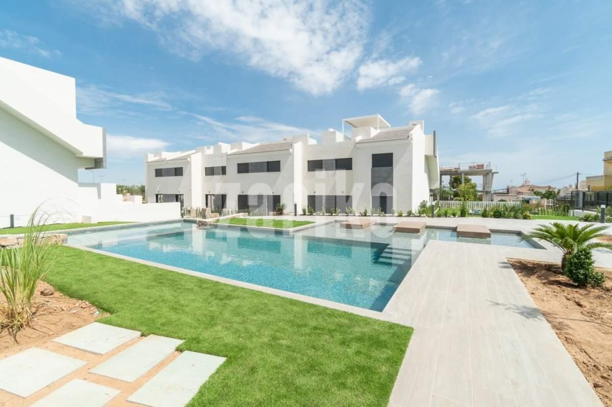 New residential complex at Los Balcones(Torrevieja) This is an exclusive residential complex comprising of 30 apartments located in Los Balcones de Torrevieja, one of the best areas of touristic interest on the Costa Blanca. Where you can enjoy fabulous views thanks to its location as this residential is surrounded by the unbeatable and privileged natural setting of the Laguna Rosa de Torrevieja as well as its proximity to the renowned beaches of Torrevieja and Orihuela Costa. At this residential you will find homes with a modern style and top-quality finishings, homes with 2 to 3 bedrooms, as well as private outside areas with a terrace, solarium and/or garden, where you can enjoy the magnificent views. The complex also has large communal areas equipped with a large communal swimming pool, green zones and parking.