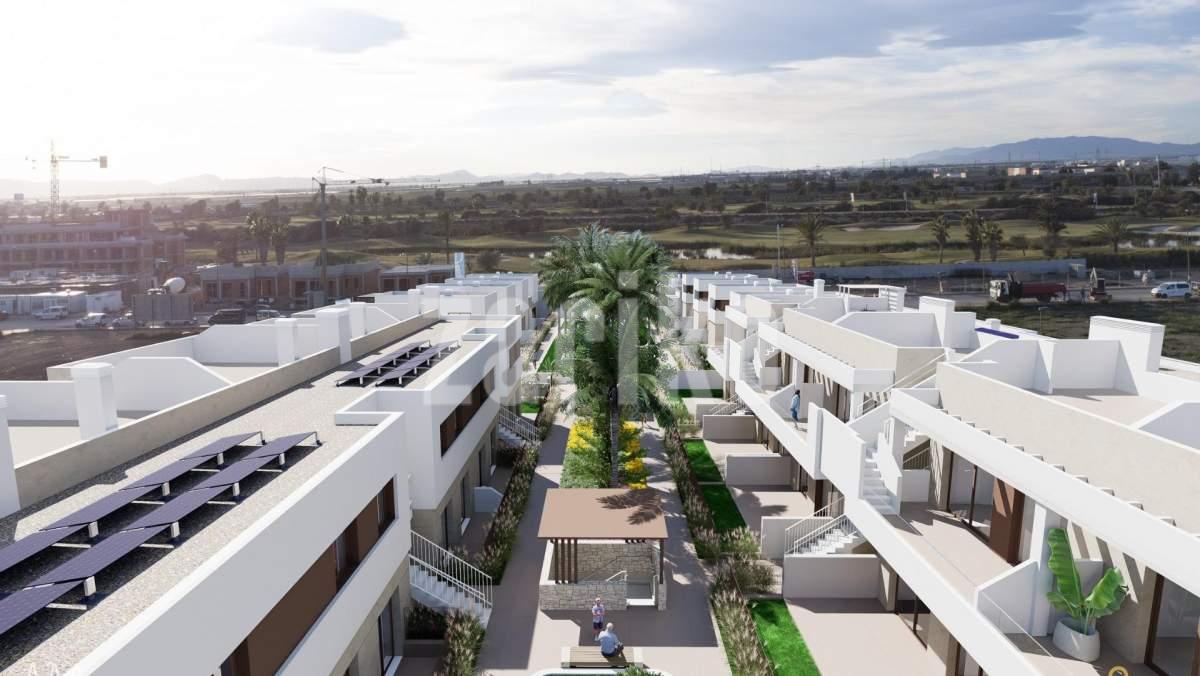 Exclusive Villas and Bungalows on the Costa Cálida - Design, Comfort and Privileged Location A Project that Fuses Privacy and Community Living Discover a new residential concept on the Costa Cálida, designed for those seeking the perfect combination of privacy, comfort and social life. This exclusive complex offers detached villas and bungalows, with access to spacious communal areas and a communal swimming pool, providing the best of both worlds: the tranquillity of a private home and the comfort of shared spaces to enjoy with friends, family and neighbours. All homes include a parking space and storage room in the basement, guaranteeing security and convenience for residents. Modern Design and Personalisation Options This development offers a wide range of homes to suit different needs and lifestyles: Ground floor bungalows with private gardens up to 122 m². Top floor bungalows with large terraces and private solarium. One or two-storey detached villas, with plots ranging from 201 to 356 m² and different layout and finishing options. Each home is designed to maximise natural light, creating spacious and welcoming spaces. The master suite has been carefully conceived to guarantee privacy and comfort, completely separating the sleeping area from the bathroom, avoiding interruptions of light or noise during the night. Quality and Sustainability in Every Detail These homes have been built with high quality materials and equipped with sustainable technologies, such as solar panels and aerothermics, to improve energy efficiency. Outstanding features: Motorised blinds in bedrooms. Armoured front door for greater security. Pre-installation of ducted air conditioning. Modern bathrooms with tempered glass partitions and suspended furniture with LED mirror. Strategic Location in Los Alcázares Situated just a few metres from the prestigious Serena Golf course and 1 km from the beaches of the Mar Menor, this complex enjoys a privileged location in Los Alcázares, one of the most promising areas of the Costa Cálida. In addition, its easy access to the AP-7 motorway allows quick connection to other destinations in the region and facilitates access to essential services such as supermarkets, sports centres, schools and pharmacies. Distances to Points of Interest La Serena Golf - 1 km (2 minutes by car). Mar Menor Beach - 1 km (2 minutes by car or 10 minutes walk). Murcia Airport - 35 km (30 minutes by car). Cartagena Port - 22 km (20 minutes by car). Local shopping centre - 3 km (5 minutes by car). A Mediterranean Lifestyle with High Profitability This project not only represents an excellent option to enjoy the Mediterranean lifestyle, but it is also a safe investment in a growing area. Don't miss out on this unique opportunity. Contact us today for more information and to reserve your ideal home on the Costa Cálida.