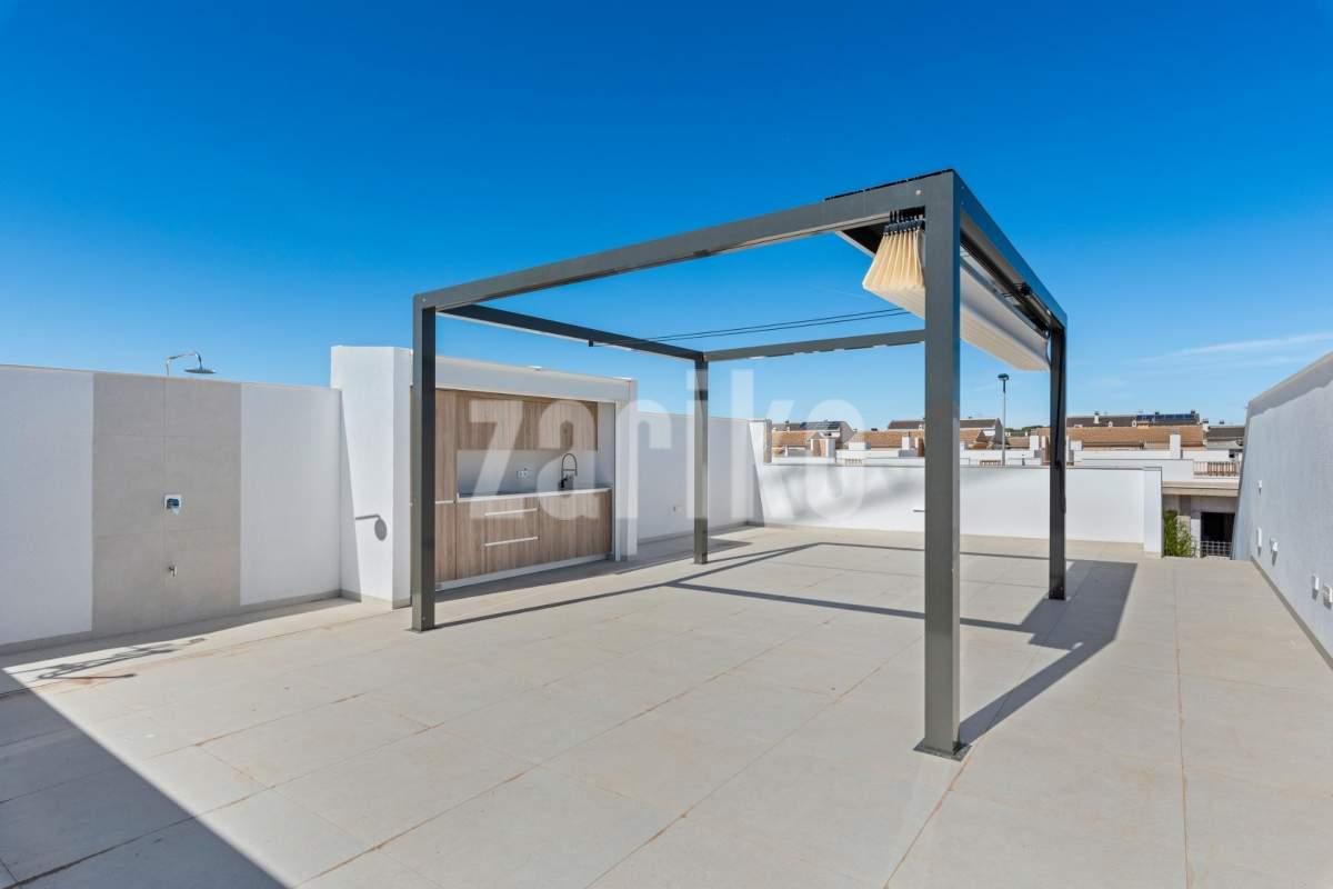 Exclusive New Build Residences in Pilar de la Horadada, Costa Blanca Modern Mediterranean Living Near the Beach Discover this exclusive new development of just 8 contemporary homes in Pilar de la Horadada, located within walking distance to the town center and only 3.5 km from the beautiful beaches of Torre de la Horadada and Mil Palmeras. This charming coastal town, situated in the southernmost part of the Costa Blanca, is known for its relaxed atmosphere, traditional Spanish charm, and excellent amenities. Residents enjoy a wide range of services including supermarkets, restaurants, shops, and leisure areas, all just a few minutes away. Elegant Homes Designed for Comfort and Style The development offers a selection of ground-floor apartments with front terraces and private gardens, or top-floor apartments featuring spacious terraces and private solariums. Each home includes 3 bedrooms and 2 bathrooms, one of them ensuite, designed with modern lines and high-quality finishes to ensure maximum comfort. The residential complex features a communal swimming pool surrounded by landscaped gardens, creating an inviting and peaceful environment for relaxation and leisure. Every property also includes a private parking space and a storage room. High-Quality Finishes and Premium Features These new build homes have been constructed with top-quality materials and attention to detail. Key specifications include: Aluminum exterior carpentry in anthracite grey with thermal break (CORTIZO brand) Quadruple glazing with solar protection Electric aluminum shutters in bedrooms Suspended toilets and walk-in showers with integrated flooring Bathroom furniture with LED backlit mirrors and electric towel rails Fully fitted kitchen equipped with Miele appliances LED interior and exterior lighting throughout the home Complete air conditioning installation via ducts (Fujitsu system) Perfect Location on the Costa Blanca Pilar de la Horadada is ideally situated for both permanent living and holidays. The town combines the best of traditional Spanish life with modern infrastructure and proximity to the sea. Main distances: Beaches of Torre de la Horadada and Mil Palmeras: 3.5 km Lo Romero Golf Course: 6 km Murcia-Corvera Airport: 40 km Alicante Airport: 55 km Marina of San Pedro del Pinatar: 10 km Your New Home in the Sun Awaits Enjoy the perfect combination of design, comfort, and Mediterranean lifestyle in these new build homes in Pilar de la Horadada. Whether you are looking for a holiday retreat or a year-round residence, this exclusive project offers the ideal balance between quality, location, and modern living. Contact us today for more information or to arrange a visit.