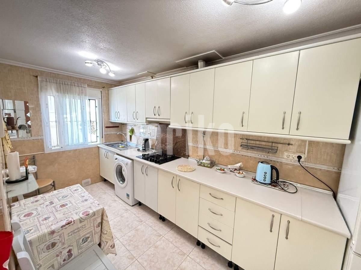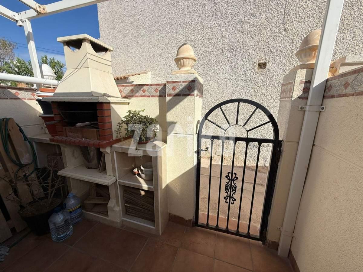 Wonderful 2-bedroom townhouse with terrace, swimming pool and garden in Torrevieja In the heart of a quiet, private residential area lies this charming, recently renovated townhouse, which combines modern comfort with the charm of cosy details. Upon entering, you will discover a bright living room dominated by a fireplace that invites you to enjoy warm winter evenings. From here, the home opens onto two terraces, perfect for relaxing outdoors. The separate, fully equipped kitchen offers a functional and practical space for everyday use. The property has two bedrooms, each with air conditioning, ensuring rest and coolness at any time of year. It also has two full bathrooms, designed for the comfort of all members of the family. The charm of this townhouse is enhanced by its two private patios, ideal for sharing unique moments around a barbecue. The residential complex in which it is located could not be more complete: a large communal swimming pool surrounded by landscaped gardens. LOCATION: Torrevieja is in the province of Alicante (Costa Blanca). It is famous for its Mediterranean climate and its coast. We cannot forget its promenades where we can find some restaurants along the fine sandy beaches. It also has many excellent beaches such as Playa de los Náufragos (2 km away), Playa de los Locos (2 km away) and Playa de la Mata (4 km away). Therefore, it is considered a remarkable tourist town where the environment takes an important place as an important tourist attraction. In addition, we can find many shopping centres (Habaneras, La Zenia Boulevard), golf courses, sport centres, hospitals (such as Hospital Universitario de Torrevieja) and airports such as Alicante Airport (35 km away) and Region of Murcia International Airport (43 km away). DISTANCE TO THE SEA: 800m COMUNITY: 350 €. IBI: 198 €. Should you have any question do not hesitate to contact us!