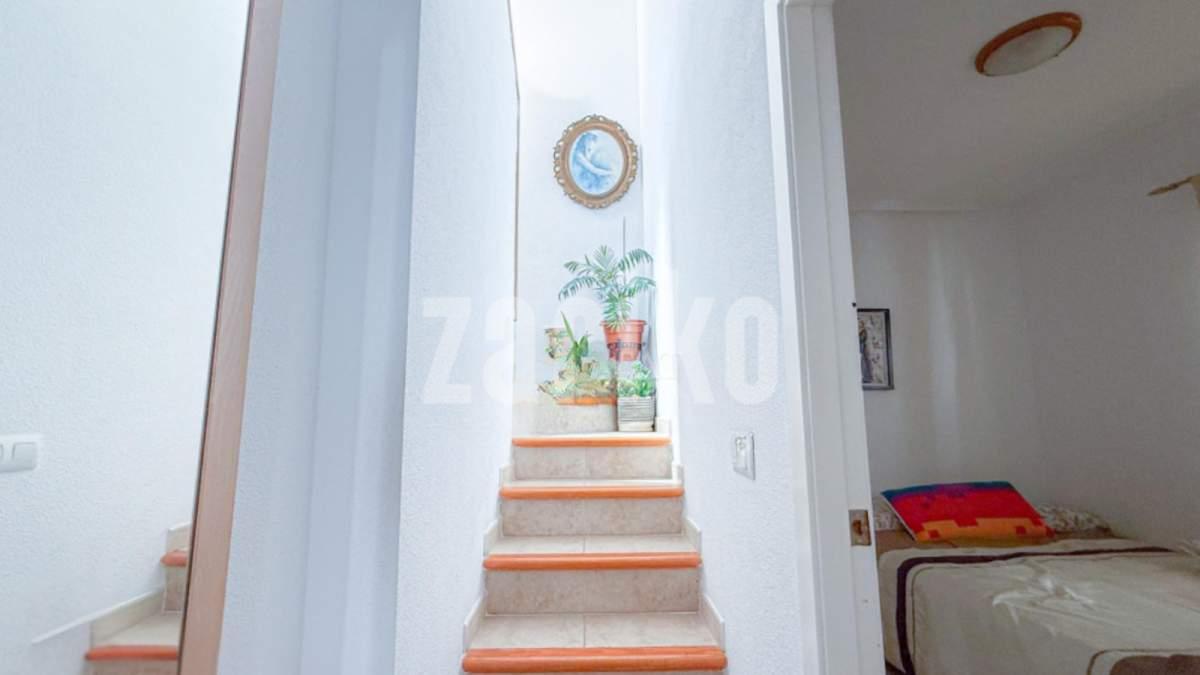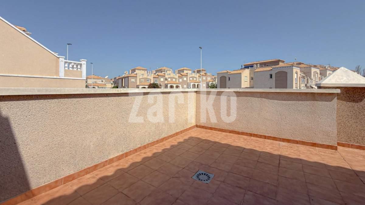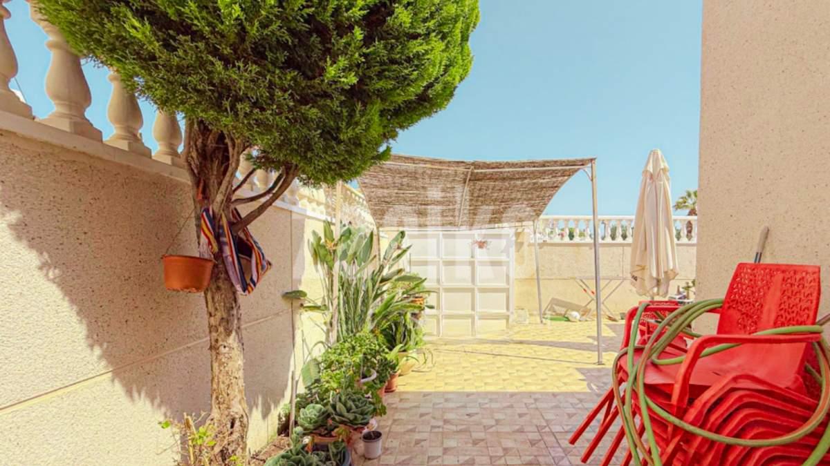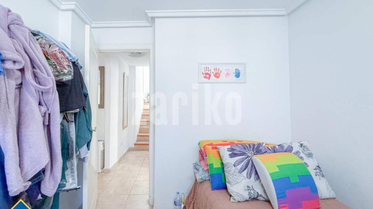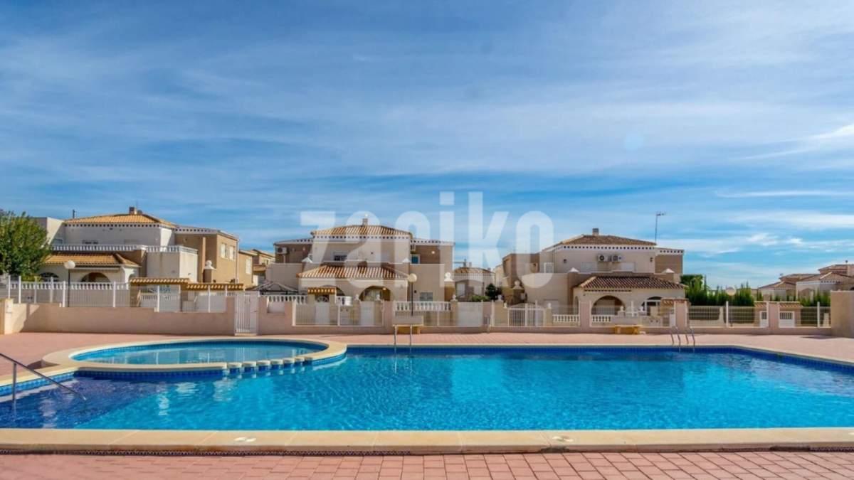 Townhouse in Aguas Nuevas, TorreviejaBeautiful semi-detached house with 101 m² built (80 m² usable), located just 650 meters from the beach. The property is distributed over two floors and offers 3 double bedrooms, 2 bathrooms, a fully equipped kitchen, and a bright living area.The home features oak interior carpentry, tiled floors, aluminum/climalit exterior windows, and northeast orientation. It is in very good condition and ready to move into.Extras include: air conditioning, built-in wardrobes, gallery, storage room, glazed terrace, private garden, community pool, solarium, high ceilings, and a parking space included in the price.Located in a well-connected residential area with bus services, medical centers, schools, supermarkets, parks, children’s play areas, and just steps away from the sea.